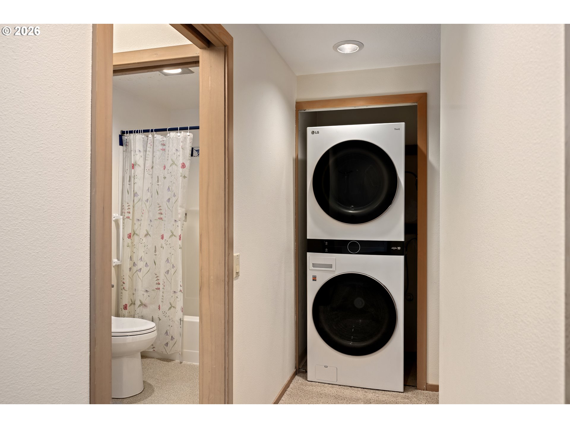 A HIDDEN GEM! Located in a private forested area, this garden level condo is a perfect place for your coastal get-away or full-time home! Immaculately maintained and updated, new Washer/Dryer. Large master bedroom and guest room. Light and bright living room with electric fireplace, kitchen and dining room areas are all open with large windows. Enjoy morning coffee or afternoon sunshine from your private deck. This location is private and quiet, yet near to restaurants, shopping, the casino and miles of sandy beaches! Nearby nature trail to the beach or hiking the Knoll or God's Thumb. Can not be a vacation rental, but a monthly rental maybe possible.