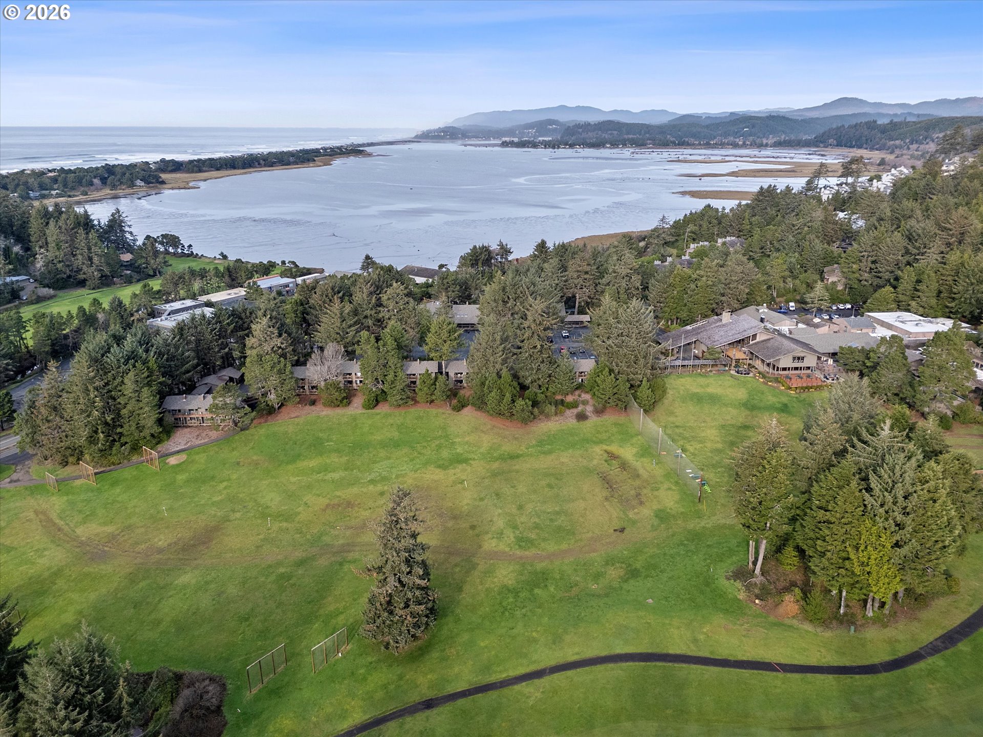 Private Salishan Golf Course residential home with Main-Level Living. Nestled among lush mature trees and manicured fairways, this home offers a serene setting with miles of green space surrounding you. The main level features a spacious primary suite with an enclosed patio, full bath, and wall-to-wall mirrored storage. Enjoy effortless living with the kitchen, dining area, living room with wet bar, laundry, and multiple patios—all on the entry level. The open floor plan is anchored by a cozy gas fireplace, perfect for relaxing or entertaining. Upstairs offers a secondary bedroom suite plus an additional loft space ideal for a den, office, or extra sleeping area. Thoughtfully designed, efficient, and practical—this home is a peaceful coastal golf-course escape