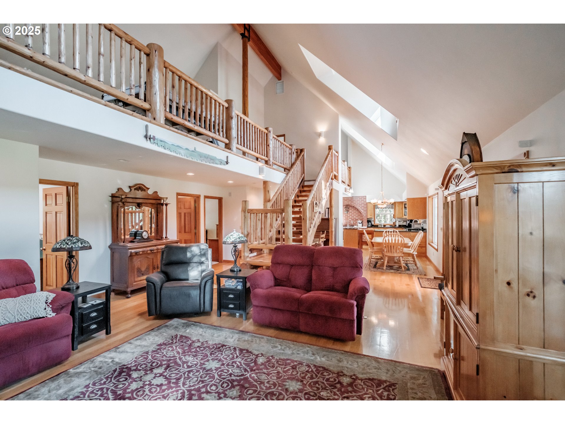 (503) 893-8874Nestled on 63 acres with breathtaking mountain views, this 3,832 sq. ft. custom-built home offers a true retreat into nature w/ a Pond. The property features 58 acres of timber & 5 acres pasture, perfect for agriculture or recreation. Inside, you'll find stunning custom woodwork throughout, vaulted ceilings, multiple loft areas, den space & beautiful wood floors that add warmth and charm. Relax on the wrap-around covered porch or entertain in the covered outdoor kitchen area or around the firepit.