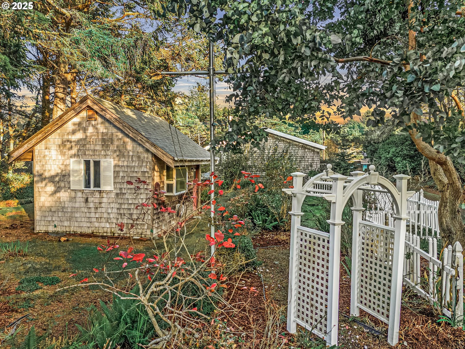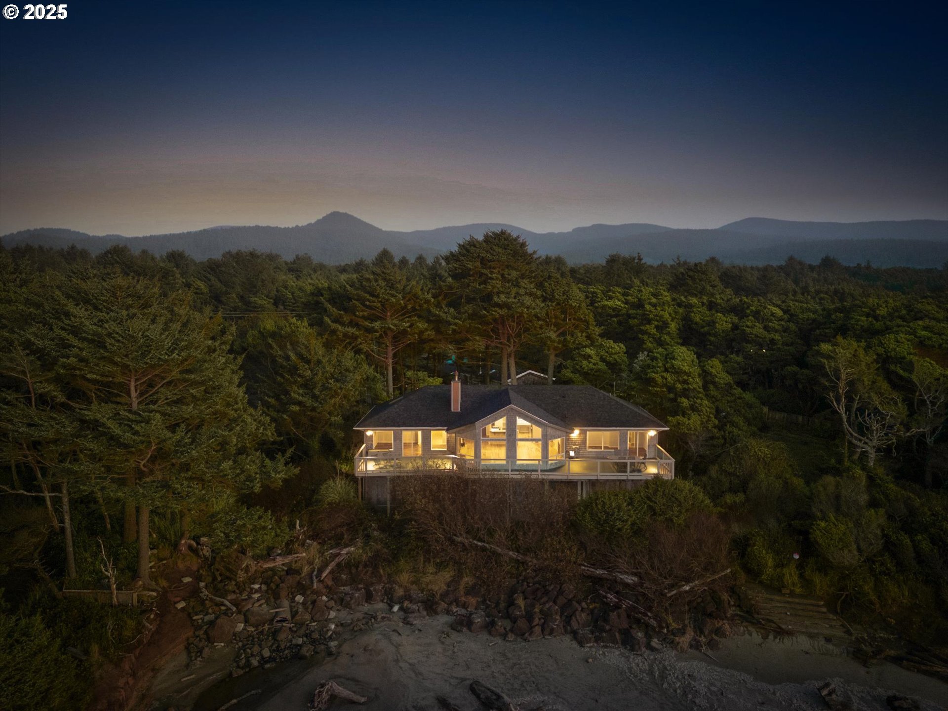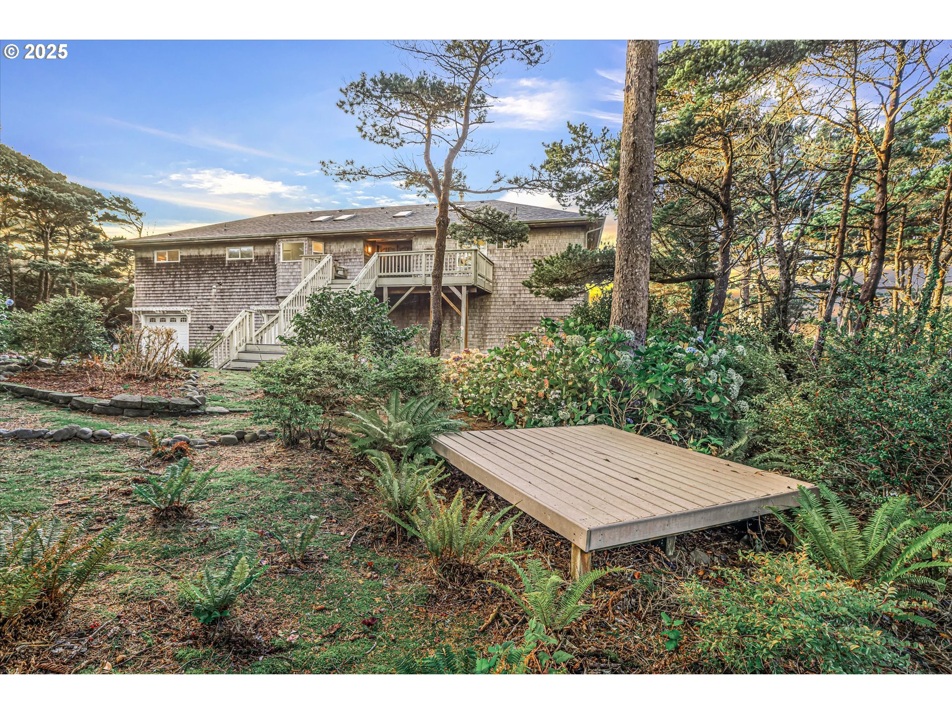 (503) 893-8874Private Oceanfront Home in a Quiet Cove Near Yachats - This 2,354 sq ft home offers peaceful coastal living just minutes from charming Yachats. The spacious, open living area showcases vaulted ceilings, exposed beams, and large windows that bring in natural light and stunning ocean views. The single-level layout includes 2 bedrooms, 2.5 baths, and a den with a Murphy bed for guests or an office. Tile accents and stained-glass details add a warm coastal touch. Recent, worry-free updates include a new Trex deck and a new roof this October. Downstairs, the 2,361 sq ft garage and workshop can fit three or more vehicles, a boat or hobbies. Surrounded by natural landscaping, the home sits in a truly private setting while still close to Yachats' cafes, shops, and local art.