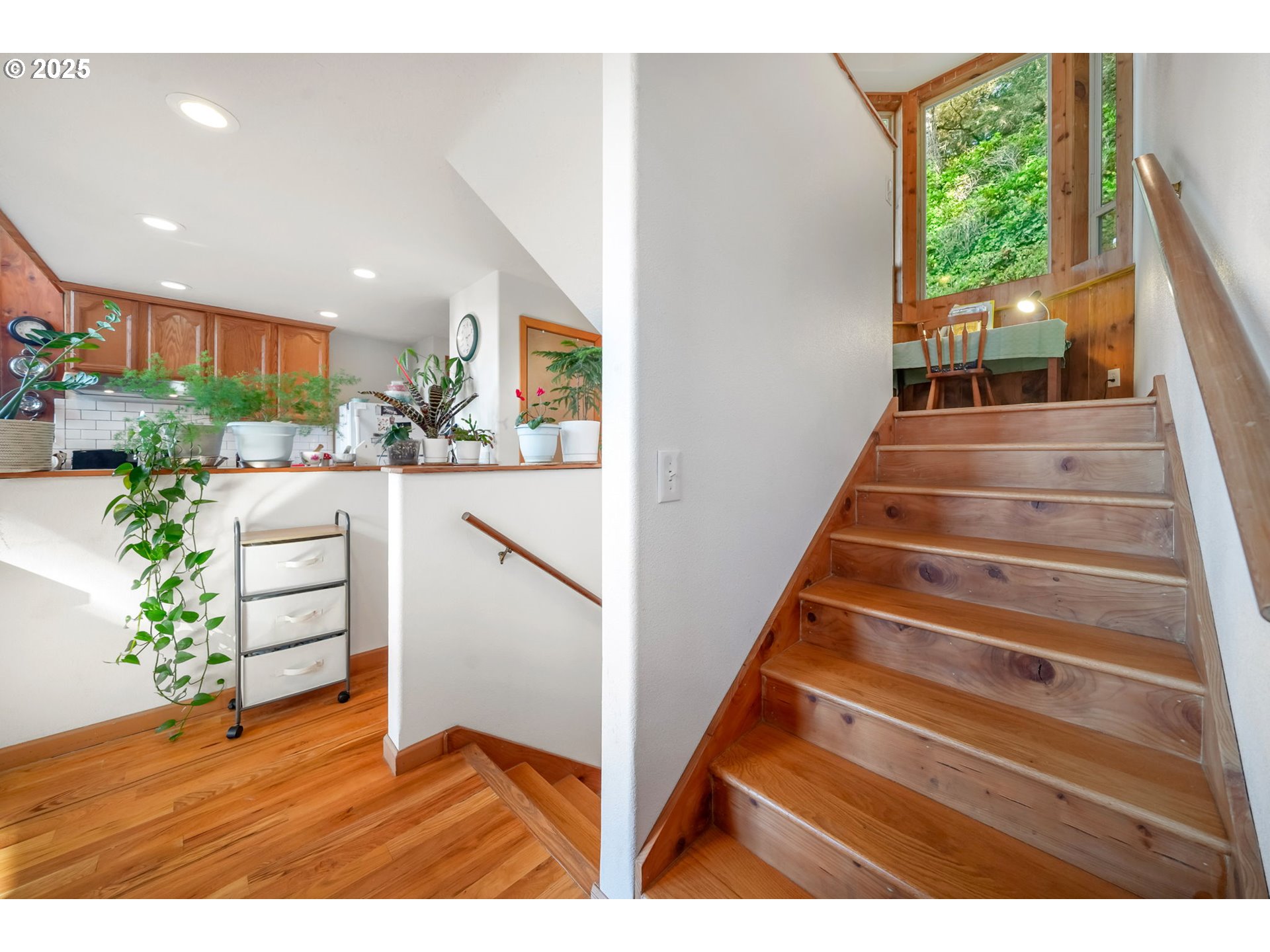 (503) 893-8874Custom built Ocean View home situated on a sizable, forested lot overlooking the scenic landscape. Prime location in a private setting, watch the mesmerizing coast line with sounds of the waves below. Intentional design that takes advantage of the amazing Ocean Views from almost every room! Inside, the open-concept living area features soaring ceilings and a dramatic wall of windows that fill the home with natural light and capture sweeping views of the Pacific. Lovingly built with features throughout including milled woodwork sourced from the site, hardwood flooring & a backlit fireplace showing off local agates.The open kitchen is perfect for entertaining and attached to a separate pantry/ laundry area. Off of the living area is the spacious ocean-view deck with recently upgraded framing, stainless steel connectors and Trex decking. The main level offers an ensuite bedroom & powder room. Upstairs you’ll find two ensuite bedrooms, with interior windows to take in the ocean views, each with access to a rear ocean view patio. Downstairs is a bonus room with a full bathroom and private entrance, ideal for an office, guest room, game room or more. Ample storage throughout the home. Owners have done a considerable amount of updating including: newer forced air heat pump, exterior painting 2019, 50 year roof in 2021, new stainless flashing and chimney cap, new driveway in 2022 and kept up on maintenance items throughout.