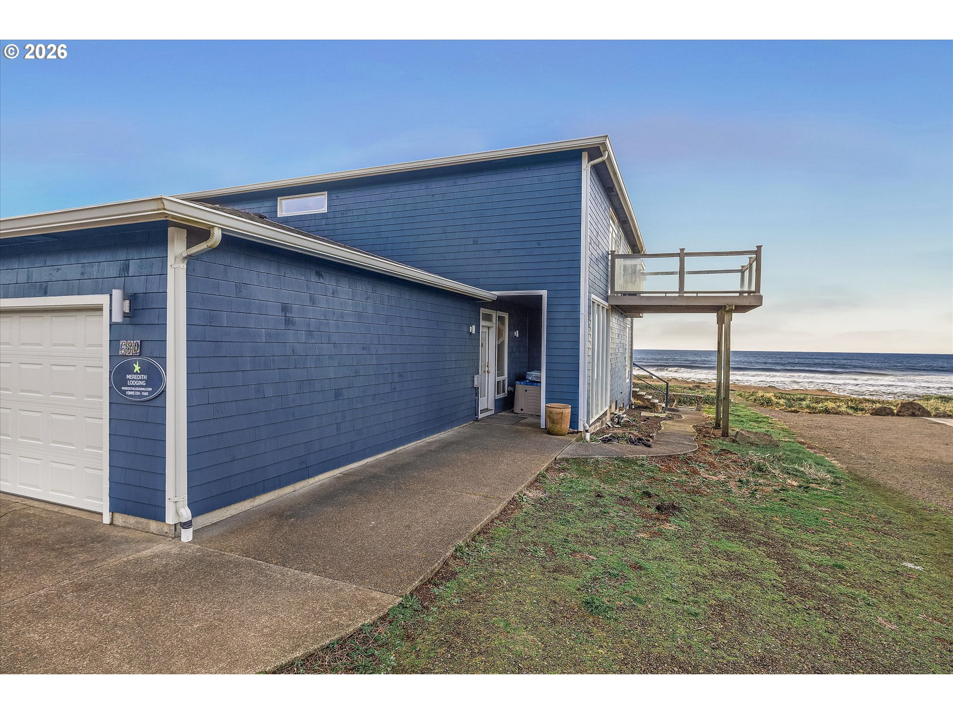 Enjoy the beauty of the Pacific from this oceanfront residence along Yachats' iconic 804 Trail. With expansive coastline views and direct access to the shoreline, the home offers a front-row seat to sunsets, migrating whales, and the ever-changing rhythm of the sea. Situated at the end of Coolidge Lane, this attached single-family home features 3 bedrooms, 3 baths, and 2,108 sq ft of light-filled coastal living. Large view windows and generous decking create seamless indoor-outdoor living, inviting you to relax, entertain, and fully experience the coastal setting. A 528 sq ft attached garage provides everyday convenience and ample storage. The City of Yachats maintains a vacation rental permit program; buyers to conduct due diligence with the City regarding licensing requirements and availability. Shares a common wall and roofline with the adjacent residence.