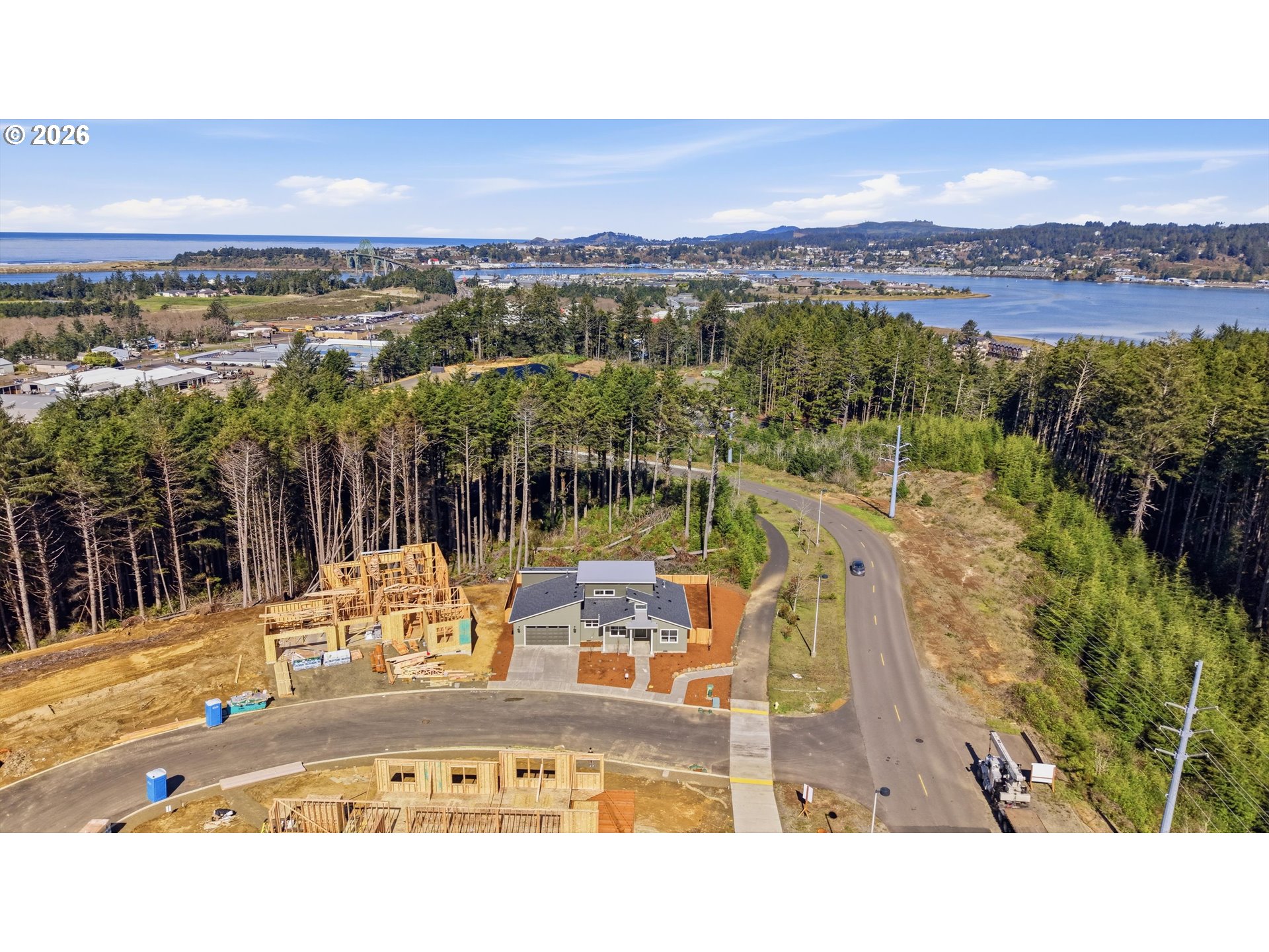 Experience coastal living at its finest in this beautifully designed single-level home featuring 3 bedrooms and 2 bathrooms. The spacious primary suite includes dual closets—one walk-in—and a spa-inspired en suite with a spacious tiled shower, soaking tub, and dual sinks.The open-concept great room is warm and inviting with tall ceilings, a gas fireplace with custom built-ins, and seamless flow into the dining area and chef’s kitchen. Here you’ll find a center island, solid surface countertops, a workstation sink upgrade, and an upgraded appliance package with built-in cooktop, oven, microwave, and hood range. A dedicated laundry room with storage adds convenience.Outdoor living is equally impressive with a covered back patio overlooking forested views. Elevated above the coastal tsunami zone, this home offers both peace of mind and panoramic vistas of the trees, coastline, and Yaquina Bay.Located in the sought-after Wilder community, you’ll enjoy a walkable lifestyle with access to local trail systems, dog parks, a disc golf course, restaurants, and more.A perfect blend of comfort, function, and Northwest beauty awaits.