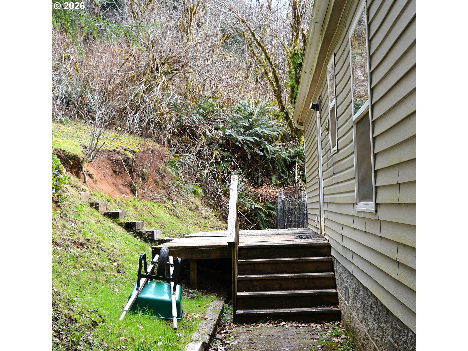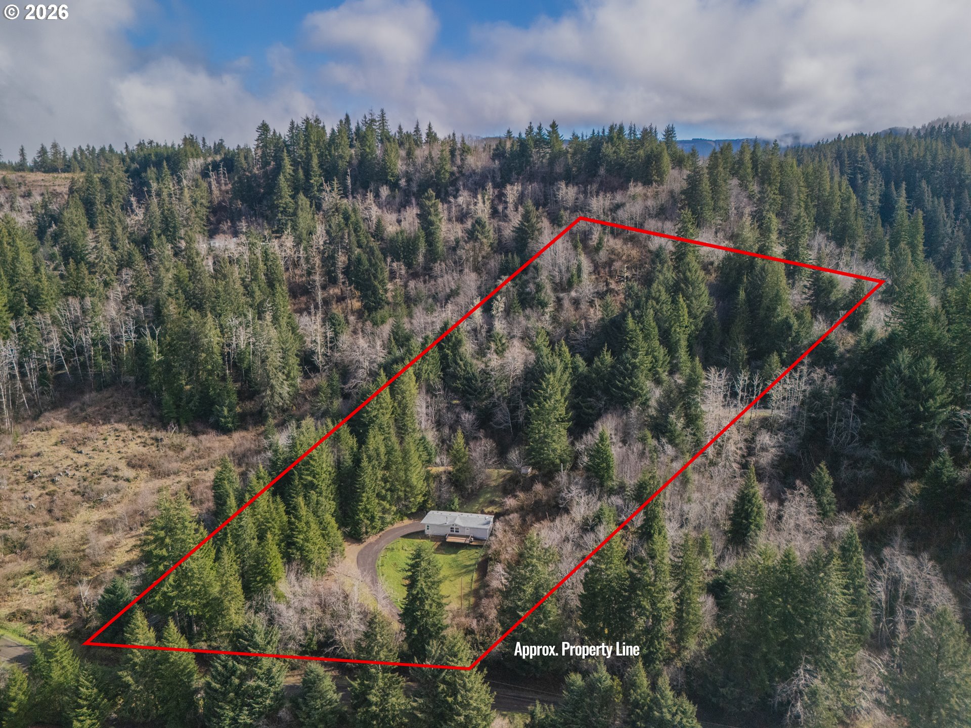NATURE LOVER'S DREAM and NOT FAR FROM THE OCEAN sits a 3 bedroom, 2 bath home on 5.62 acres of a hillside forested wonderland! Fenced front yard, a sunset facing deck and lots of privacy makes for a peaceful place in this world. The home has a spacious kitchen, pantry and vaulted living room with lots of light. The ample sized primary bedroom has a walk-in closet and a full bath. Newer laminate floors and NEW ROOF in August 2025. Tranquil trails wander through the property. Gated driveway, so please make an appointment to view this relaxing home.