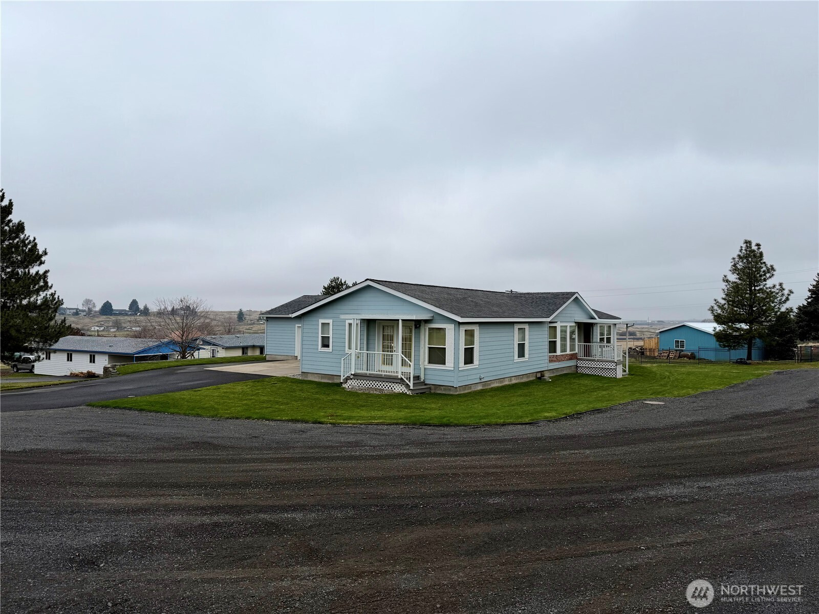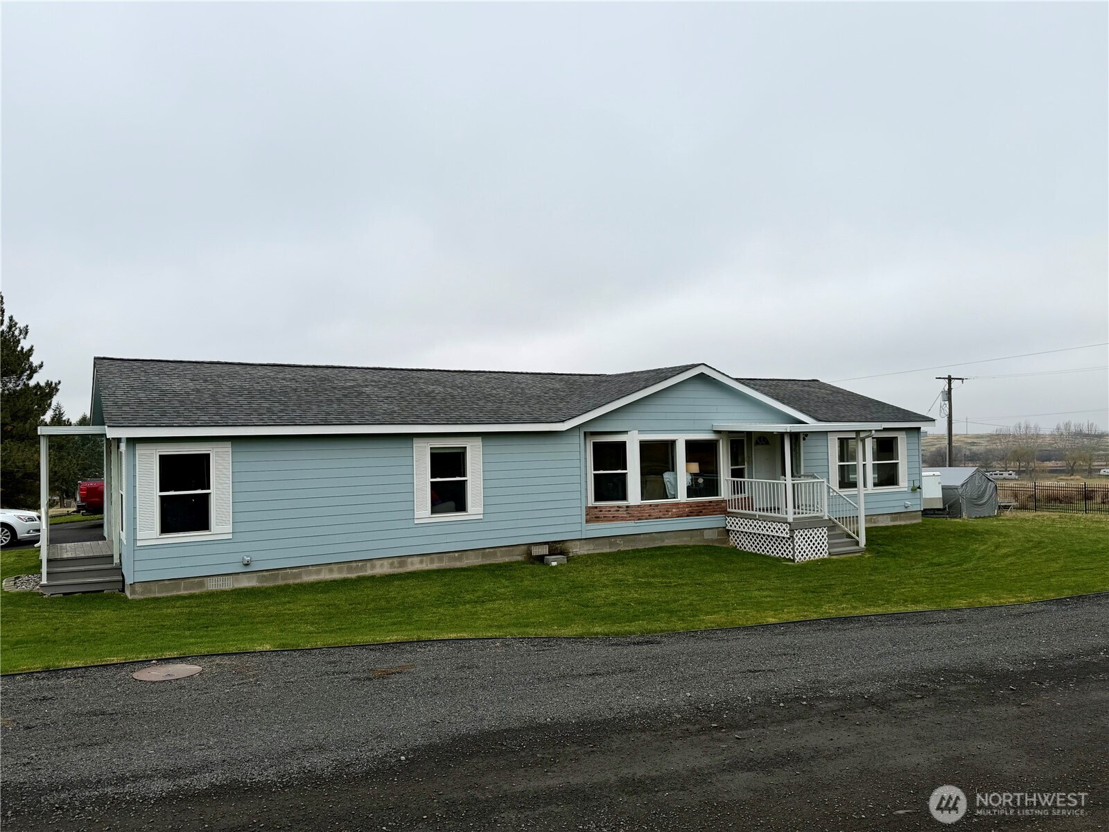 Offering 1,836 sf of comfortable living, this bright 3-bedroom, 2-bath home sits on an oversized corner lot just steps from the golf course. Large windows bring in abundant light, highlighting an inviting layout designed for everyday ease. The two-car attached garage adds convenience, while auto sprinklers keep the yard low-maintenance and ready for outdoor enjoyment. With Lake Roosevelt only a short drive away, this property blends recreation, relaxation, and spacious living in a highly desirable setting. The expansive corner lot offers room for gardening, play, or future projects, while the peaceful surroundings enhance its appeal. Whether as a full-time residence or a getaway, this home delivers comfort, convenience, and welcoming feel.