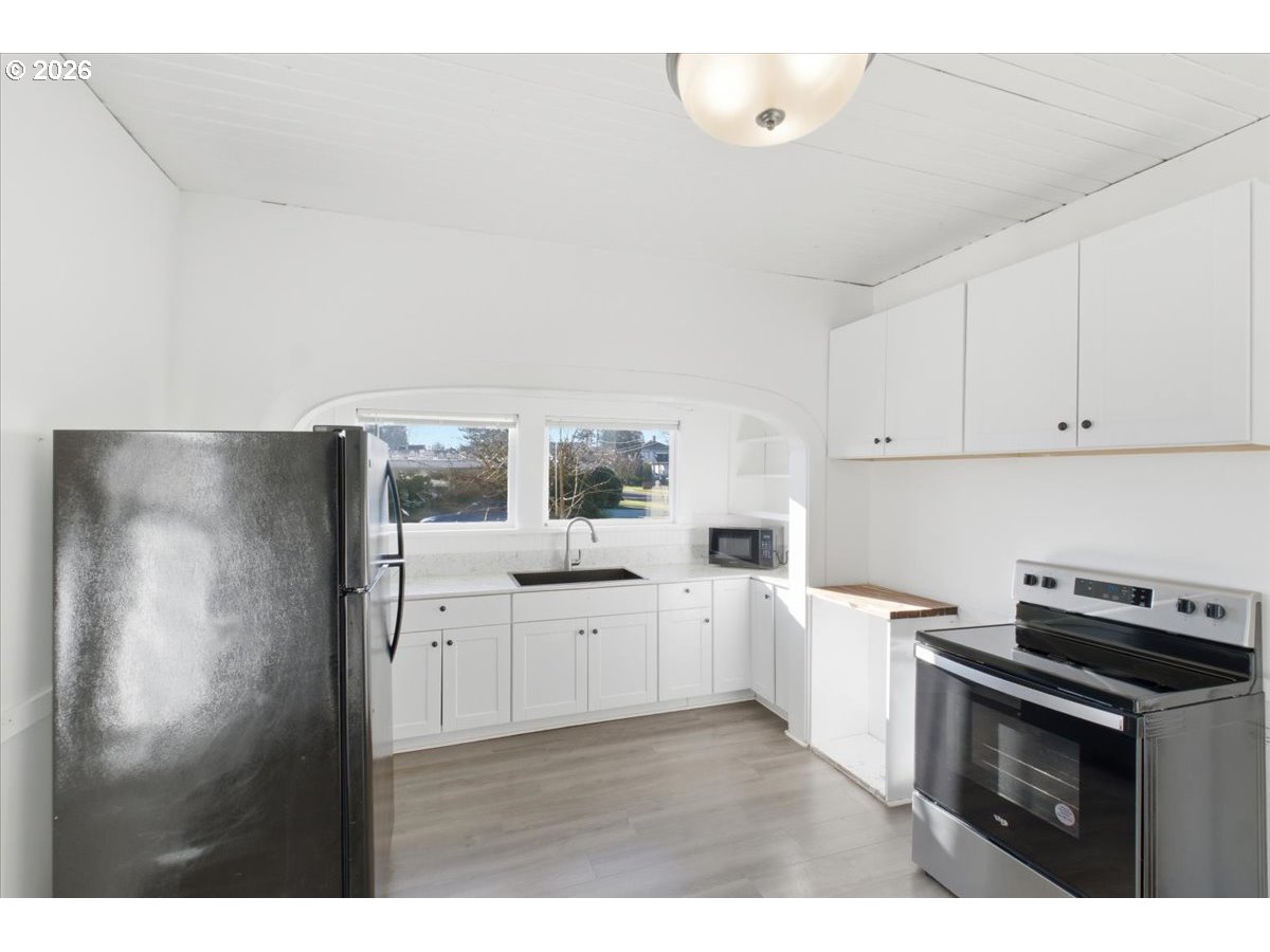 (503) 893-8874This charming 1910 home offers 2 beds, 1 bath, plus an office, providing comfortable and flexible living space. Period details shine with original built-ins, a coved kitchen opening, and a classic clawfoot tub. Newer interior/exterior paint, flooring, appliances, and a ductless heating and cooling system, makes the home truly move-in ready. Additional features include a two-car garage and basement storage with a 5’x 6’ root cellar. Ideally located near downtown and local amenities for convenience.