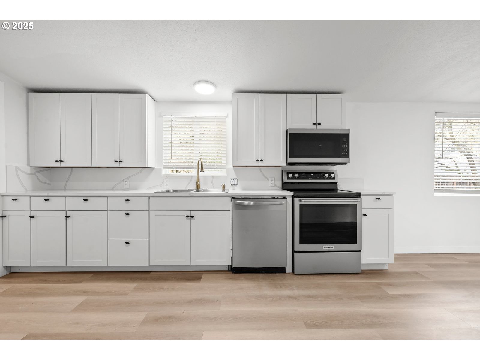 Beautifully updated 3-bedroom, 2-bathroom home offering modern style and comfort throughout. The stunning kitchen features new cabinetry, quartz countertops, stainless steel appliances, and lighting. Stylish laminate flooring flows through the main living areas, creating a clean and cohesive look. Both bathrooms have been upgraded with new vanities and modern shower/bathtub finishes. With a brand-new roof and turnkey, move-in-ready condition, this home and large lot is ready for its next owner to enjoy.