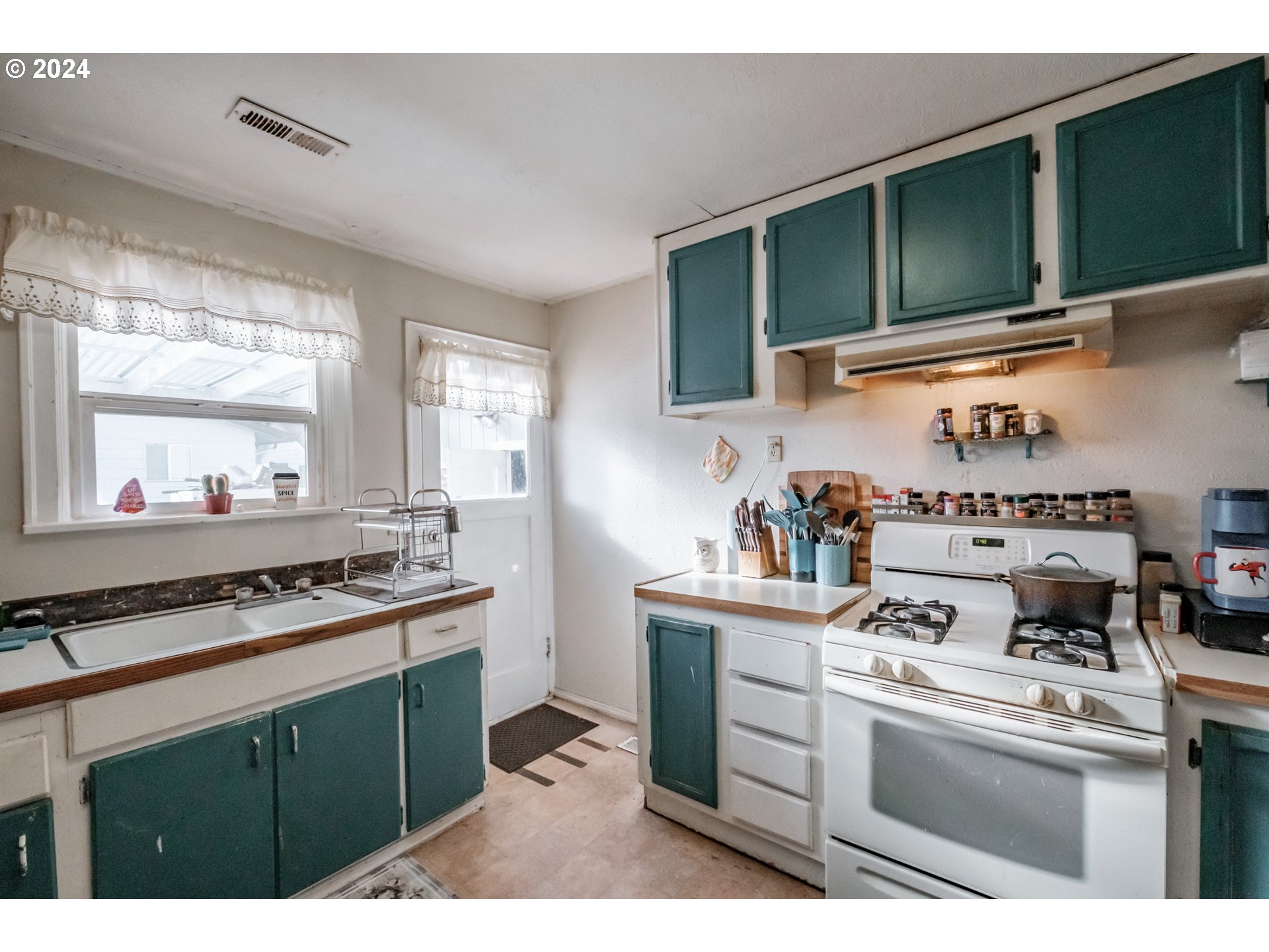 This charming 3-bedroom, 1-bathroom home on a 0.16-acre lot features inviting rooms, a quaint kitchen with a gas range, great cabinet space and a utility room. The converted garage provides extra storage space, with potential for a living area or workshop. Enjoy outdoor living with a covered front porch, a side patio, and a fenced yard for privacy. Additional amenities include forced air heat for year-round comfort. This property offers a perfect blend of comfort and functionality.