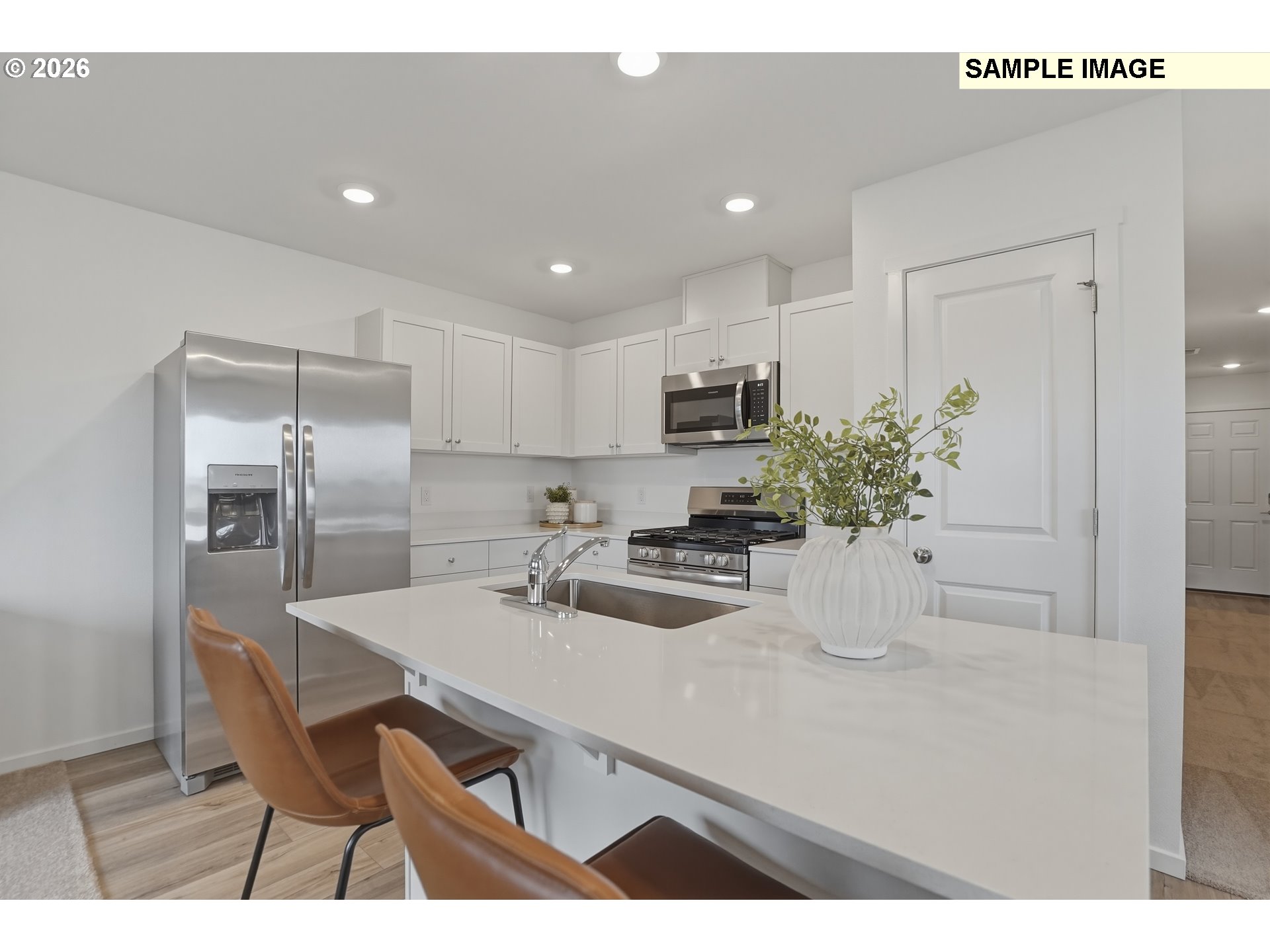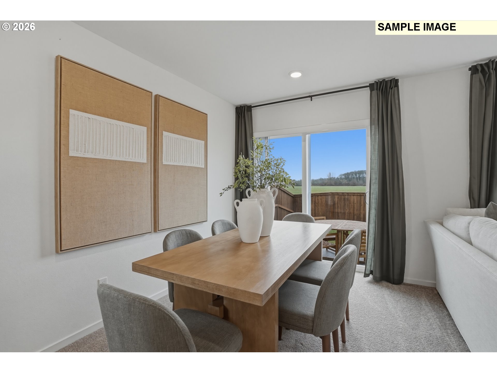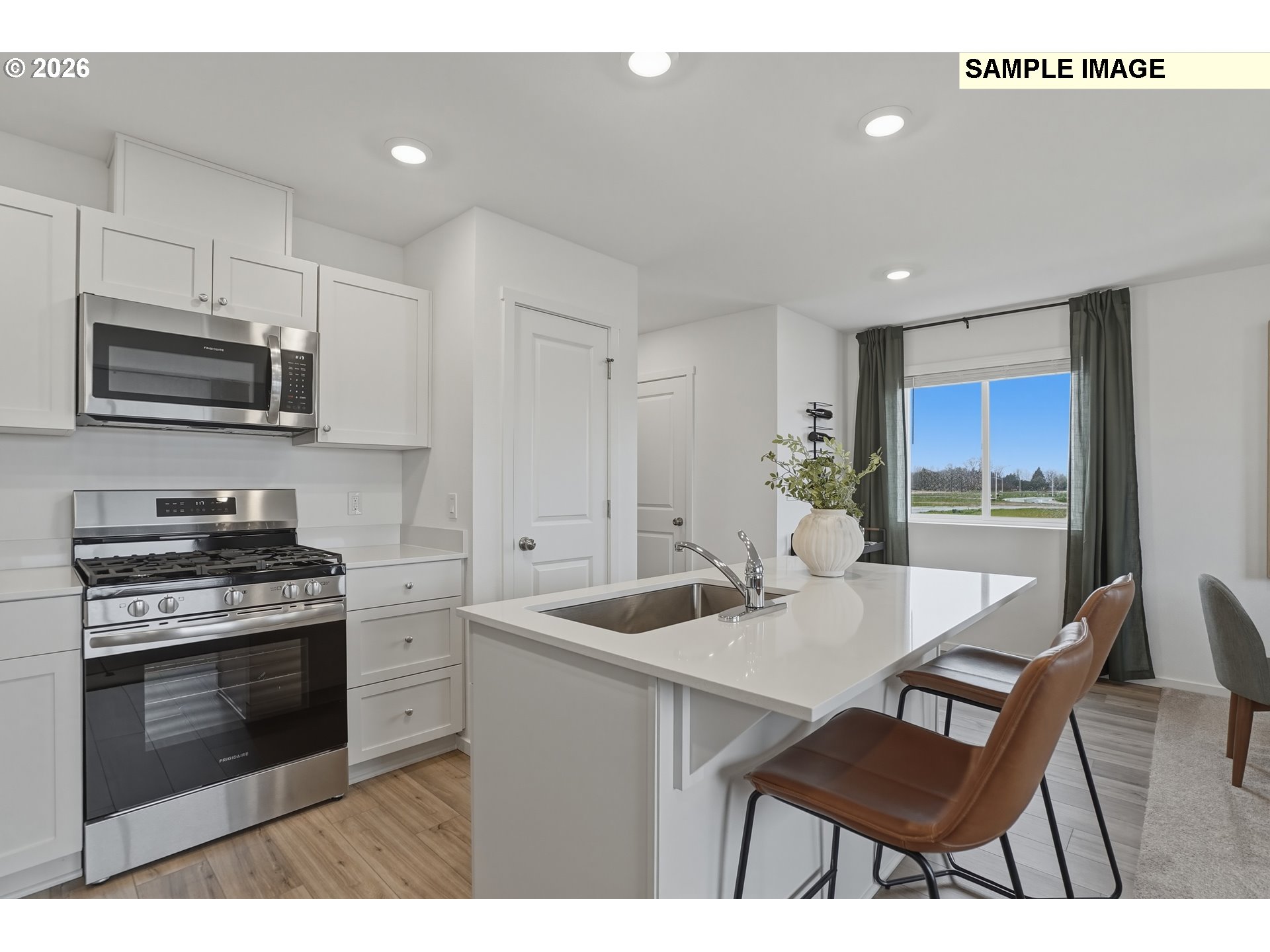 Welcome home to this charming duet-style home in Albany, thoughtfully designed for comfort, style, and easy living. The main level features an open layout that makes both everyday living and entertaining effortless. Natural light fills the living and dining spaces, creating a warm and welcoming atmosphere that flows seamlessly into the kitchen. The kitchen is beautifully appointed with quartz countertops, classic shaker-style cabinetry, and a full suite of stainless steel appliances—including refrigerator, range, microwave, and dishwasher—making it both stylish and functional for daily cooking. Durable luxury vinyl plank flooring on the main level adds a modern touch while providing easy maintenance. Upstairs, three bedrooms provide a peaceful retreat from the main living areas. The spacious owner’s suite offers a relaxing place to unwind, complete with a walk-in closet and a private bathroom featuring quartz countertops and a walk-in shower. Plush carpeting throughout the upper level adds comfort and warmth. A standout feature of this home is the versatile third-floor bonus room—perfect for a home office, media room, hobby or playroom—giving you the flexibility to create a space that fits your lifestyle. Added conveniences include a washer, dryer, and window blinds, helping make move-in day that much easier. Step outside to enjoy the private patio, ideal for morning coffee or quiet evenings outdoors. A single-bay attached garage completes the home, offering convenience and additional storage. With modern finishes, thoughtful design, and a flexible layout, this Albany home is one you won’t want to miss. Complete May 2026. Homesite 131. *Flex credit/closing cost incentive available when financing with preferred lender! Use towards rate buydown and closing costs.*