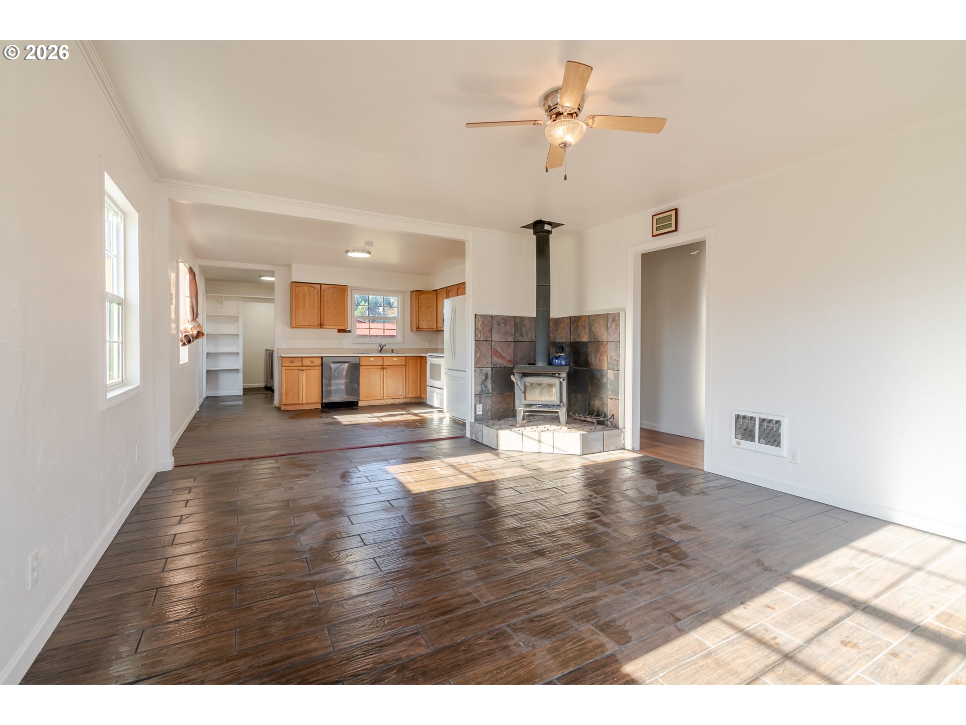 Welcome to this well-maintained Sweet Home home offering a large lot, valuable updates, and excellent outdoor space. Recent improvements include a newer front porch, new windows, new exterior doors, cedar siding, updated electrical, and partially updated plumbing—providing peace of mind for today’s buyer. Connected to city water and city sewer.Inside, the home features tile flooring in main living areas, bamboo laminate flooring in the bedrooms, and a certified wood stove for efficient supplemental heat. The living room includes a ceiling fan and comfortable layout. Bedrooms are served by baseboard heat. The spacious primary bedroom offers an attached bathroom with tub/shower combination and generous room to relax.The kitchen includes all appliances, a garbage disposal, and an electric hot water heater. Outside, enjoy a fully fenced backyard, large lot, RV parking, and a detached garage/shop—ideal for hobbies, storage, or additional workspace. A great opportunity with space, functionality, and convenient Sweet Home living.