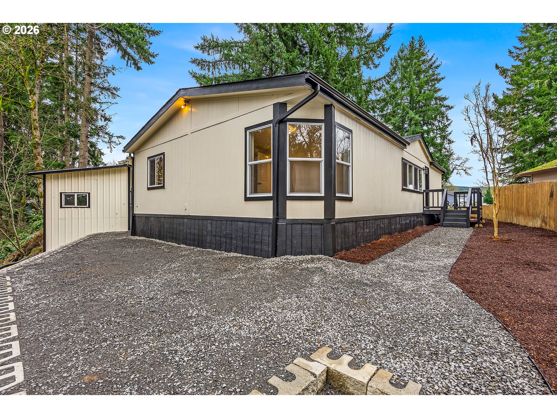 BETTER THAN NEW! To this newly remodeled 3bed + 2bath manufactured home located in a cul-de-sac! This home offers many new upgrades including a new roof, fresh interior + exterior paint, newly paved driveway, all new fixtures & lighting, new SS appliances, quartz countertops, built-in microwave, vinyl flooring, kitchen island, new windows, new AC, and both bathrooms are fully updated! The primary bedroom features new large windows for natural light along with a walk-through closet. The property also includes new barkdust/gravel, a large storage shed, and partial fencing. Conveniently located near schools, restaurants, shopping centers, and more! Schedule your showing TODAY!