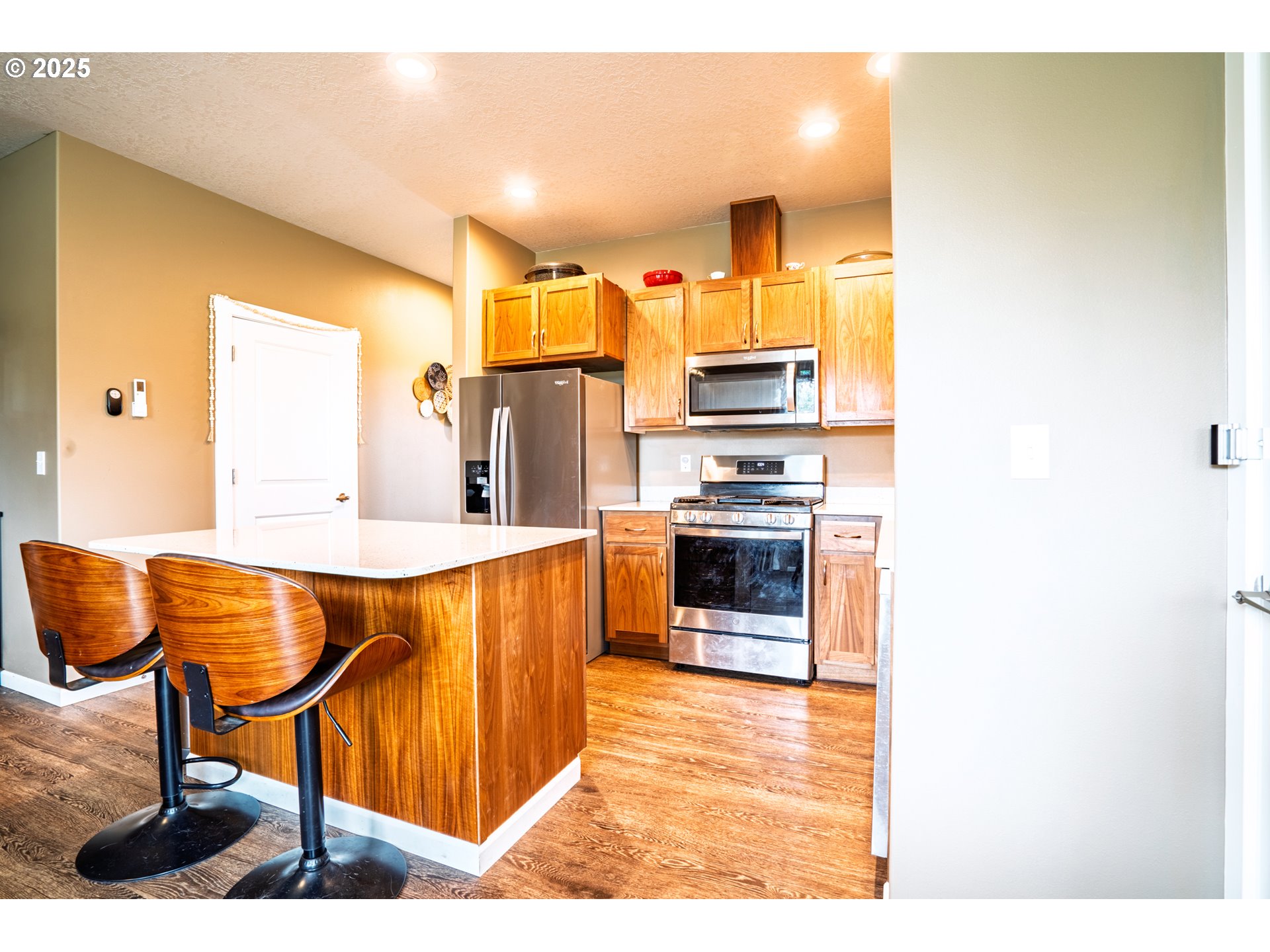 (503) 893-8874Beautifully built in 2022, this modern home sits on a quiet cul-de-sac and offers 3 bedrooms, 1.5 baths, and an open-concept living space. The bright kitchen features quartz countertops, Whirlpool stainless steel appliances, and stunning light fixtures throughout. Enjoy LVT flooring, ductless mini splits, smart features for the range and garage door, and an upstairs laundry area. Relax on the privat