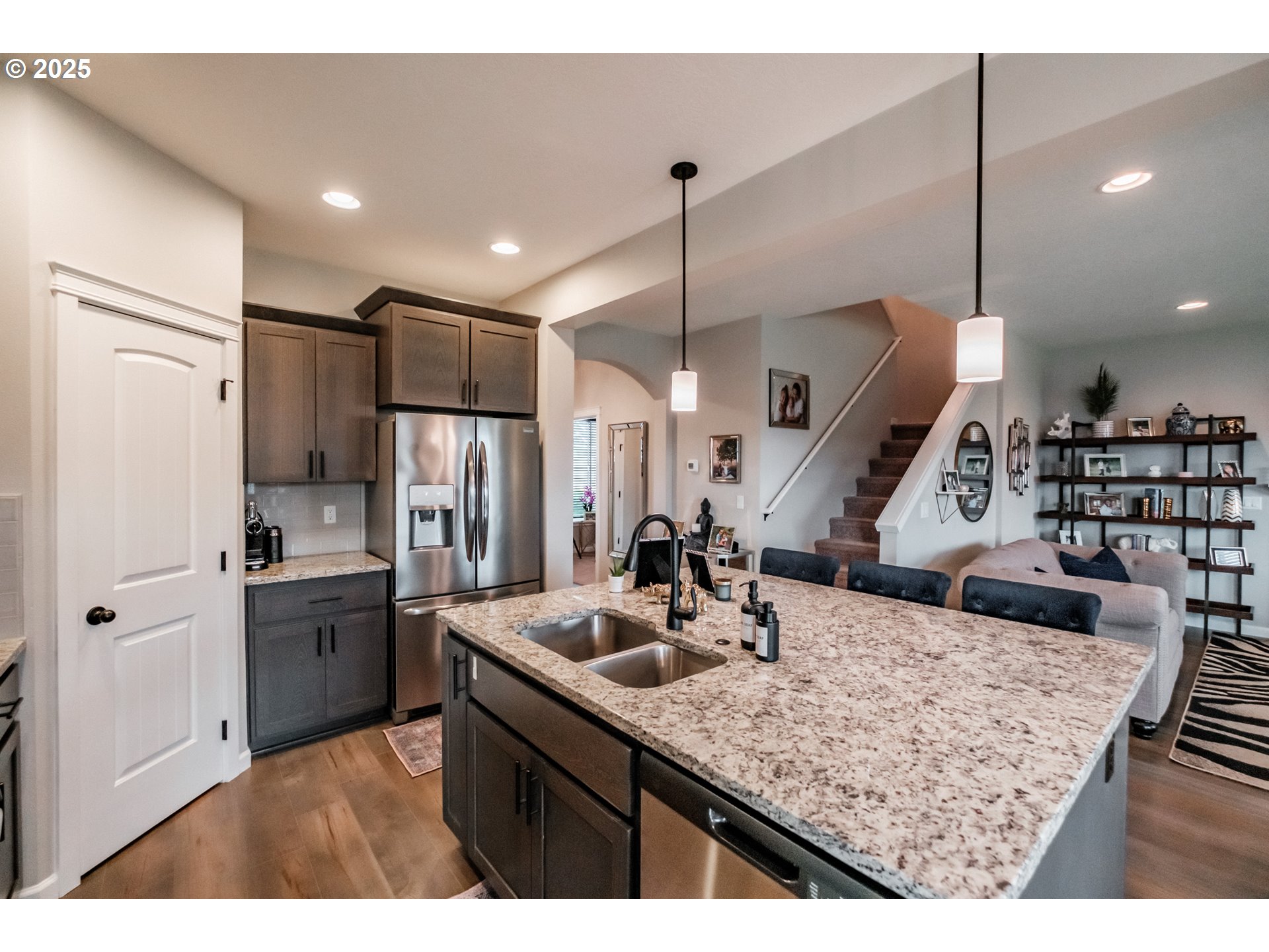 (503) 893-8874PRICE REDUCTION! This beautiful & spacious 2-story home at the end of a cul-de-sac is perfect for indoor and outdoor entertaining! Versatile floor plan with primary suite, bonus room, & 2 other BRs on upper level; 4th BR/den on main level. SS appliances, gas FP, vaulted ceilings, granite counters, spacious island & open concept floor plan. Features huge backyard with covered patio, large RV pad, fully fenced & landscaped, front & back underground sprinklers, raised garden beds, fruit trees, firepit area & basketball court.