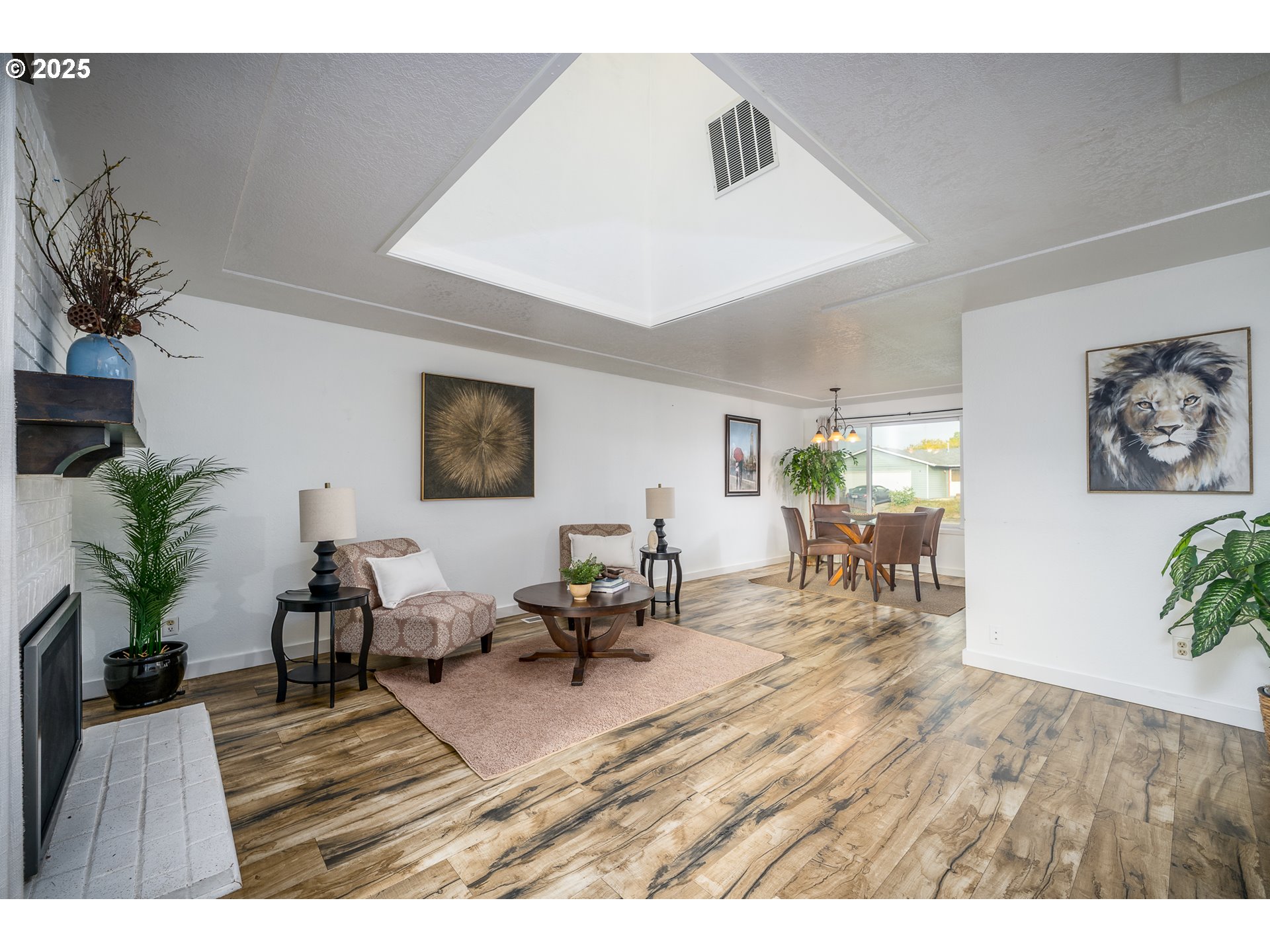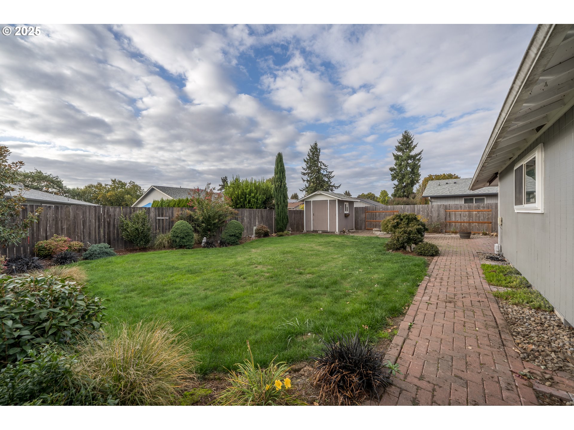 Welcome home to this beautifully remodeled single-level charmer! This inviting 3-bedroom, 2-bath home features a bright living room with a cozy fireplace and skylight that fills the space with natural light. The well-designed kitchen offers ample counter space and cabinetry, opening to a comfortable dining room perfect for everyday meals or entertaining. Step outside to a covered patio overlooking the fully fenced backyard with mature landscaping, a garden shed, and plenty of room to relax or garden. Enjoy year-round comfort with central air conditioning and the convenience of an attached two-car garage.Thoughtfully updated and move-in ready, this home combines style, comfort, and easy living—all in a peaceful neighborhood setting.