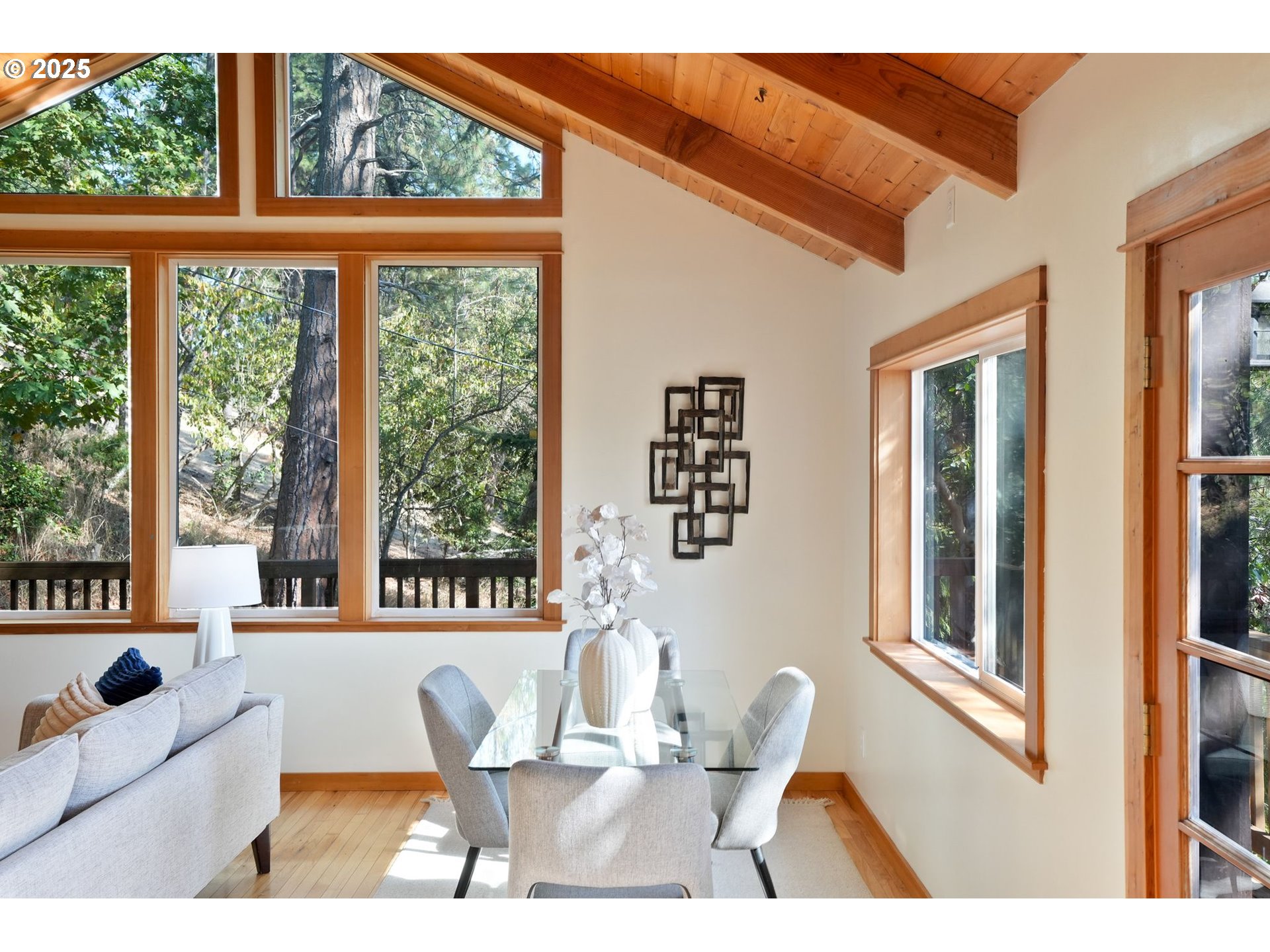 (503) 893-8874Serenity, convenience, and opportunity in one exceptional package. Stunning wall of windows that frame forest and mountain views. Vaulted cedar ceilings and wood floors create warmth and character, while a wood-burning stove makes the living space feel cozier year-round. This level also includes two bedrooms, a full bath, and a deck. Downstairs is garage/storage plus a separate bedroom and bath with privacy entry. Detached studio cabin w kitchenette/bath - ideal for guests, family, office, or rental home.