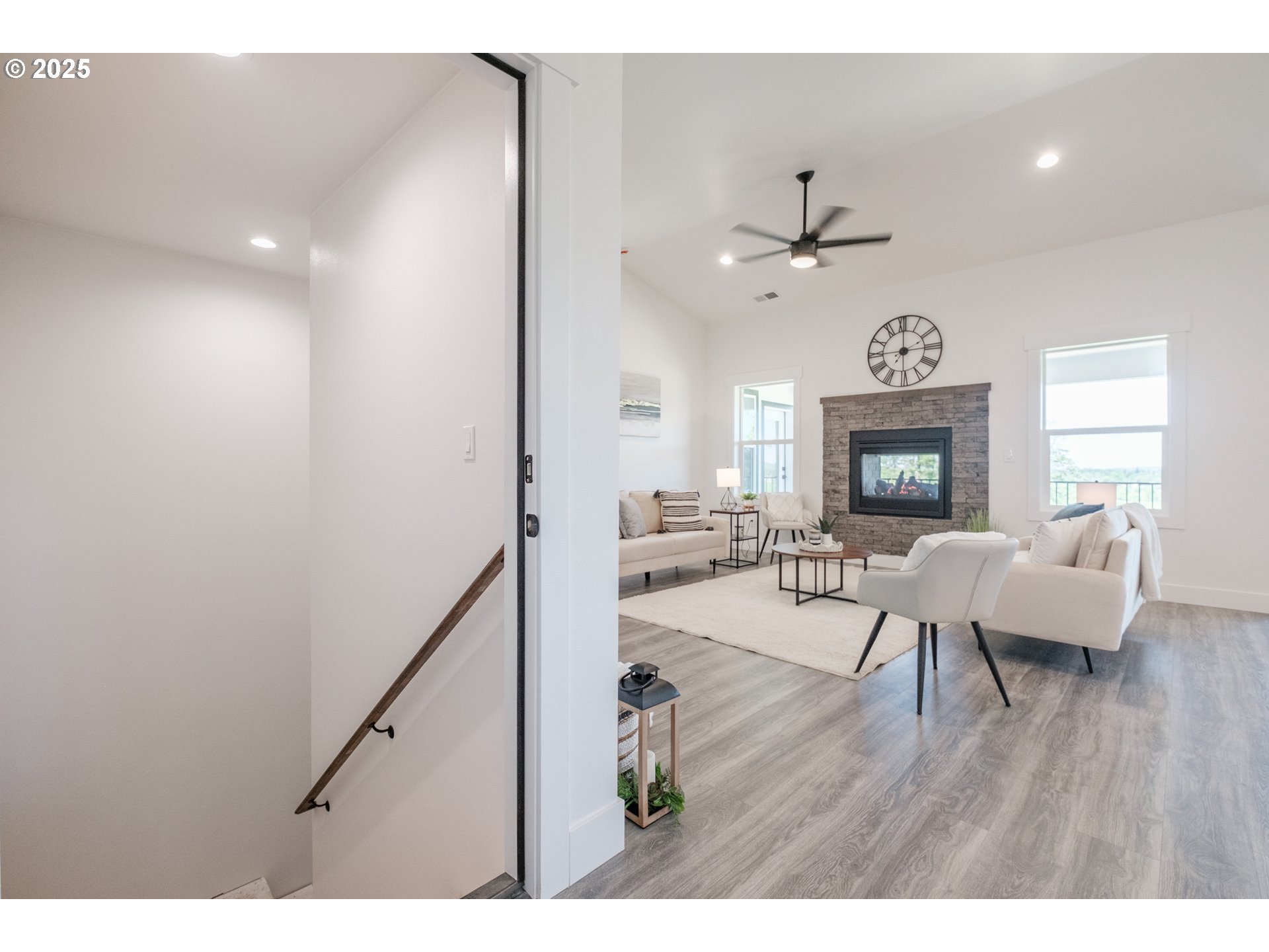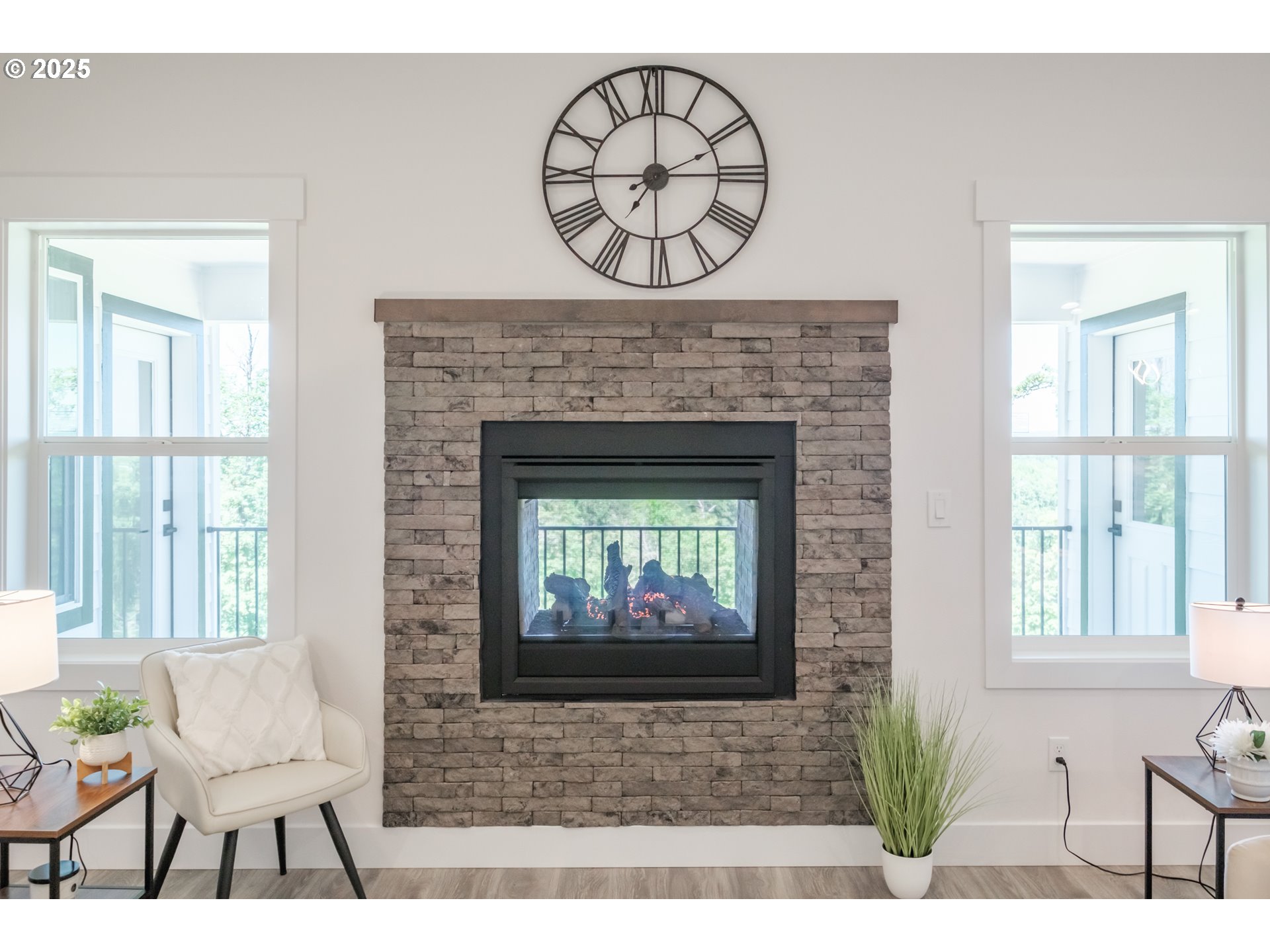 Brand New Construction with Modern Style and Scenic Views. This stunning new build offers the perfect blend of luxury, functionality, and location—nestled just outside of city limits near East Linn in a highly desirable area. The 2,442 sq. ft. main level features a thoughtfully designed open-concept layout with modern finishes throughout. Enjoy the warmth of a double-sided fireplace that connects the spacious living room to the covered back deck, creating seamless indoor-outdoor living. The island kitchen is a chef’s dream with quartz countertops, a farmhouse sink, tile backsplash, gas range, walk-in pantry, and breakfast bar seating. The primary suite is a serene retreat with deck access, an XL walk-in closet, dual sinks, freestanding soaking tub, and a separate shower. Additional features include a guest suite with private half bath, a triple car garage, and a full unfinished daylight basement offering future expansion potential. Set on a beautiful lot with panoramic views of the surrounding terrain and nearby mountains—this home is the ideal combination of peaceful country living and contemporary comfort.