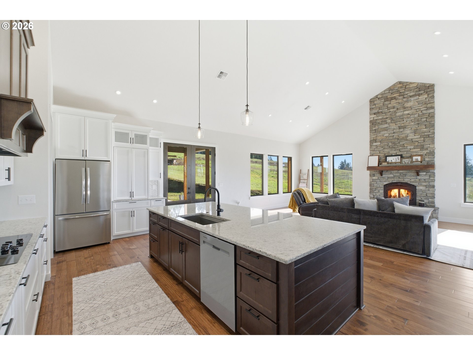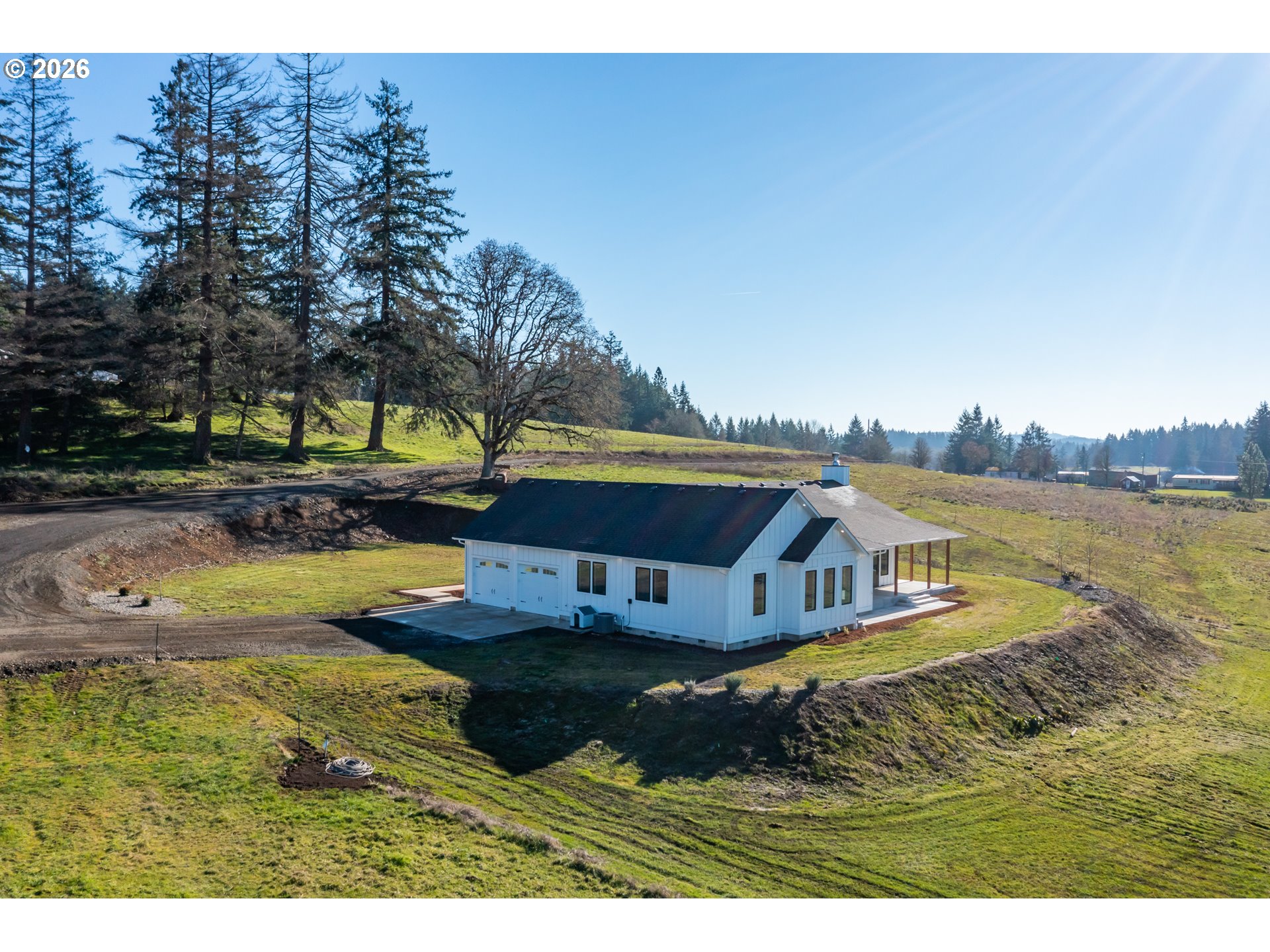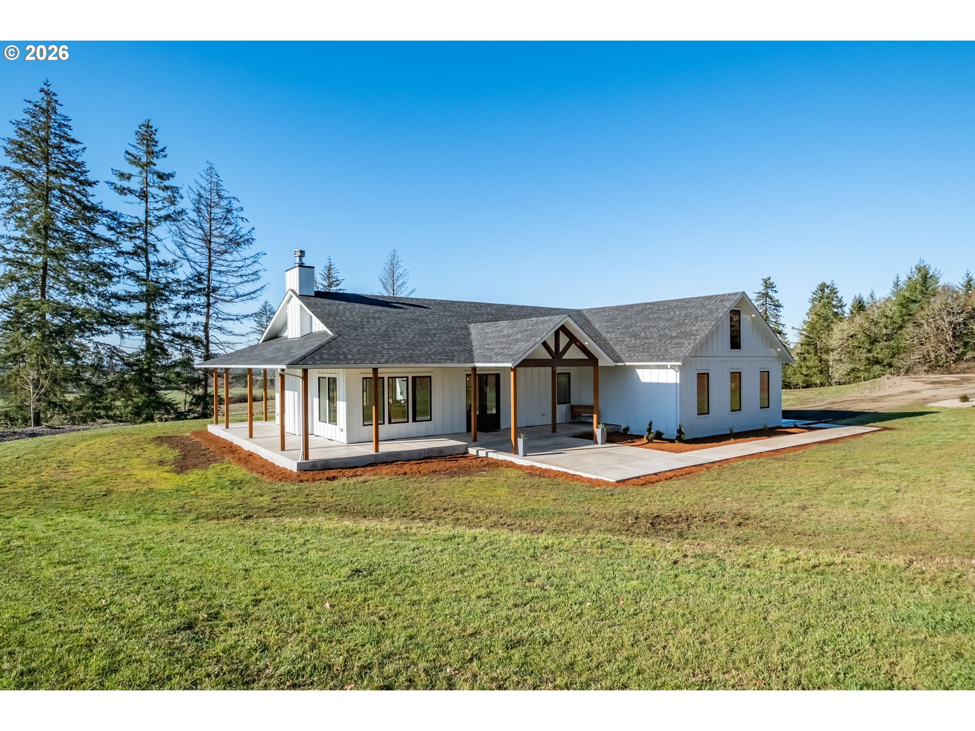 Experience serene country living in this custom-built, like-new home set on 39.74 private acres with beautiful mountain views. Built in 2022 and thoughtfully positioned well back from the road, the property offers exceptional privacy and a peaceful, secluded setting.The home features an open-concept floor plan designed for modern living, with abundant natural light, quality finishes, and comfortable flow throughout. Indoor and outdoor living blend seamlessly with over 1,400 square feet of covered, wrap-around concrete patio, ideal for entertaining, relaxing, or enjoying the surrounding views year-round.An oversized attached garage and impressive 48x72 shop provide exceptional versatility for storage, equipment, hobbies, or recreational use. The expansive acreage offers space to explore, enjoy the outdoors, or embrace a quiet rural lifestyle.This rare property combines quality construction, privacy, stunning scenery, and functional outbuildings—offering a peaceful retreat with room to roam while remaining within reach of nearby amenities.