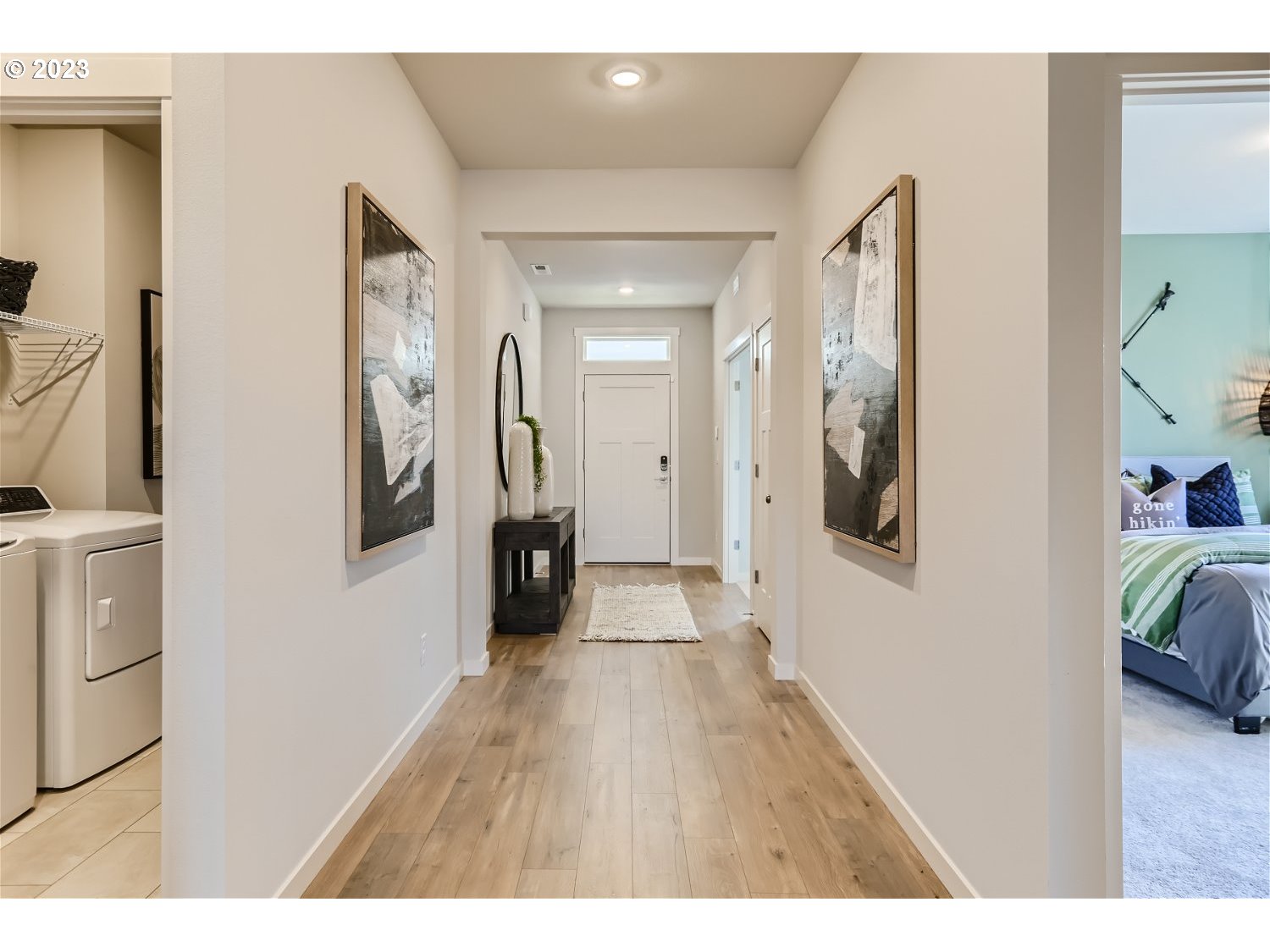 Move in ready! The popular 4 bedroom Endicott floor plan comes with A/C, all appliances including washer and dryer. Blinds, quartz counters, modern gas fireplace, has LVP flooring in entry, kitchen, and dining room comes with Tankless hot water heater. Owners suite offers a soaking tub and sizable walk in closet. Full landscaping front/rear yard with UG sprinklers as well as back yard fencing is also included. This 3 car garage home that backs to wetlands and has possible room for boat/trailer. This homesite 214 photos are samples of a staged Endicott. Ask about our flex credit to buy down your rate with the use of preferred lender!