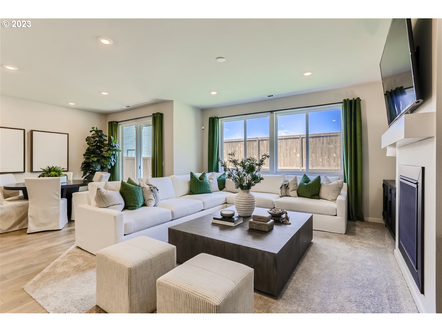 The popular 4 bedroom Endicott floor plan comes with A/C, all appliances including washer and dryer. Blinds, quartz counters, modern gas fireplace, has LVP flooring in entry, kitchen, and dining room comes with Tankless hot water heater. Owners suite offers a soaking tub and sizable walk in closet. Full landscaping front/rear yard with UG sprinklers as well as back yard fencing is also included. This 3 car garage home that backs to tall trees and wooded area. This homesite 223 photos are samples of a staged Endicott. Ask about our flex credit to buy down your rate with the use of preferred lender! Completion in February 2026