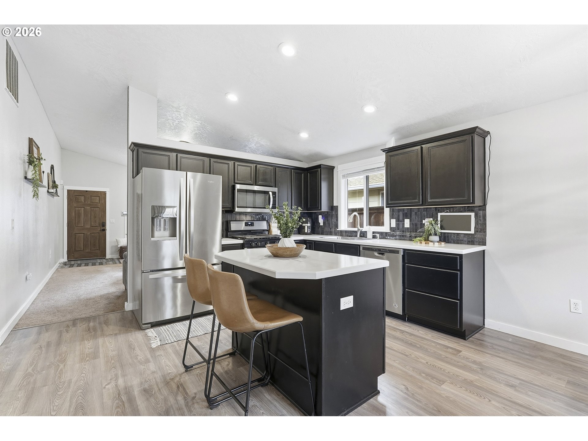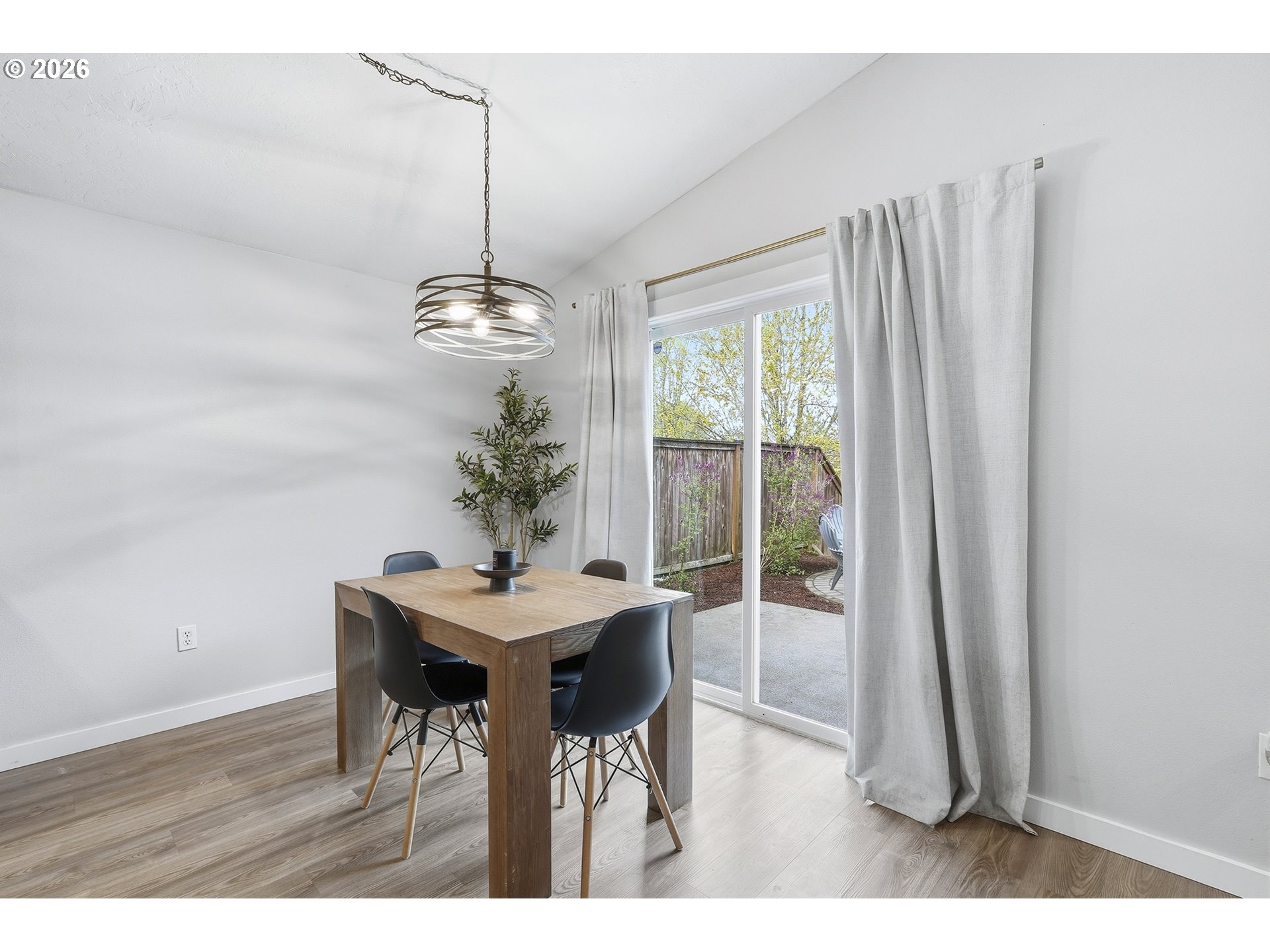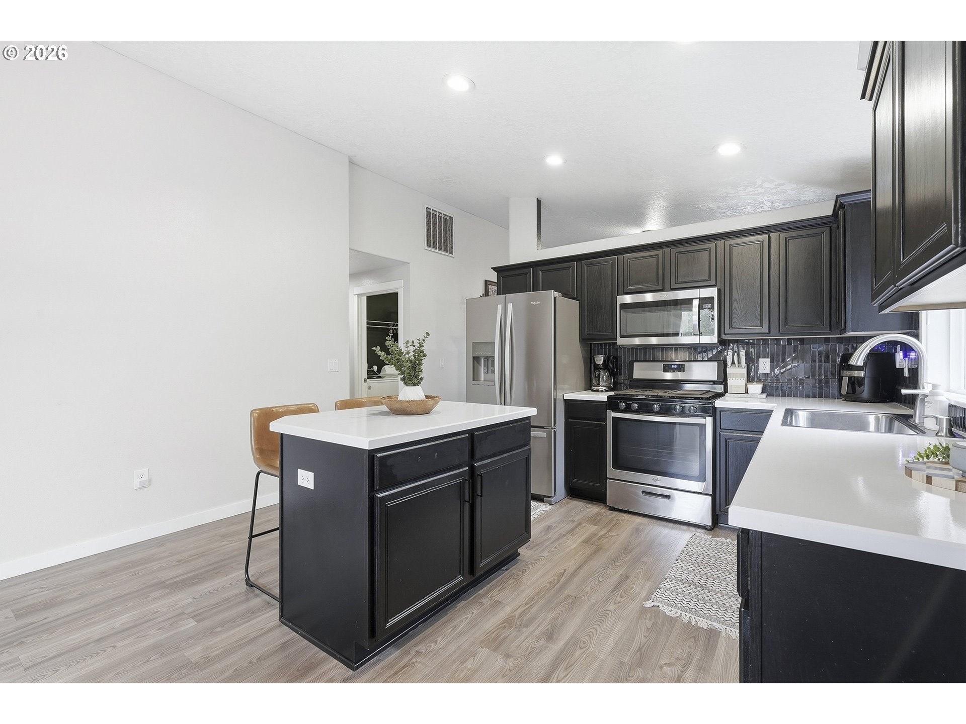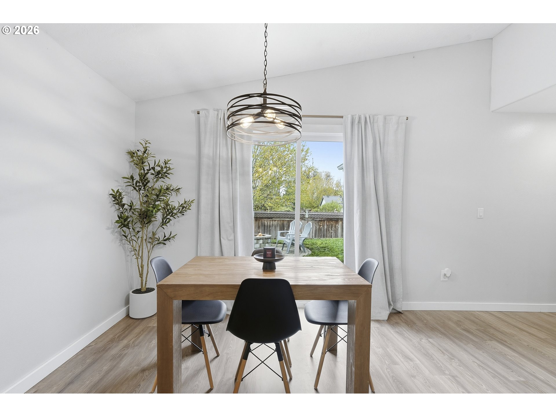 Immaculate modern ranch home set on 0.12-acre lot in North Albany, offering effortless one-level living with space to relax or entertain. This thoughtfully designed home features 3 bedrooms and 2 fully updated bathrooms, along with a spacious living room anchored by a cozy gas fireplace, and new LVP flooring installed in 2025. The kitchen is both functional and inviting, with abundant counter and cabinet space, island with storage, built-in microwave, stainless-steel appliances, gas stovetop, ambient nighttime mode lighting and more. Just off the kitchen the dining area includes a pantry and seamless access to the patio and backyard living space. Step outside to a peaceful fully fenced yard, designed for both relaxation and enjoyment-complete with a patio, custom pavers, fire pit, raised garden beds, and generous lawn perfect for games or pets.