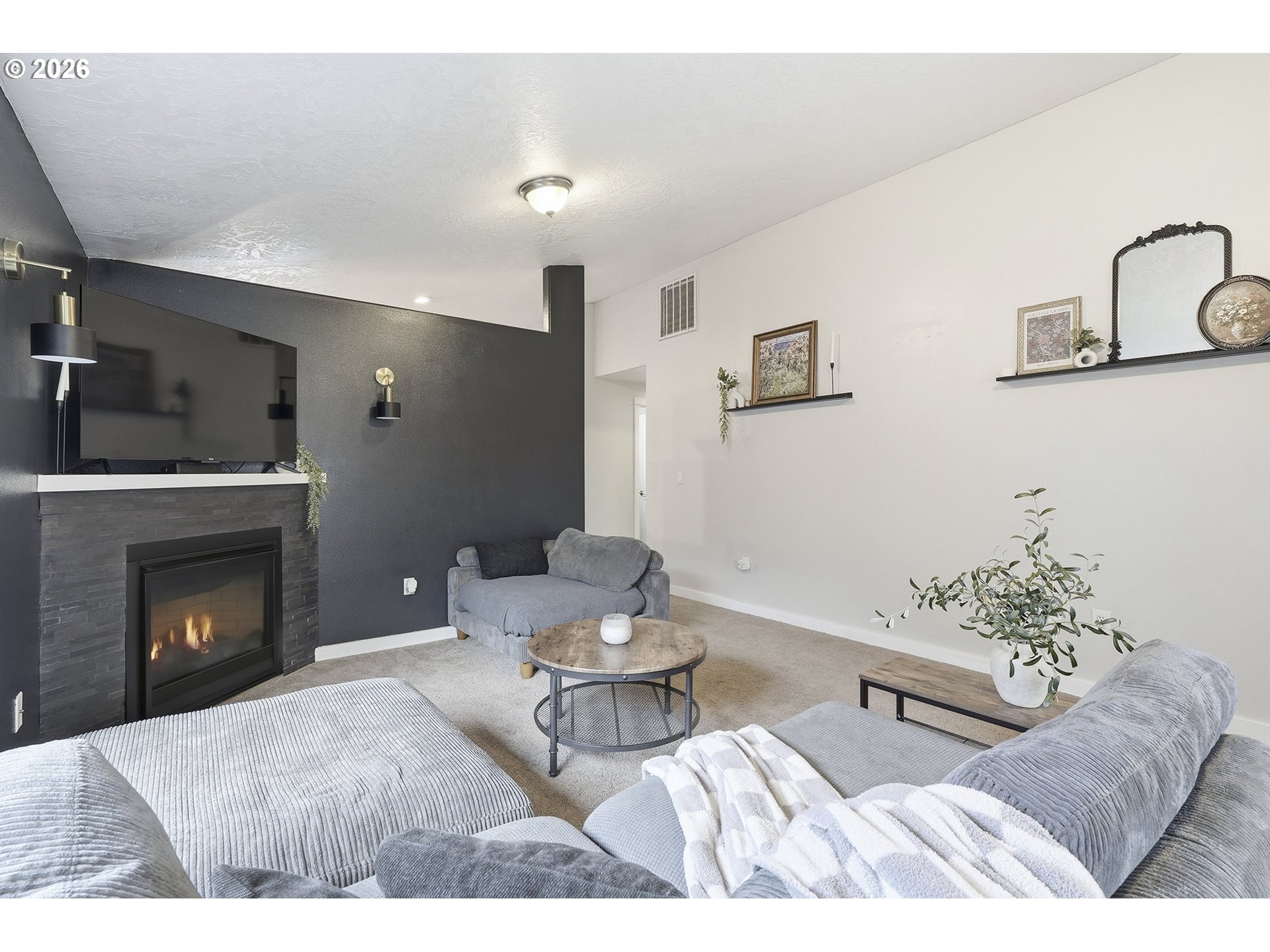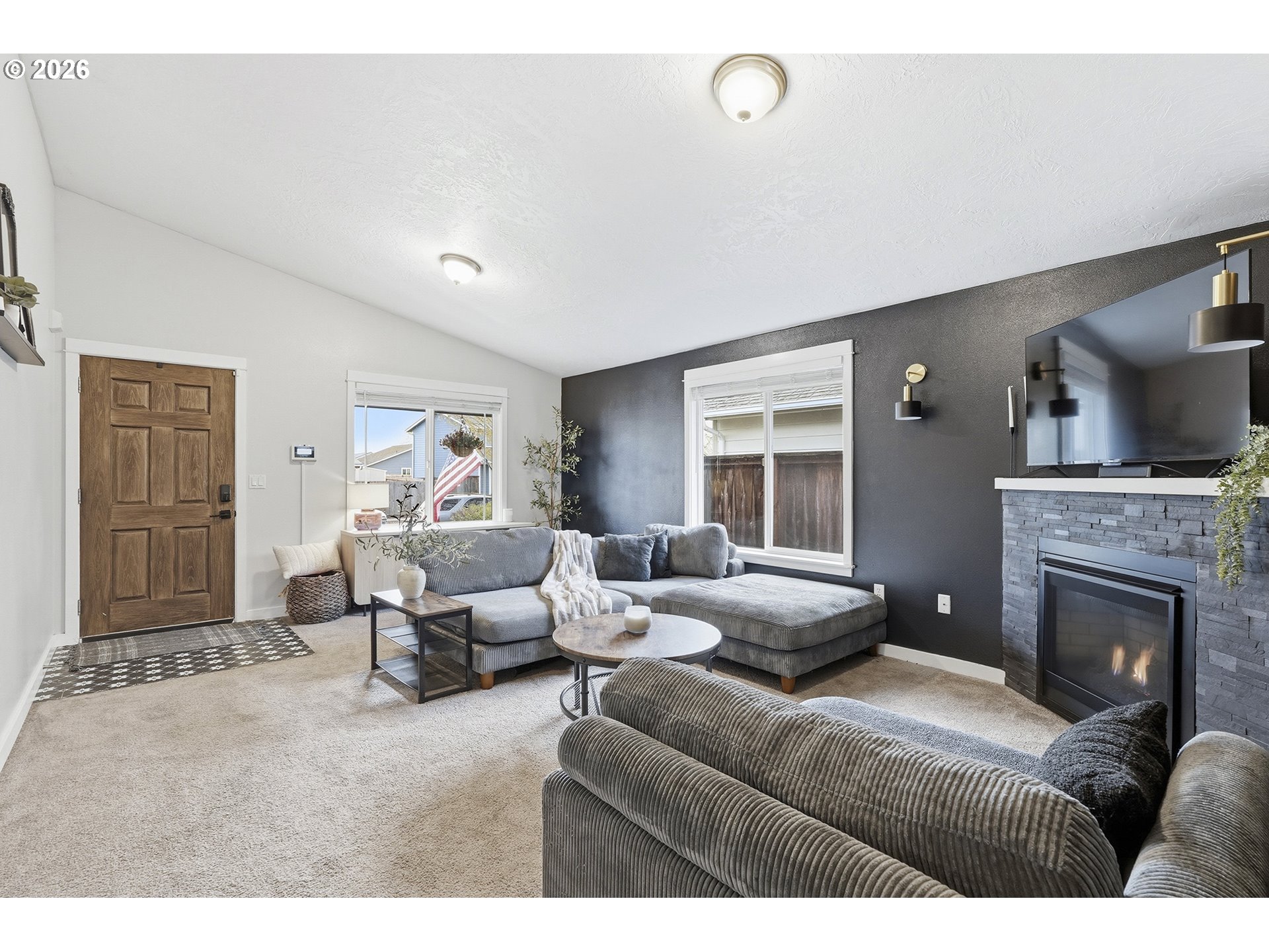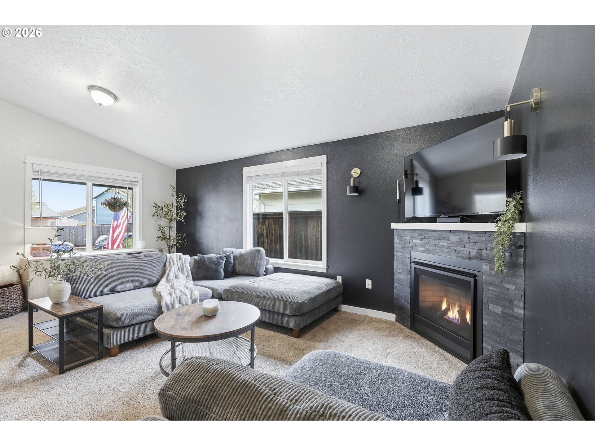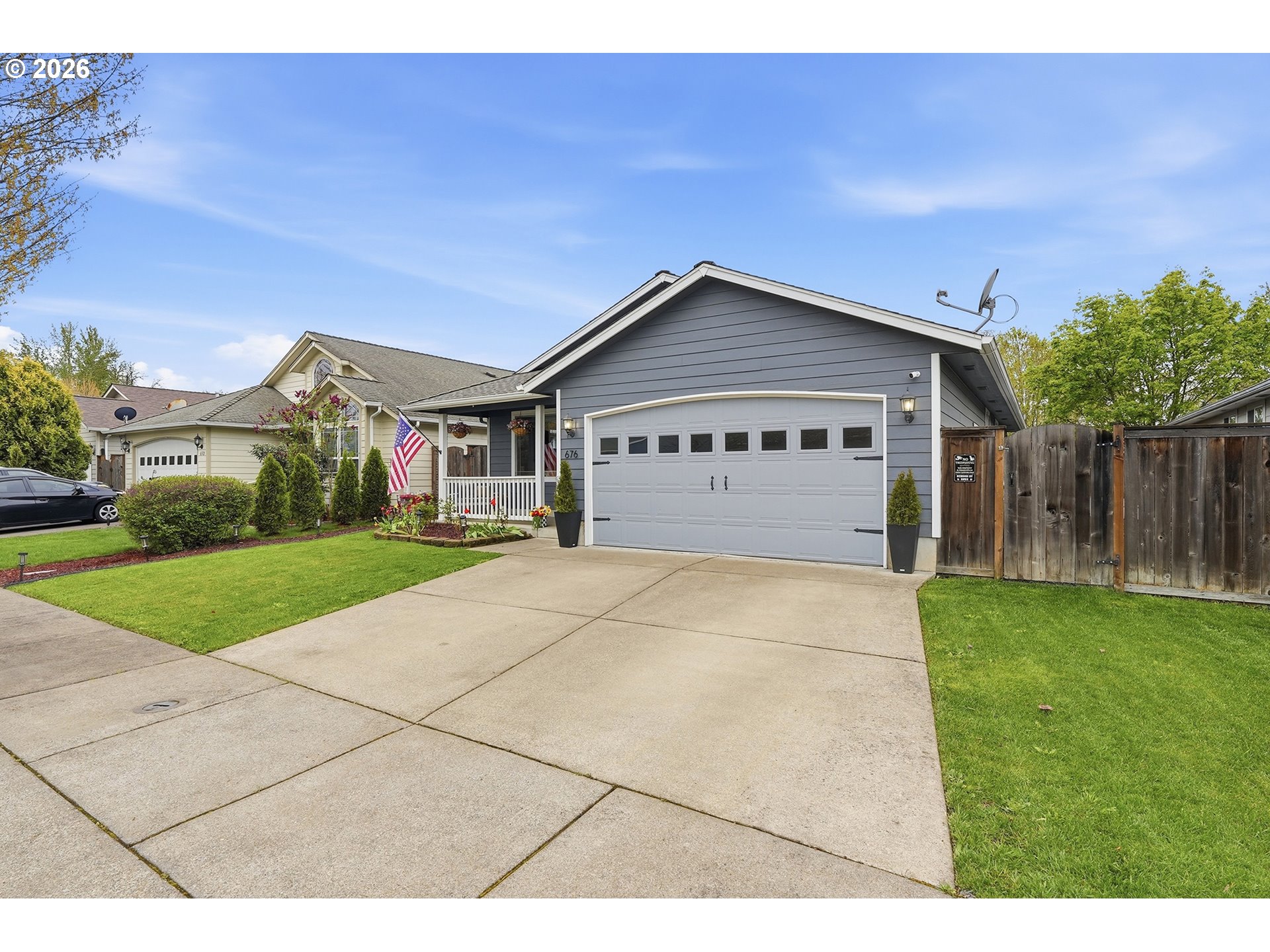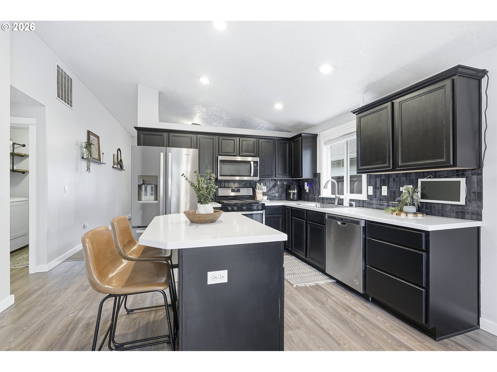 Immaculate modern ranch home set on 0.12-acre lot in North Albany, offering effortless one-level living with space to relax or entertain. This thoughtfully designed home features 3 bedrooms and 2 fully updated bathrooms, along with a spacious living room anchored by a cozy gas fireplace, and new LVP flooring installed in 2025. The kitchen is both functional and inviting, with abundant counter and cabinet space, island with storage, built-in microwave, stainless-steel appliances, gas stovetop, ambient nighttime mode lighting and more. Just off the kitchen the dining area includes a pantry and seamless access to the patio and backyard living space. Step outside to a peaceful fully fenced yard, designed for both relaxation and enjoyment-complete with a patio, custom pavers, fire pit, raised garden beds, and generous lawn perfect for games or pets.
