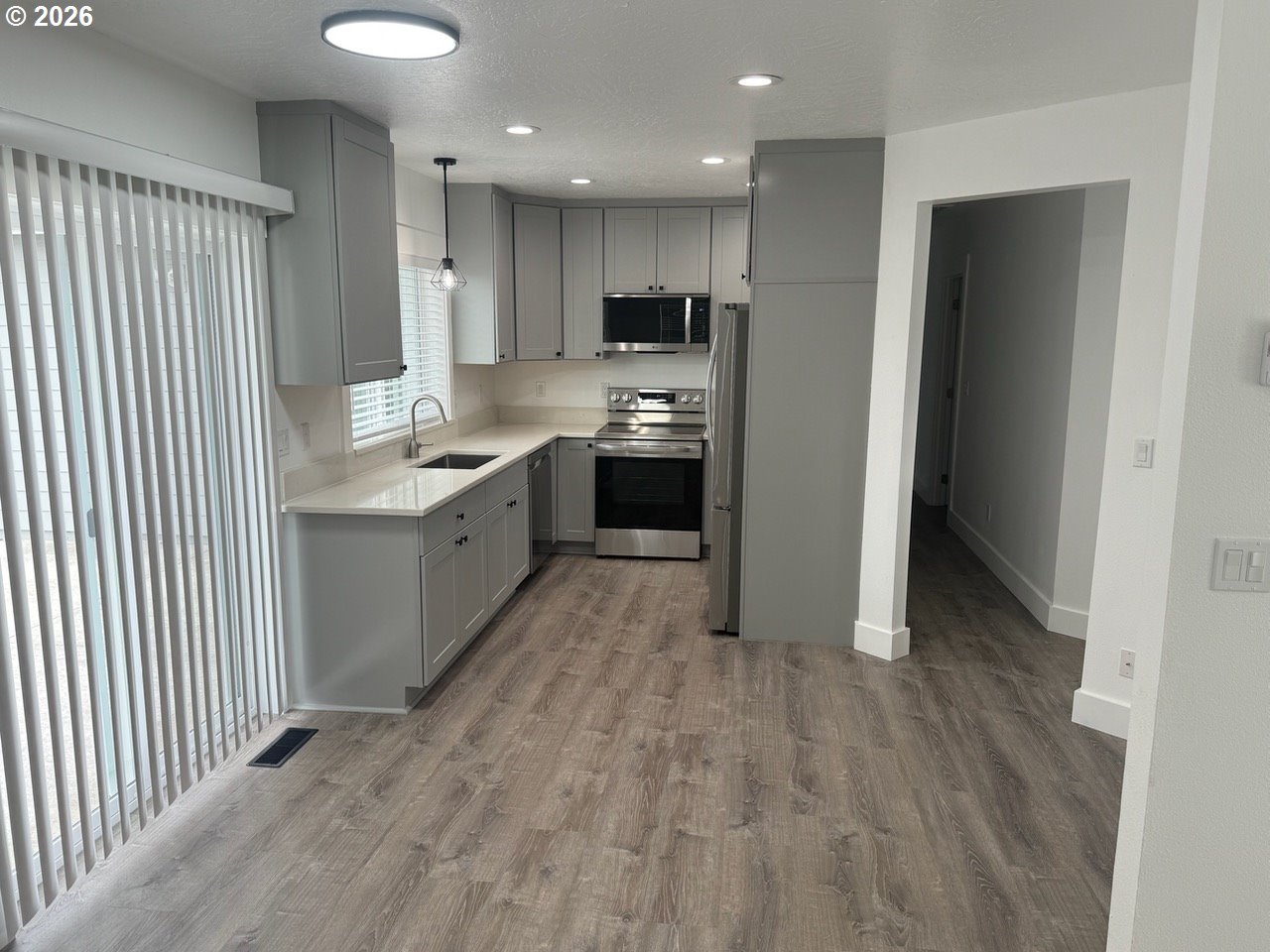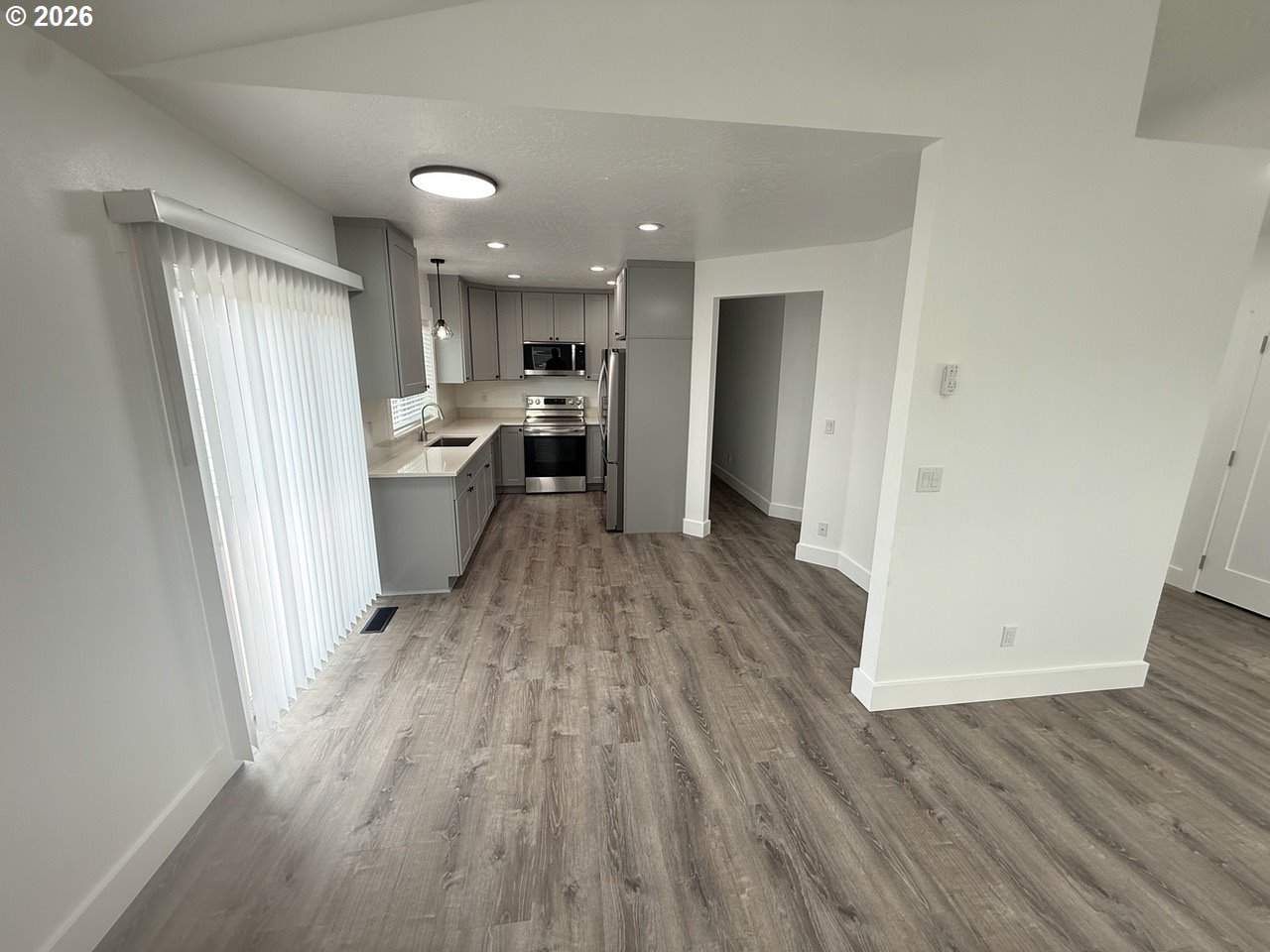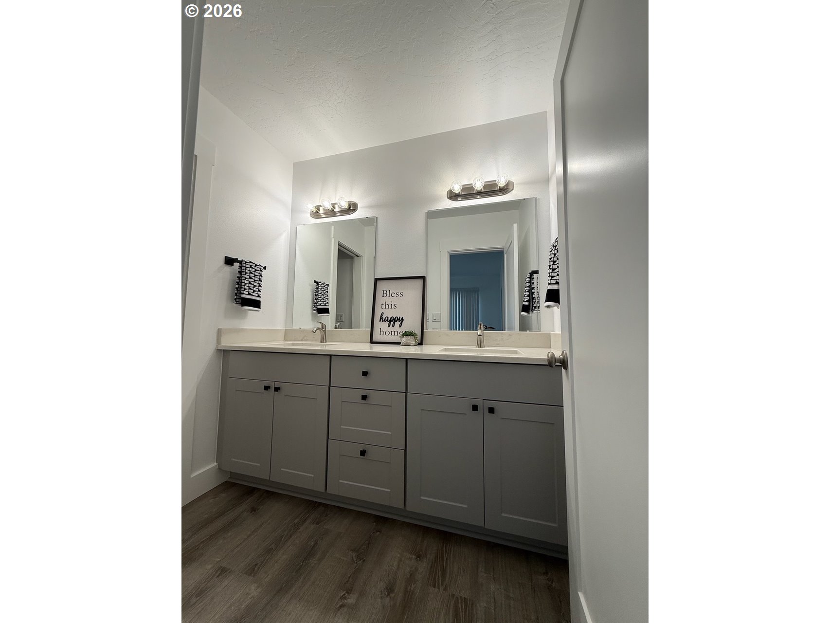 This is a beautifully completely remodeled, like new 3-bedroom, 2 bath home on a large corner lot in a quiet, well-maintained neighborhood. The home features many upgrades including new kitchen and bathroom cabinets, Quartz counter tops throughout, recessed under counter sinks, furnace, heat pump, HVAC ducting, interior & exterior painting, doors, closet doors, moldings, fixtures, toilets, tubs, tub surrounds, light fixtures, blinds, windows, attic & sub area insulation, vapor barrier, finished 2 car oversized garage, huge concrete patio in the backyard, fencing, etc. The home features an open floor plan with vaulted ceilings, ceiling fans, office/workout room, or 3rd bedroom with French doors adjacent the front entry, large primary bedroom with a custom master bath, and a 2nd bedroom that is like a second primary bedroom with a bath. This is a beautiful turn home, priced to sell.