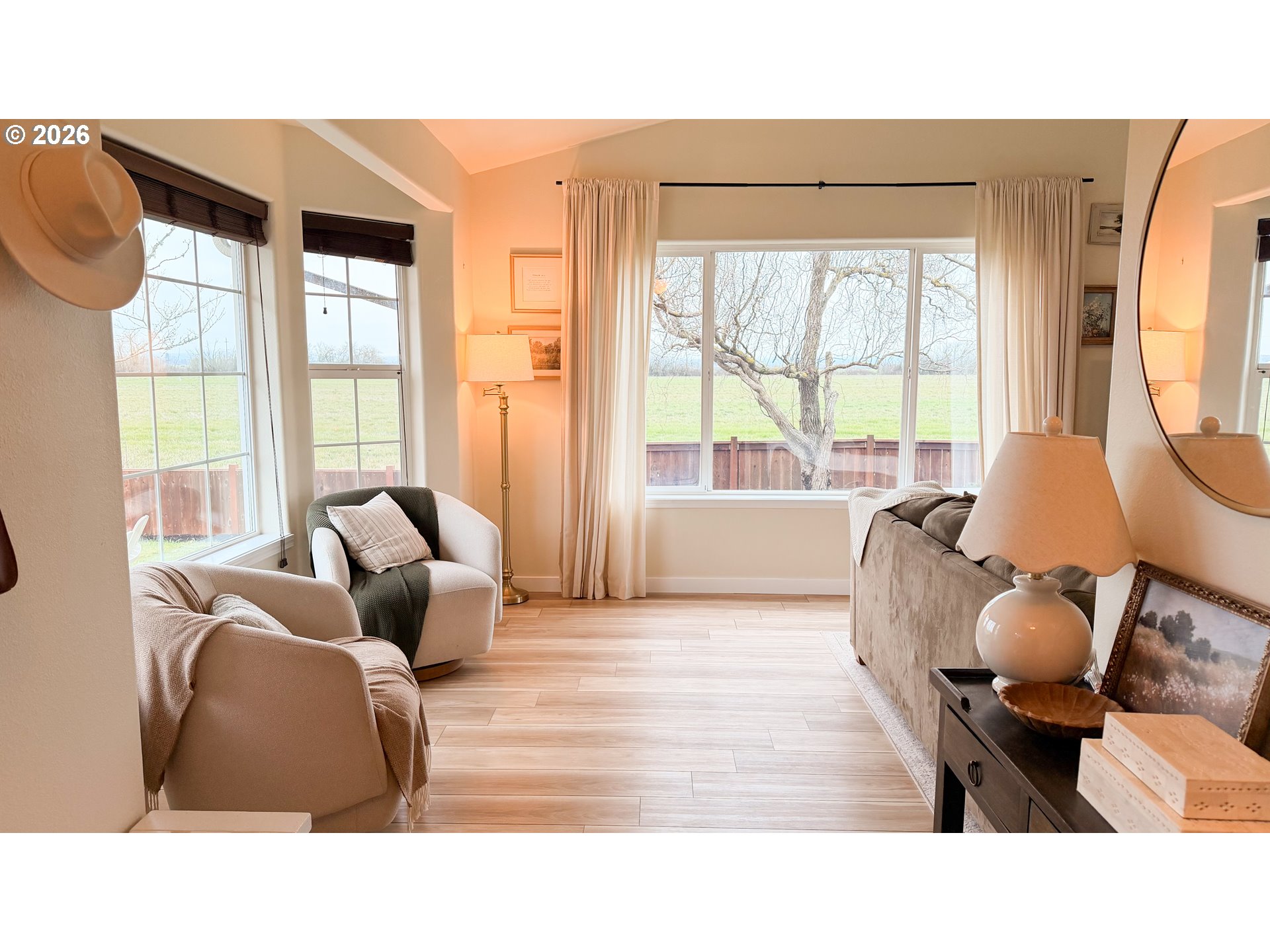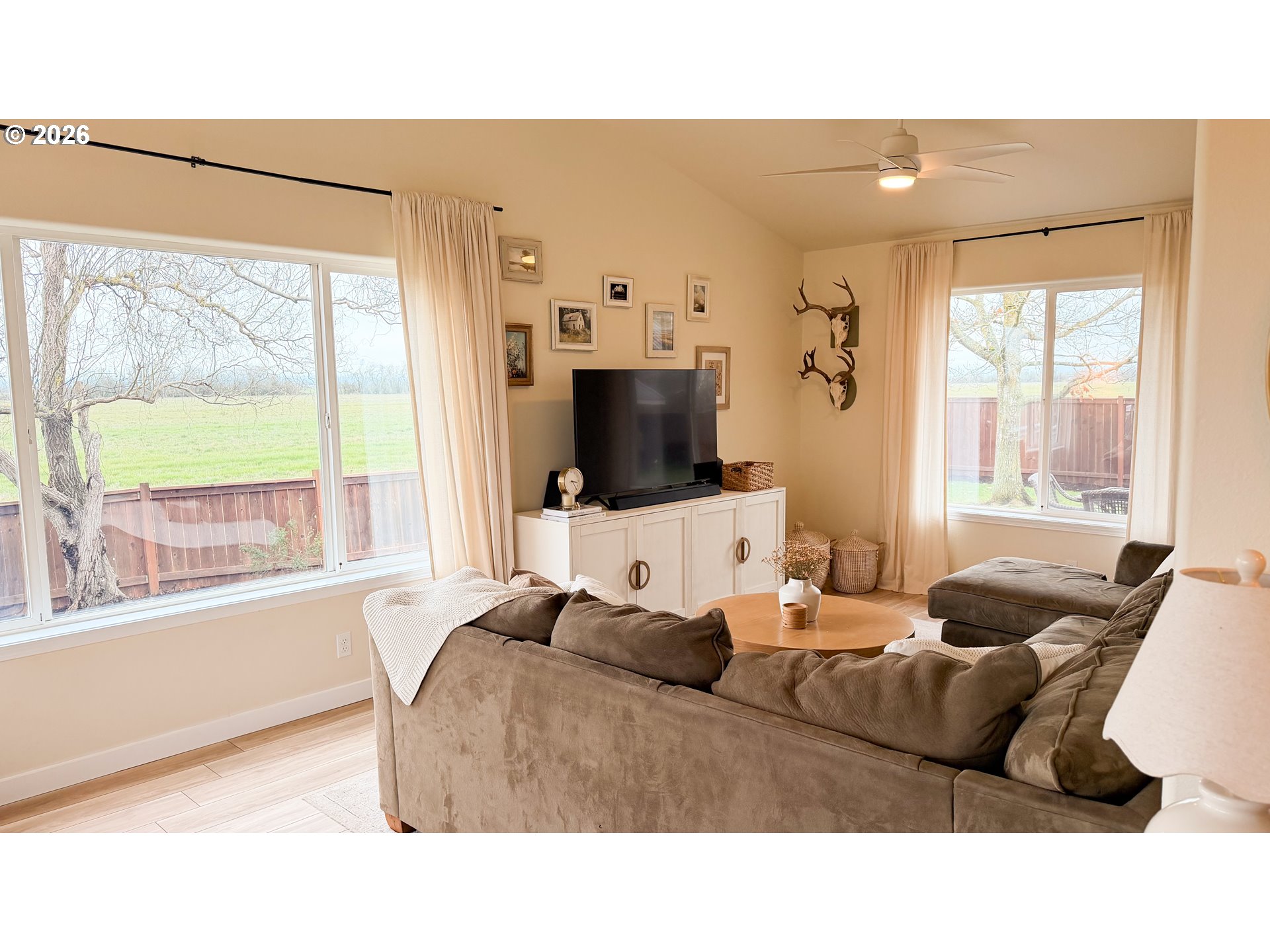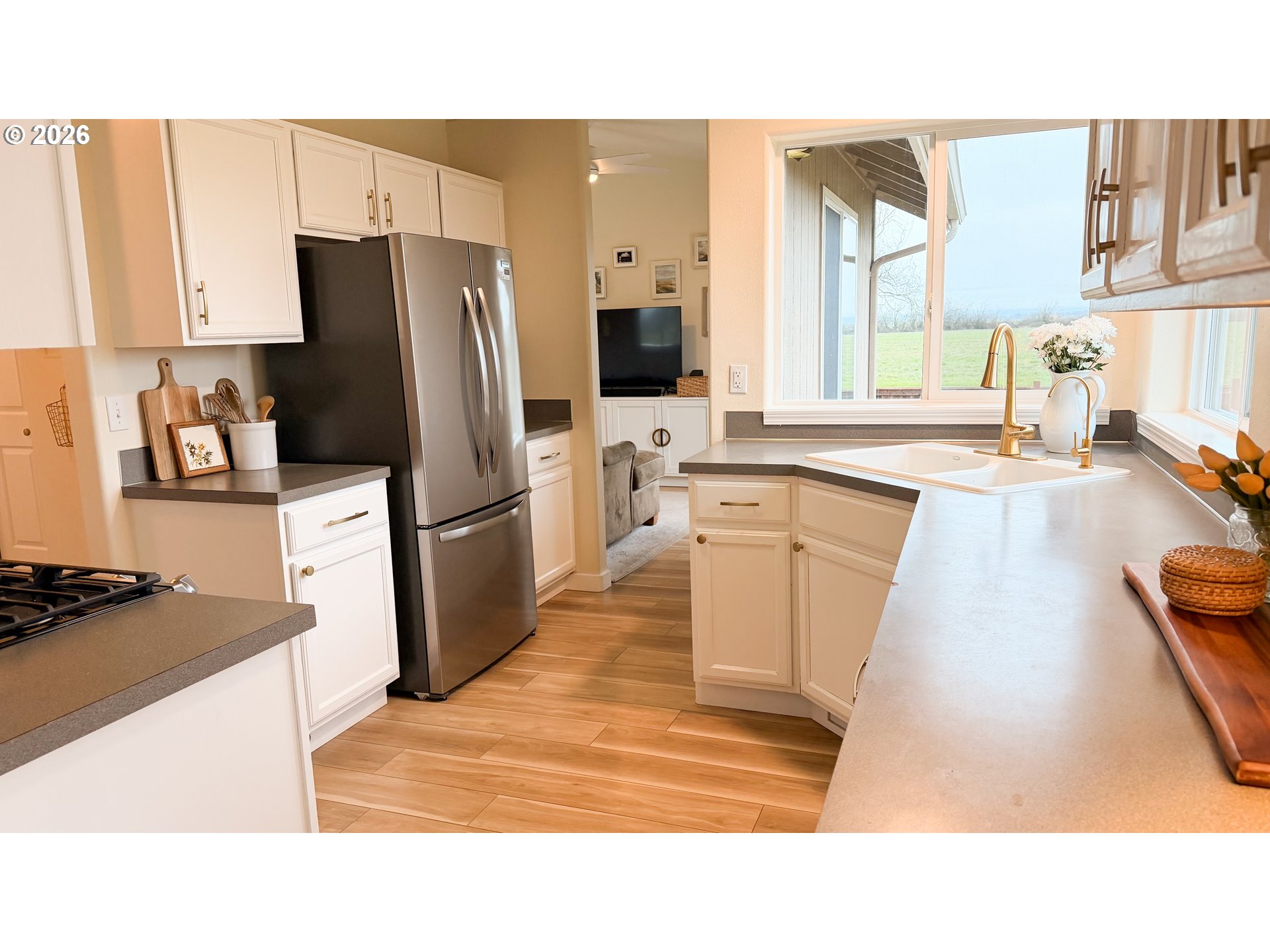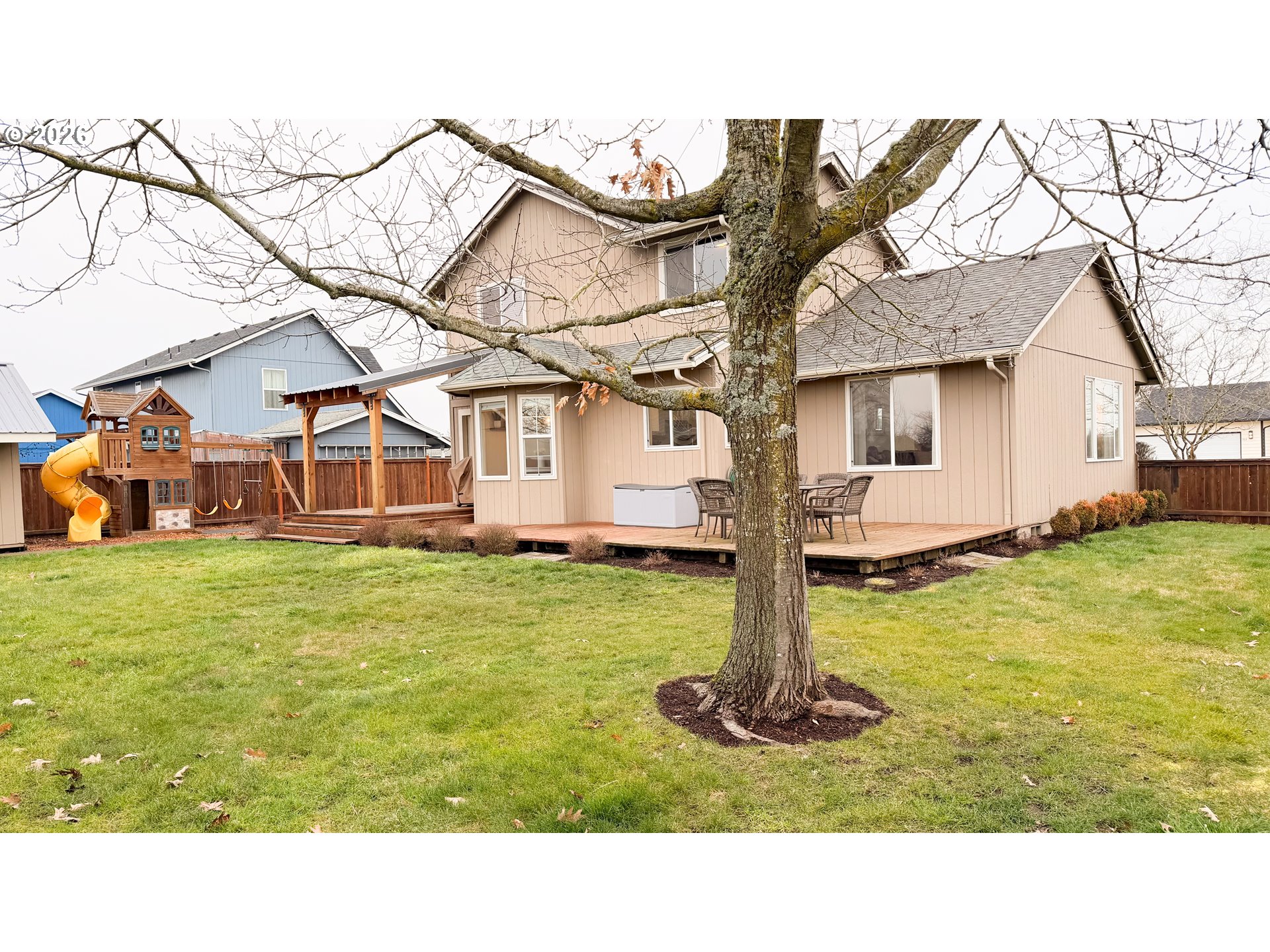 (503) 893-8874Rare opportunity in Harrisburg at the end of a dead end street. This meticulously cared for home has great privacy as it borders a farm field and has great peaceful views of the sunrise over the valley and the Coburg hills. The well appointed kitchen is perfectly centralized to the family room, dining room, and living room. Up the stairs, you will find three bedrooms and two full baths, including an ensuite primary bedroom. There is an extra half bath located on the main floor. The home is nicely updated with newer LVP flooring, a brand new furnace and AC unit last summer, a whole house water filtration system and reverse osmosis for drinking water, and a six-year-old roof. Step out back through your French doors to a beautiful timber framed cover over your back deck. Enjoy the large fenced backyard with underground sprinklers, raised beds and blueberry plants, as well as a very nice 10 x 14 stick built shed with a metal roof. Top it off with an RV parking area and everything in place for electric hook up, and you have a wonderful private family home with all of the bases covered.