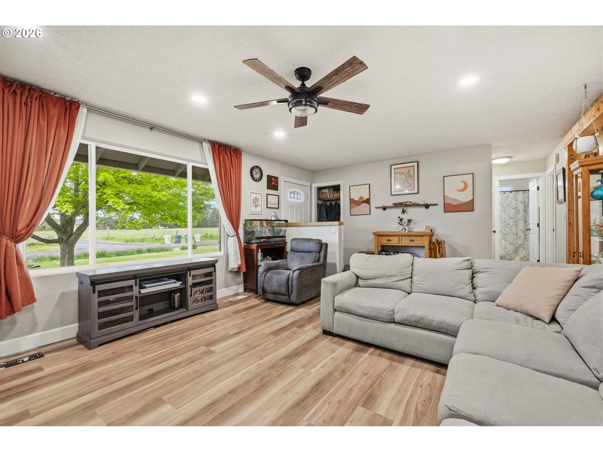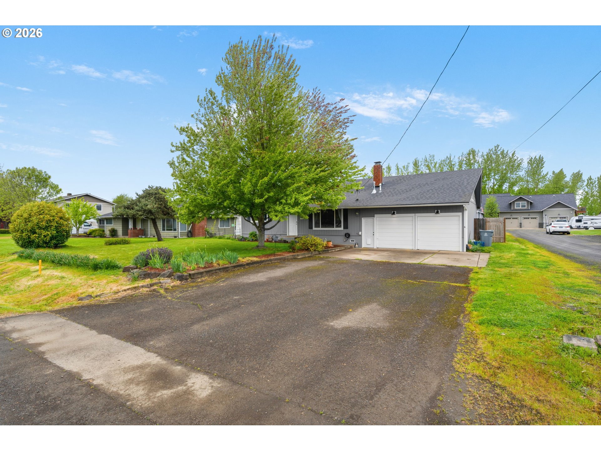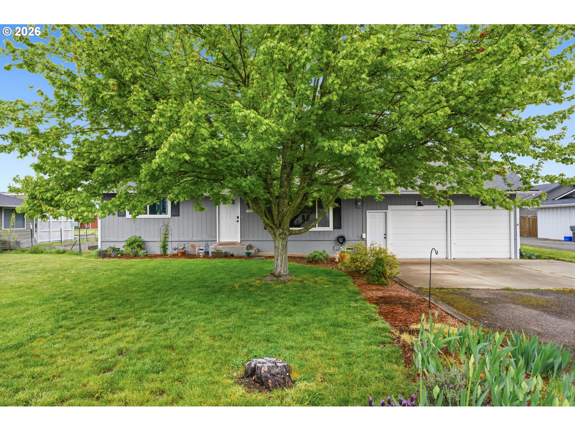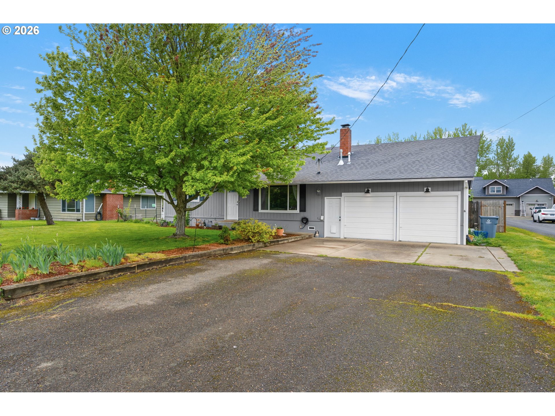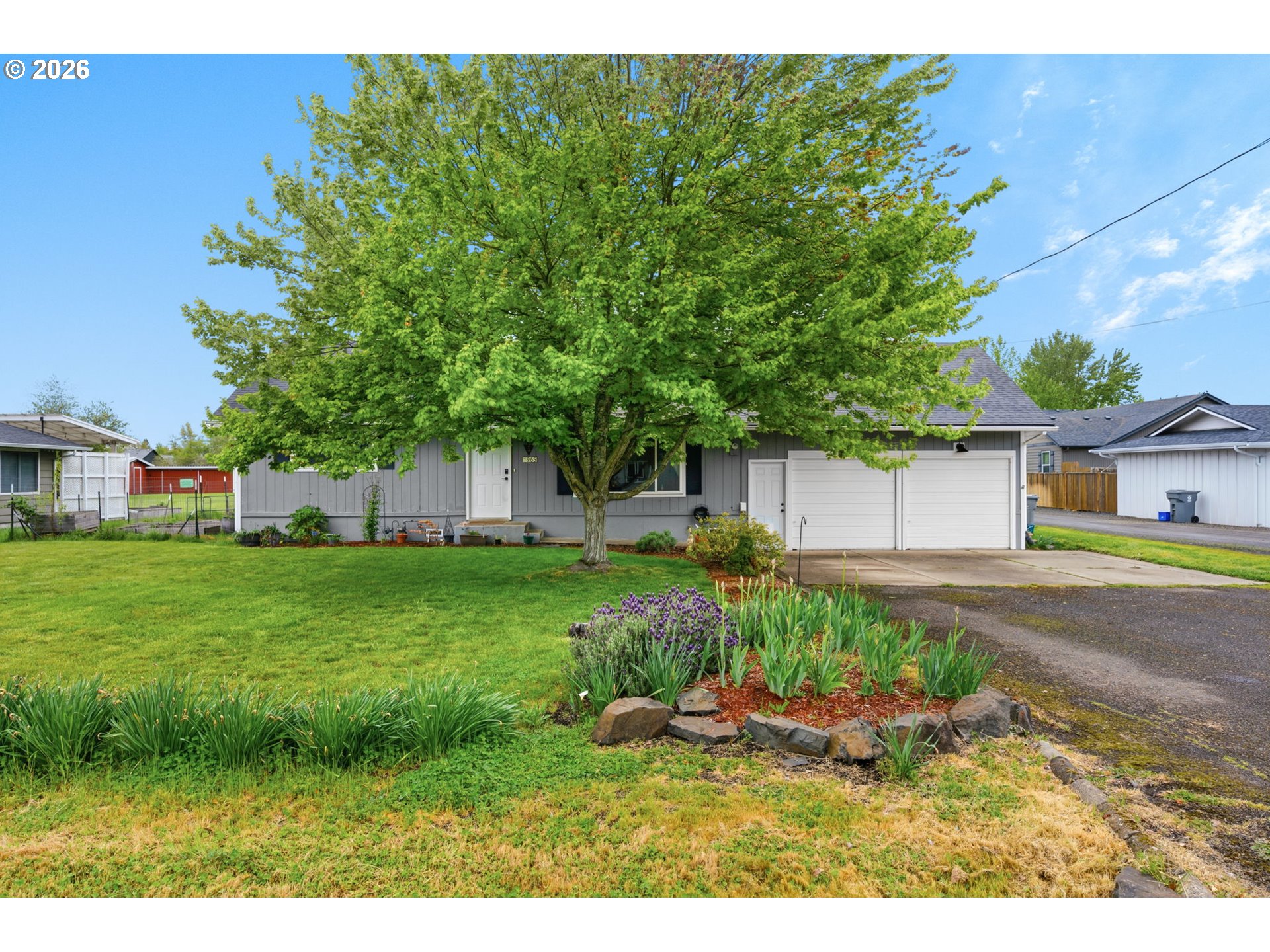 Welcome to this charming country-feel property situated on nearly a 1/4-acre lot in Harrisburg! This spacious 4-bedroom, 2-bath home offers a versatile layout with great separation of space—featuring two bedrooms upstairs with a cozy den-like ambiance, and the owner’s bed plus an additional bedroom conveniently located on the main level.Step into the inviting living room, complete with a warm fireplace highlighted by a floor-to-ceiling brick accent and a ceiling fan for year-round comfort. The kitchen is both functional and stylish, offering granite countertops, stainless steel gas appliances, tile flooring and built-in features. Enjoy peaceful views from the kitchen window while watching kids or pets play in the backyard.The dining area flows seamlessly with the kitchen and provides direct access through a sliding door to a spacious covered patio—ideal for indoor-outdoor living. The lower-level bathroom has been tastefully updated with modern finishes, including quartz countertops. The owner’s bed features a double closet and a stylish accent wall with a sliding barn door.Outside, you’ll find a large, fully fenced backyard designed for enjoyment and functionality. Host summer BBQs on the expansive covered patio, take advantage of the large storage shed and dedicated gardening area with raised beds. There’s even room for RV parking.Located just minutes from local schools, parks, and dining, this home also offers easy access to the Harrisburg Boat Ramp—perfect for enjoying time on the Willamette River.Don’t miss this opportunity to enjoy space, comfort, and a touch of country living!