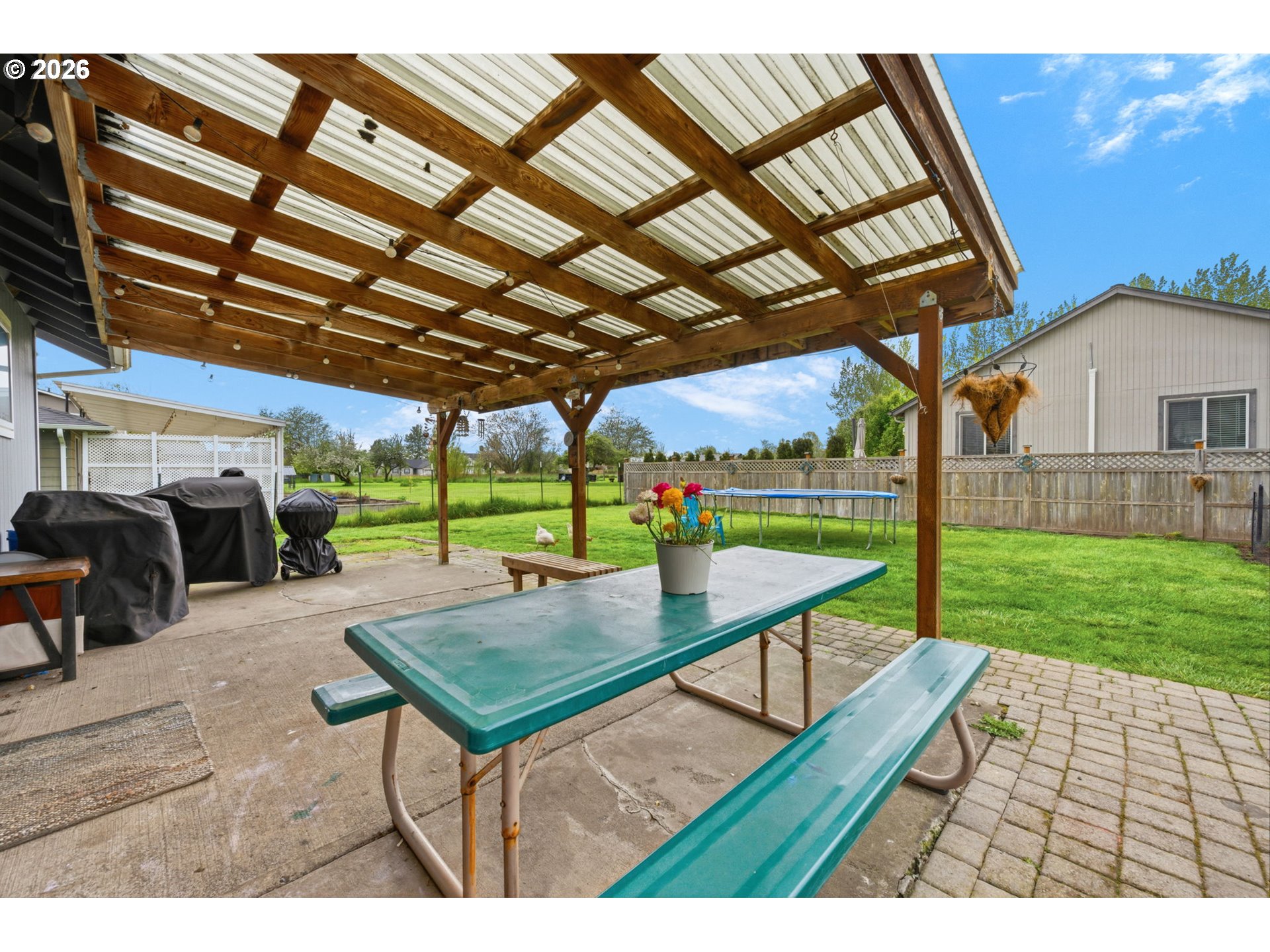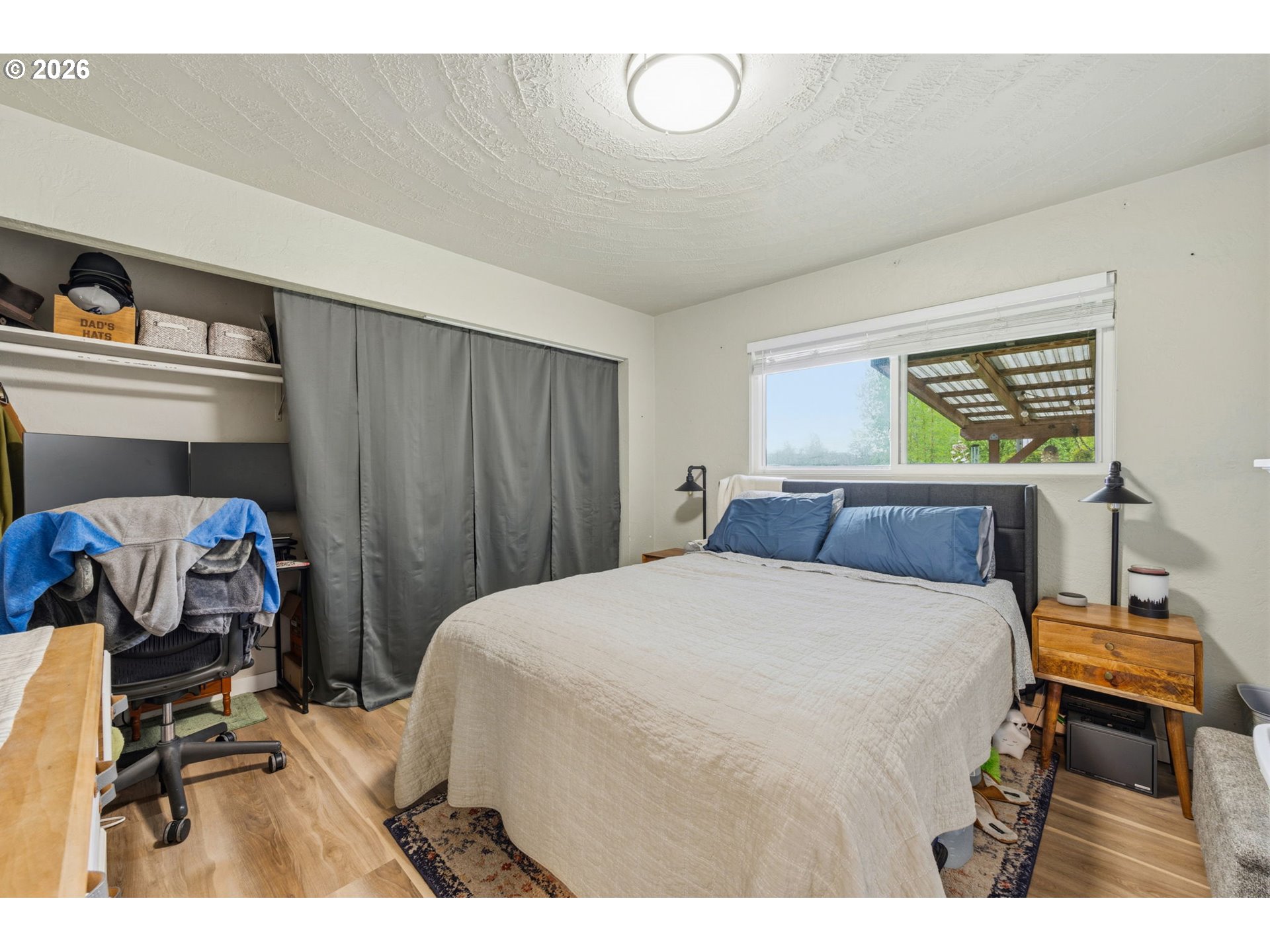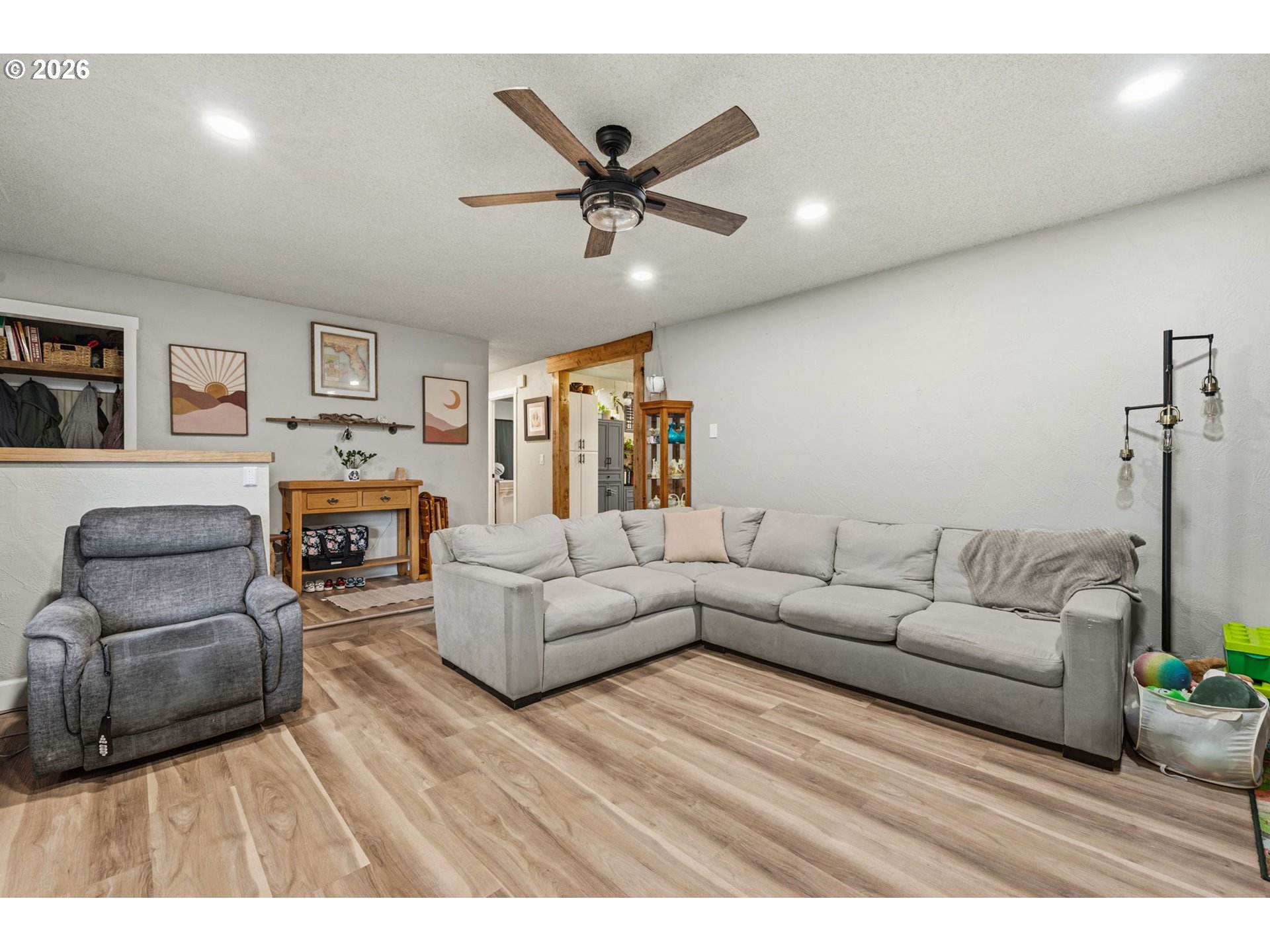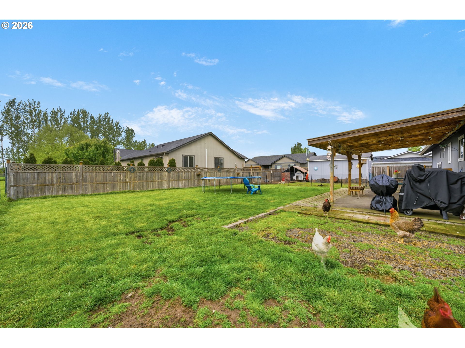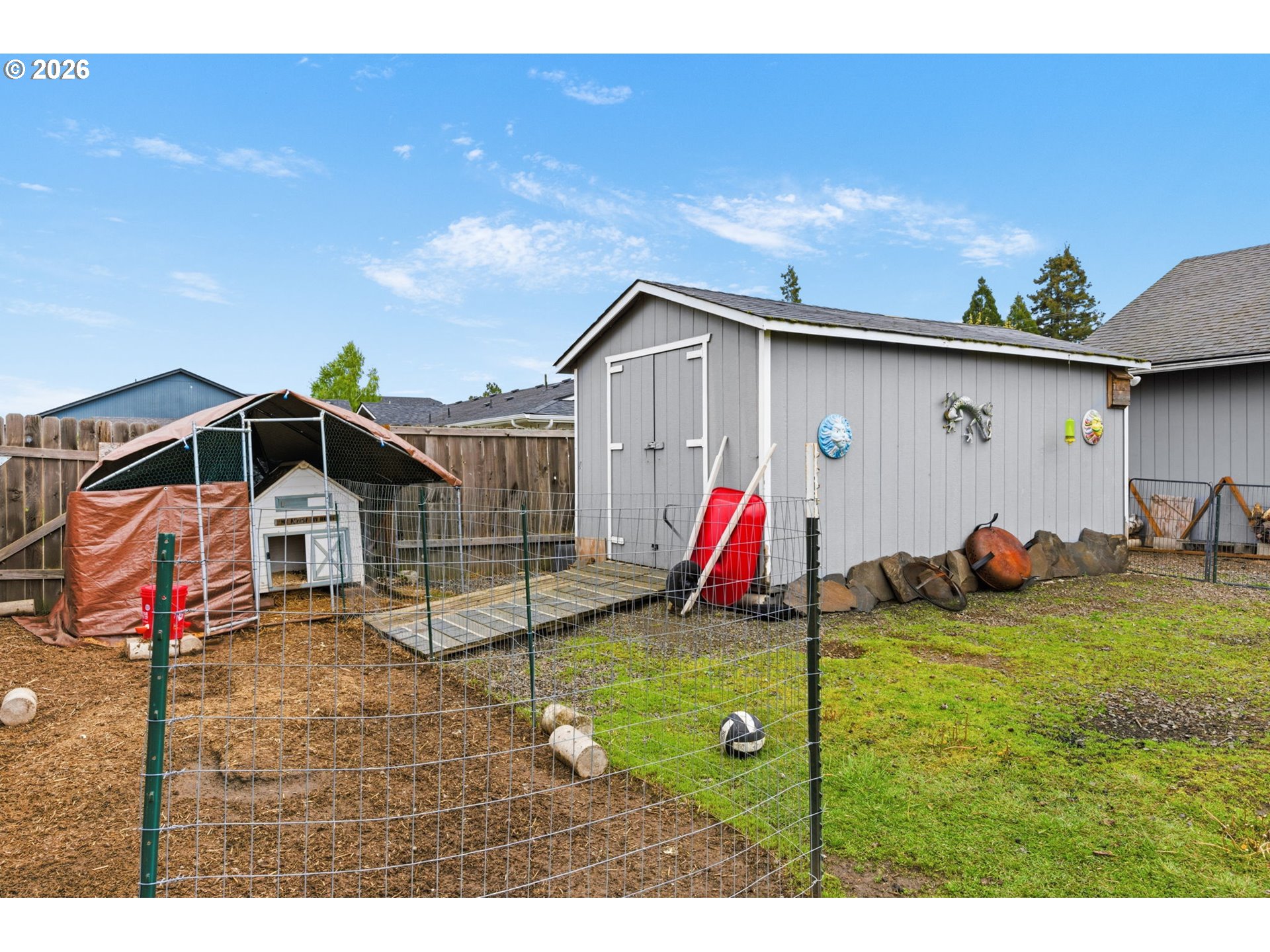Welcome to this charming country-feel property situated on nearly a 1/4-acre lot in Harrisburg! This spacious 4-bedroom, 2-bath home offers a versatile layout with great separation of space—featuring two bedrooms upstairs with a cozy den-like ambiance, and the owner’s bed plus an additional bedroom conveniently located on the main level.Step into the inviting living room, complete with a warm fireplace highlighted by a floor-to-ceiling brick accent and a ceiling fan for year-round comfort. The kitchen is both functional and stylish, offering granite countertops, stainless steel gas appliances, tile flooring and built-in features. Enjoy peaceful views from the kitchen window while watching kids or pets play in the backyard.The dining area flows seamlessly with the kitchen and provides direct access through a sliding door to a spacious covered patio—ideal for indoor-outdoor living. The lower-level bathroom has been tastefully updated with modern finishes, including quartz countertops. The owner’s bed features a double closet and a stylish accent wall with a sliding barn door.Outside, you’ll find a large, fully fenced backyard designed for enjoyment and functionality. Host summer BBQs on the expansive covered patio, take advantage of the large storage shed and dedicated gardening area with raised beds. There’s even room for RV parking.Located just minutes from local schools, parks, and dining, this home also offers easy access to the Harrisburg Boat Ramp—perfect for enjoying time on the Willamette River.Don’t miss this opportunity to enjoy space, comfort, and a touch of country living!