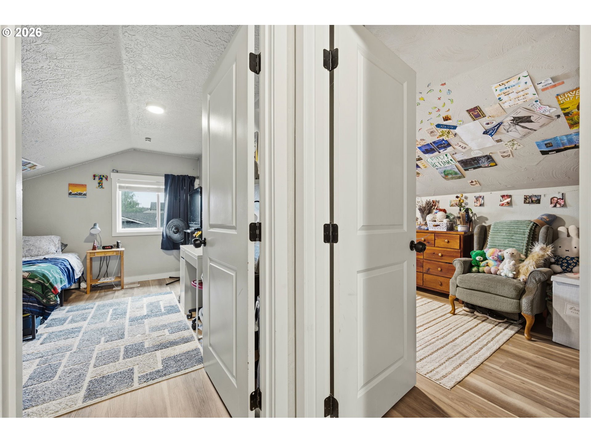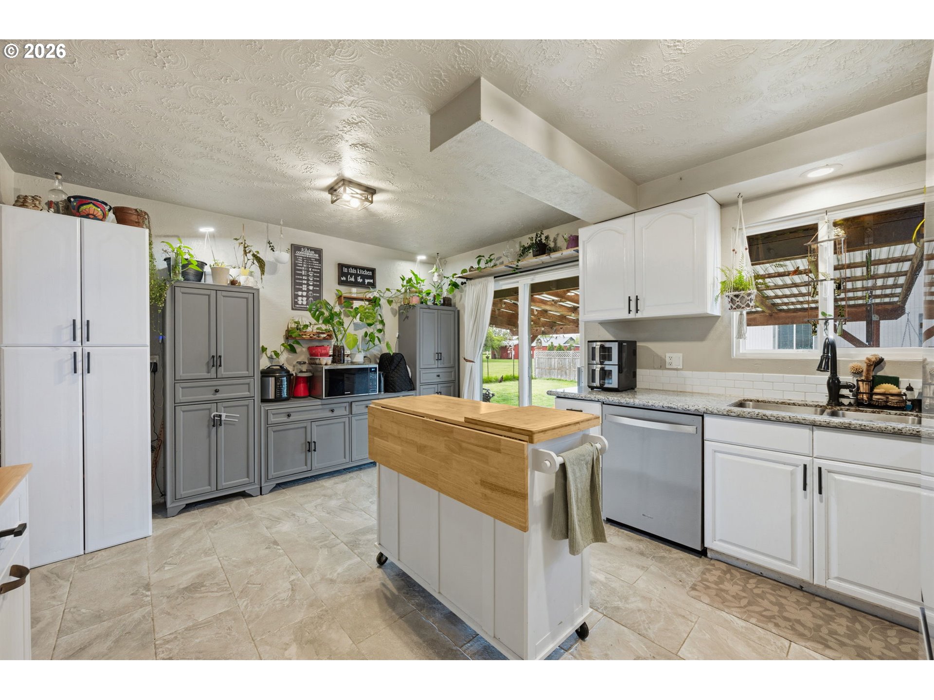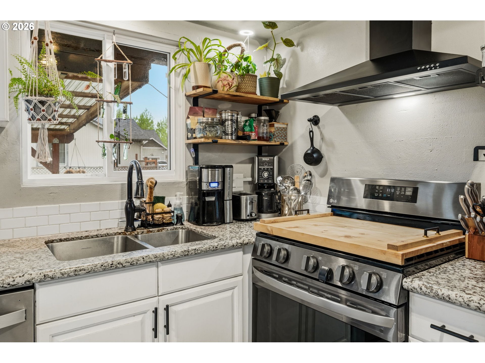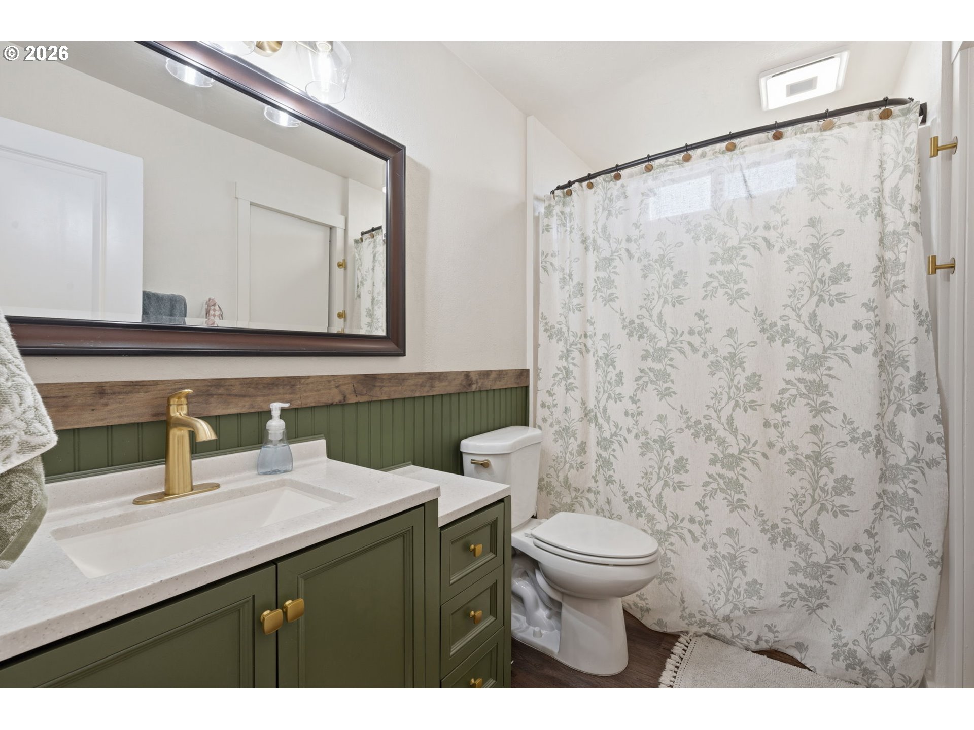 Welcome to this charming country-feel property situated on nearly a 1/4-acre lot in Harrisburg! This spacious 4-bedroom, 2-bath home offers a versatile layout with great separation of space—featuring two bedrooms upstairs with a cozy den-like ambiance, and the owner’s bed plus an additional bedroom conveniently located on the main level.Step into the inviting living room, complete with a warm fireplace highlighted by a floor-to-ceiling brick accent and a ceiling fan for year-round comfort. The kitchen is both functional and stylish, offering granite countertops, stainless steel gas appliances, tile flooring and built-in features. Enjoy peaceful views from the kitchen window while watching kids or pets play in the backyard.The dining area flows seamlessly with the kitchen and provides direct access through a sliding door to a spacious covered patio—ideal for indoor-outdoor living. The lower-level bathroom has been tastefully updated with modern finishes, including quartz countertops. The owner’s bed features a double closet and a stylish accent wall with a sliding barn door.Outside, you’ll find a large, fully fenced backyard designed for enjoyment and functionality. Host summer BBQs on the expansive covered patio, take advantage of the large storage shed and dedicated gardening area with raised beds. There’s even room for RV parking.Located just minutes from local schools, parks, and dining, this home also offers easy access to the Harrisburg Boat Ramp—perfect for enjoying time on the Willamette River.Don’t miss this opportunity to enjoy space, comfort, and a touch of country living!