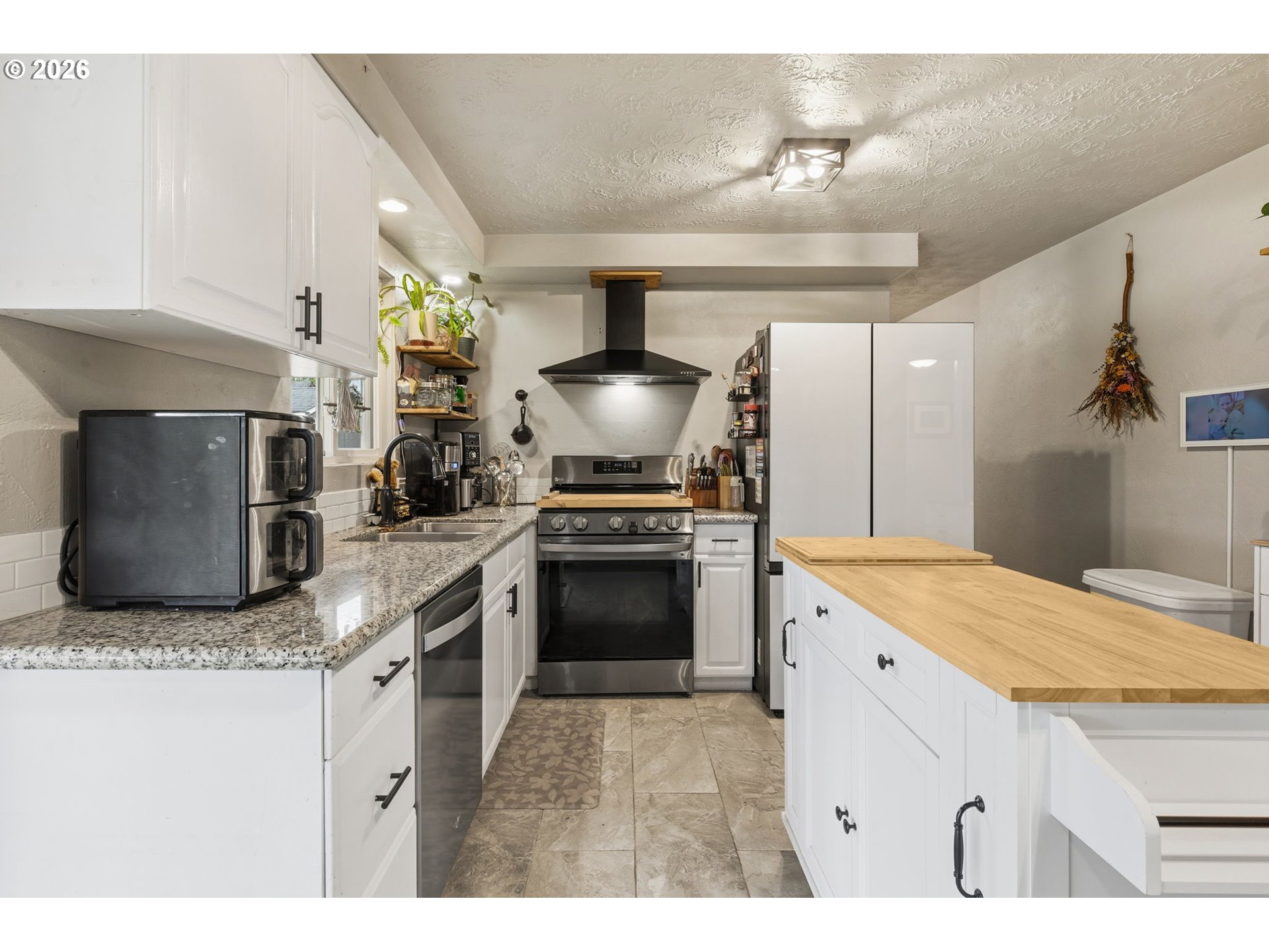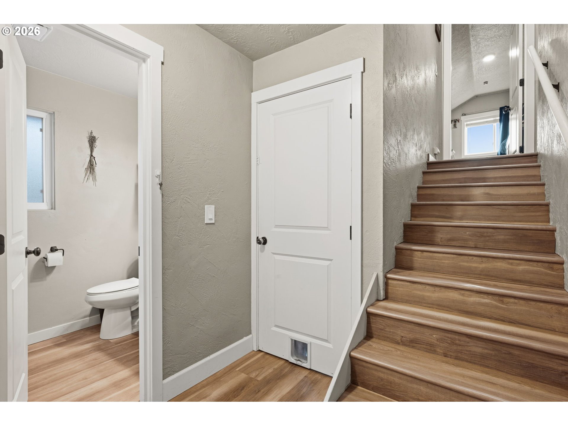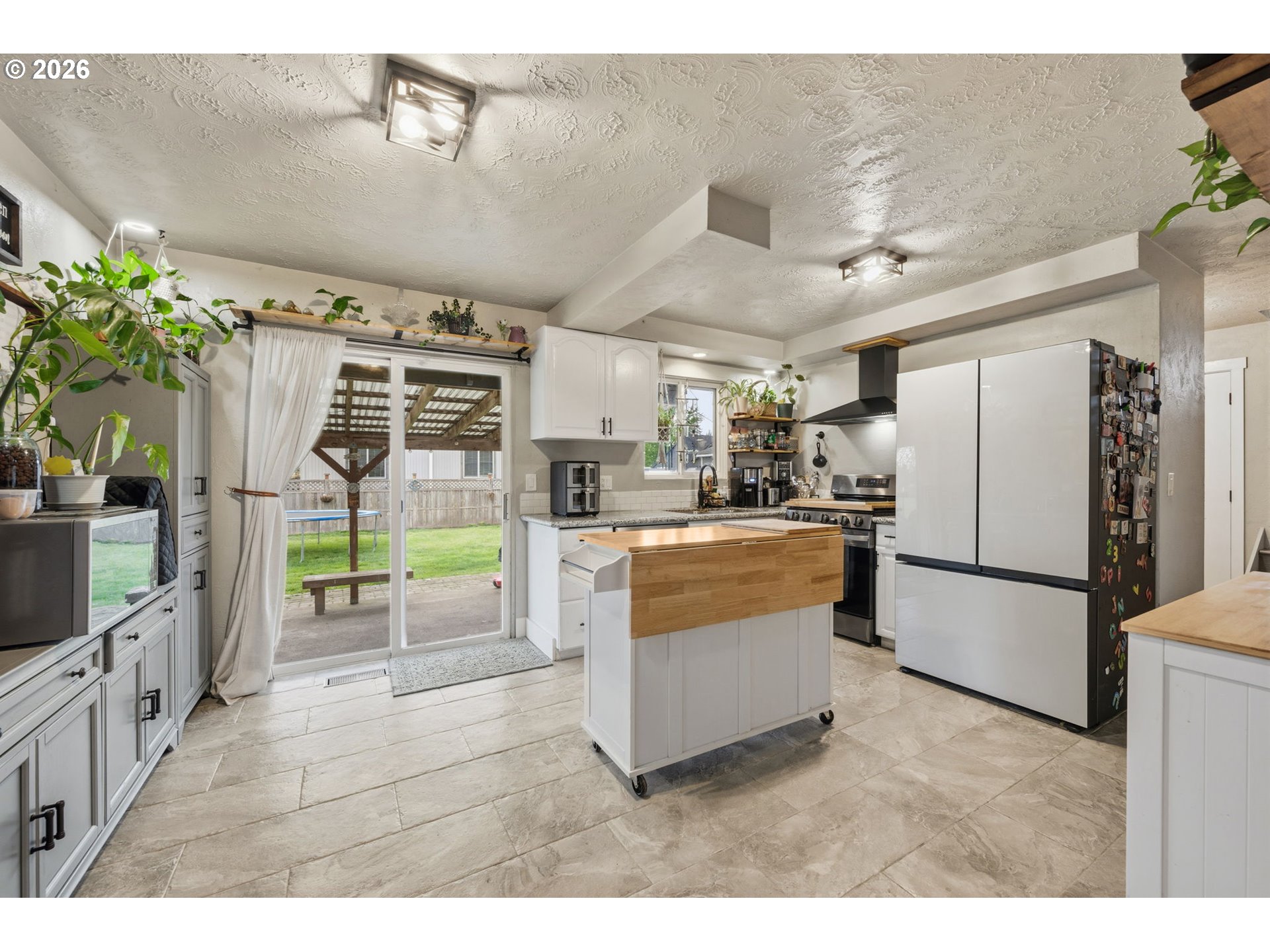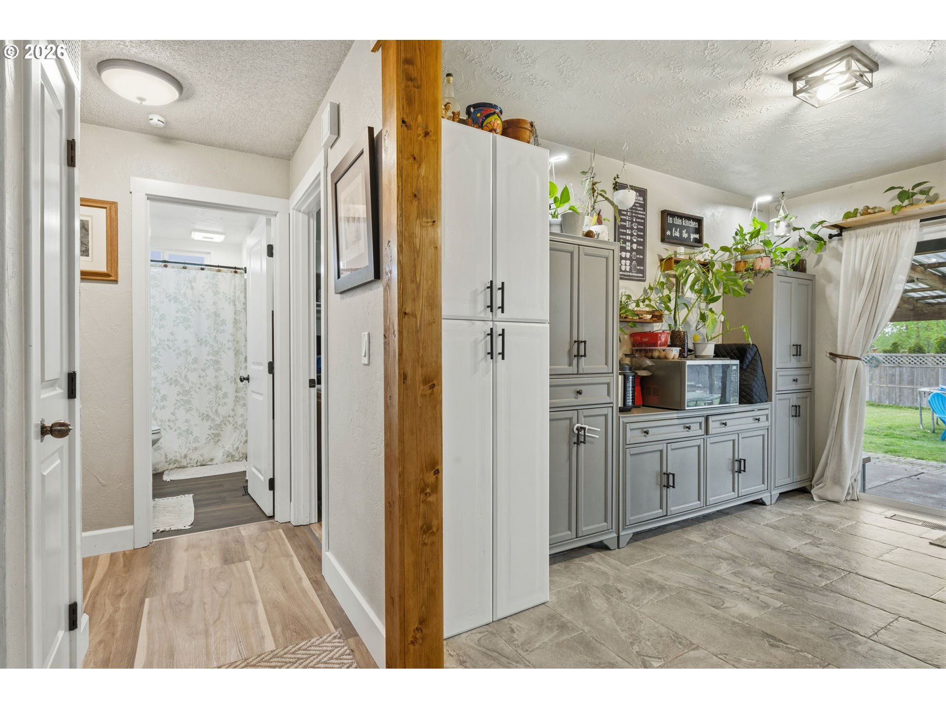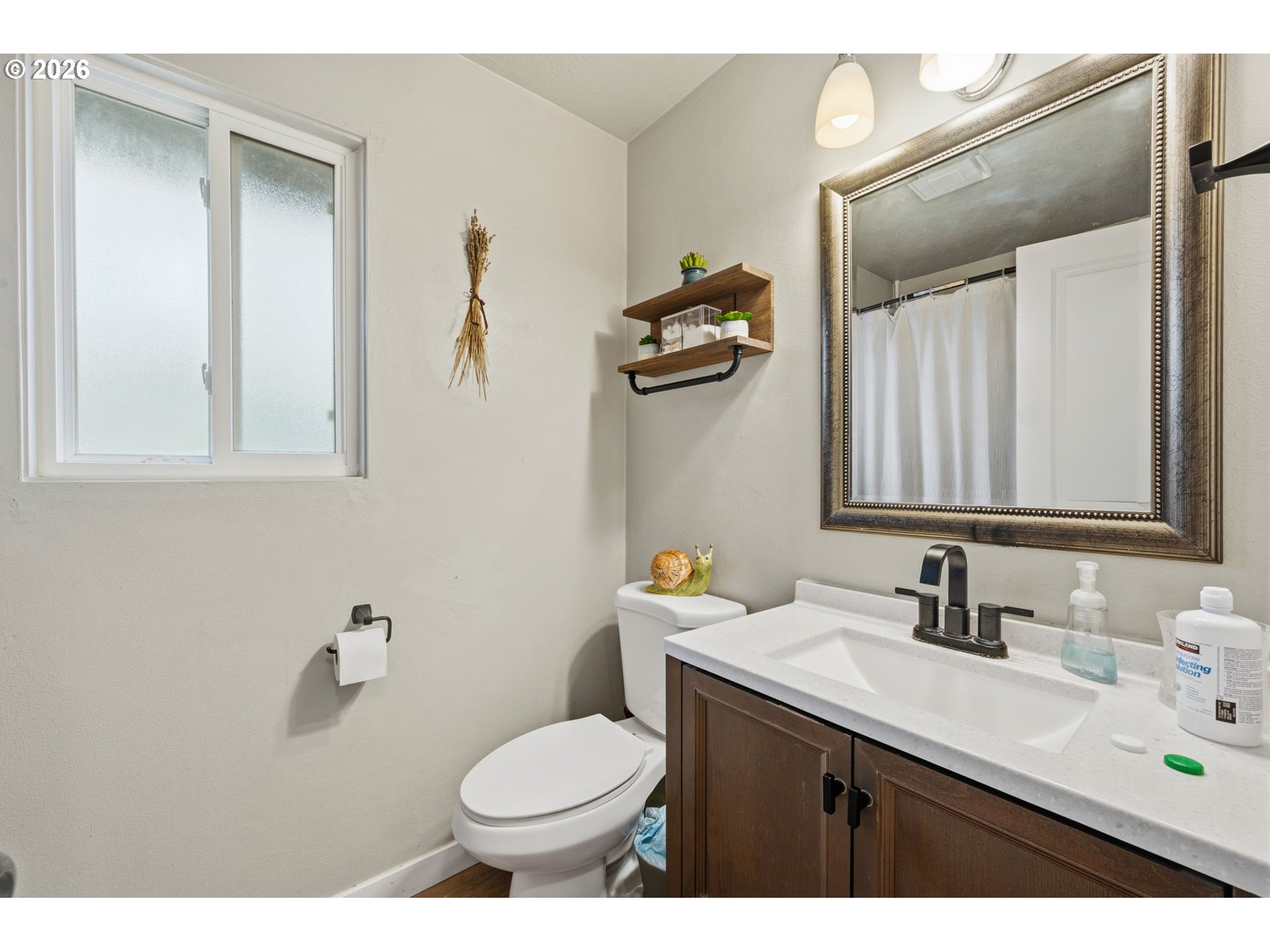 Welcome to this charming country-feel property situated on nearly a 1/4-acre lot in Harrisburg! This spacious 4-bedroom, 2-bath home offers a versatile layout with great separation of space—featuring two bedrooms upstairs with a cozy den-like ambiance, and the owner’s bed plus an additional bedroom conveniently located on the main level.Step into the inviting living room, complete with a warm fireplace highlighted by a floor-to-ceiling brick accent and a ceiling fan for year-round comfort. The kitchen is both functional and stylish, offering granite countertops, stainless steel gas appliances, tile flooring and built-in features. Enjoy peaceful views from the kitchen window while watching kids or pets play in the backyard.The dining area flows seamlessly with the kitchen and provides direct access through a sliding door to a spacious covered patio—ideal for indoor-outdoor living. The lower-level bathroom has been tastefully updated with modern finishes, including quartz countertops. The owner’s bed features a double closet and a stylish accent wall with a sliding barn door.Outside, you’ll find a large, fully fenced backyard designed for enjoyment and functionality. Host summer BBQs on the expansive covered patio, take advantage of the large storage shed and dedicated gardening area with raised beds. There’s even room for RV parking.Located just minutes from local schools, parks, and dining, this home also offers easy access to the Harrisburg Boat Ramp—perfect for enjoying time on the Willamette River.Don’t miss this opportunity to enjoy space, comfort, and a touch of country living!