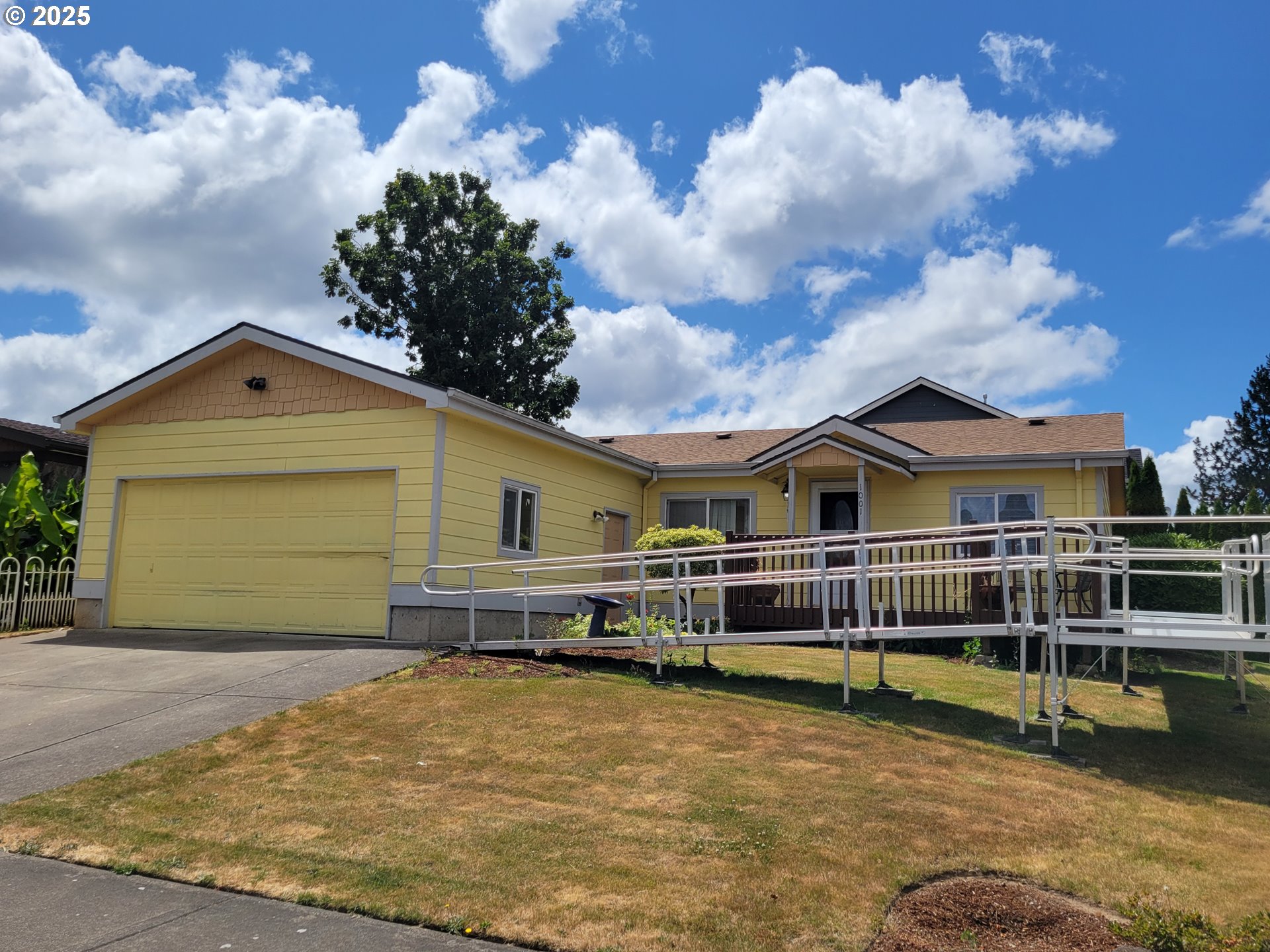 (503) 893-8874Easy One Level Living with extra accessible features like a ramp and a walk-in tub. Open & Functional Floorplan with a Primary bd & bath. Open Kitchen has an Island and dining area with a slider to a deck. Corner lot in a low traffic loop subdivision. 2c garage offers storage and a work bench. Enjoy all the fun things to do in the area of many parks, golf, wineries, aquatic center, Shopping Outlets, Tulip Festival and More. Low taxes and affordable. Small town feel with all the amenities. Solid, New posts & tiedowns, New roof in last 2-3 yrs, 2016 Furnace & AC, just needs a little paint & tlc.