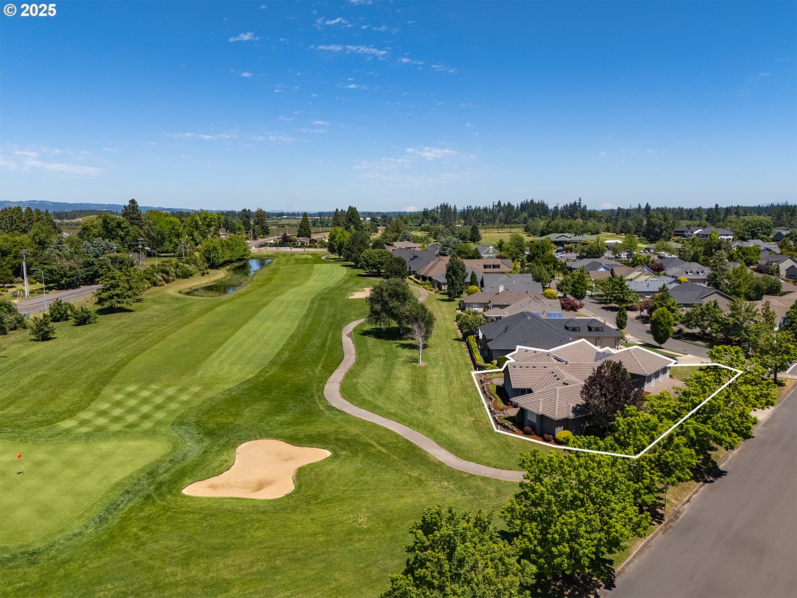 Significant price drop! Ready for your personal touches LOCATION..LOCATION...LOCATION! WONDERFUL HOME, COME AND SEE WHY!! Set against the backdrop of the 10th green at the OGA Golf Course, this meticulously maintained 3,370 sq ft custom-designed home offers panoramic fairway views and timeless style. Featuring 3 spacious bedrooms and 2.1 bathrooms, this 1-level residence is filled with natural light, soaring vaulted ceilings, and wide hallways that create an open, airy atmosphere ideal for both everyday living and entertaining.The expansive primary suite includes dual walk-in closets, double vanities, a jetted tub, and separate shower. Enjoy stunning views from nearly every room, enhanced by custom window treatments that provide privacy while preserving your view of the course. An oversized 3-car garage features built-in cabinetry, a workbench, and abundant attic storage. The oversized pantry is conveniently located down the hall, and the large laundry room offers even more built-in storage. Beautifully situated within the Tukwila community, this home is convenient to the OGA clubhouse, pool, tennis courts, and walking paths. Enjoy resort-style amenities with a convenient commute to both Portland and Salem. A rare opportunity to experience spacious, 1-level living with exceptional golf course views in one of Woodburn’s most desirable neighborhoods.