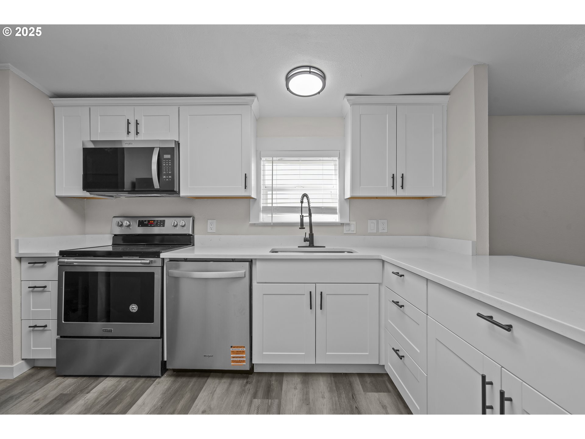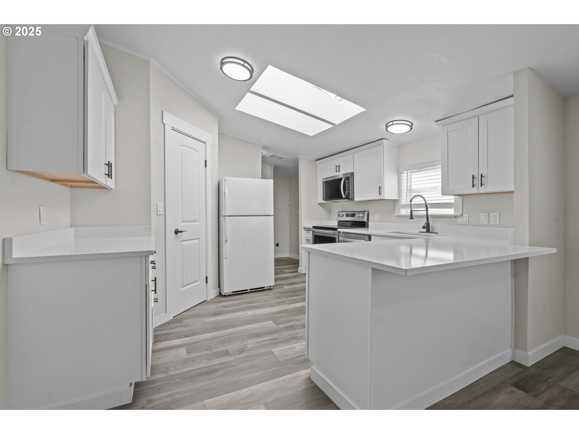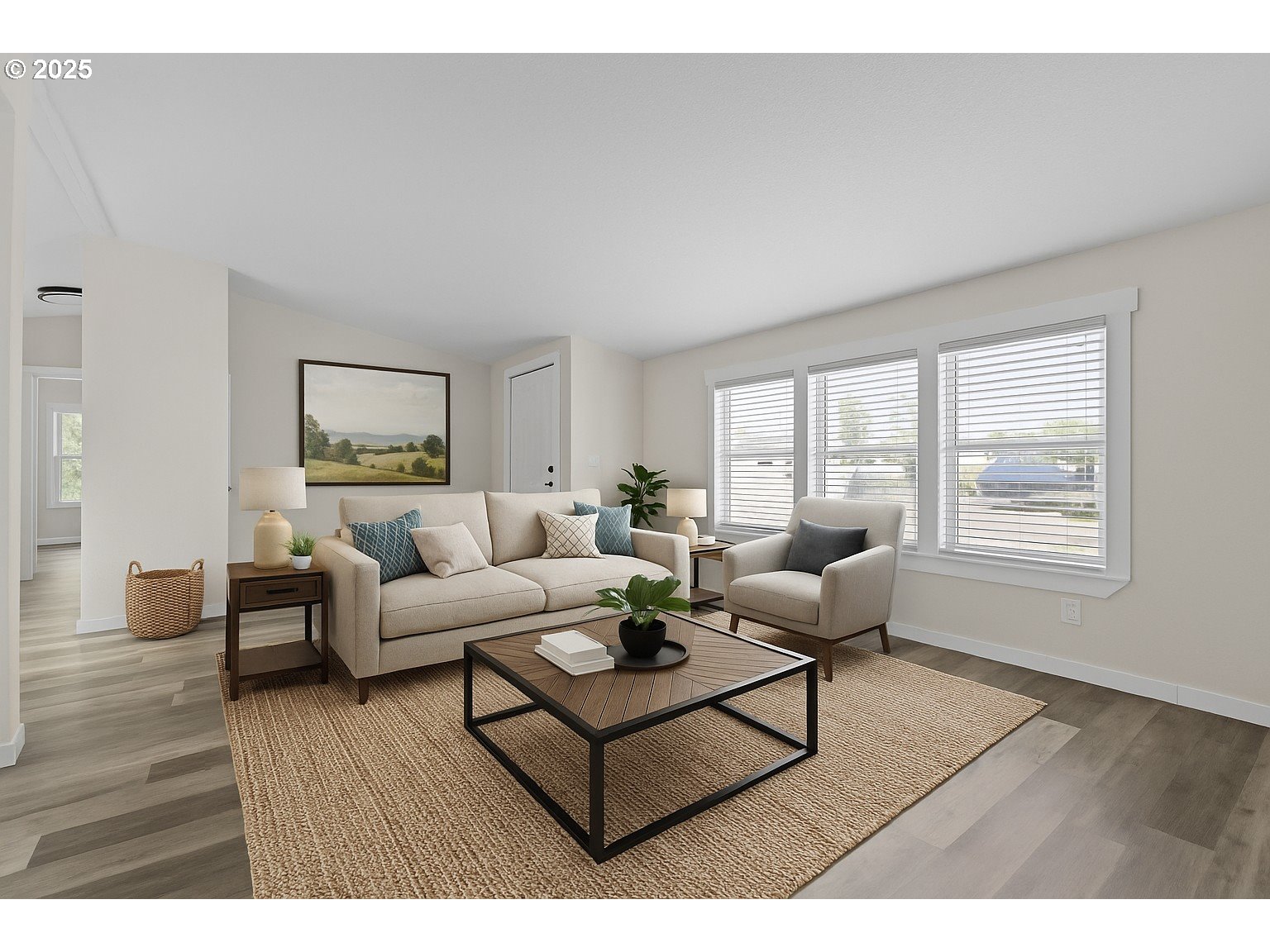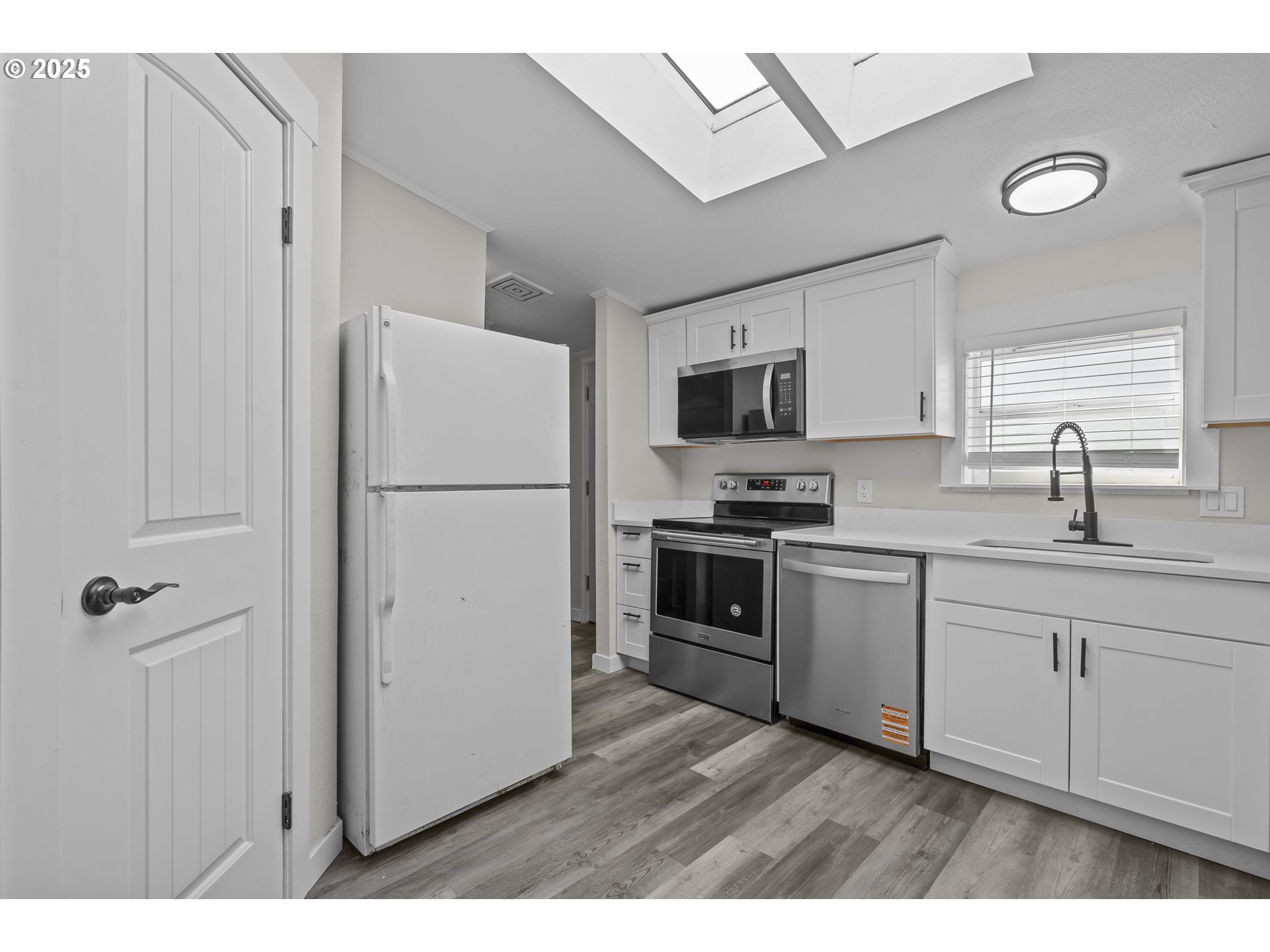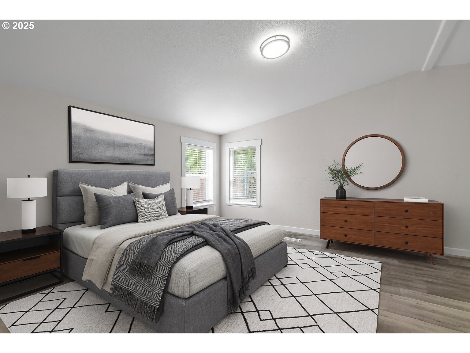 This remodeled 3 bed/2 bath home features an open floor plan with vaulted ceilings in the living room, creating a bright & spacious feel. Enjoy a brand-new kitchen with updated cabinets & countertops, fully remodeled bathrooms & new flooring throughout. Fresh interior & exterior paint, new siding, roof, HVAC system, furnace, water heater. Large 2-car garage, fully fenced front & backyard, and a private deck perfect for BBQs and entertaining. Conveniently located near shopping, bus lines, and I-5 access.