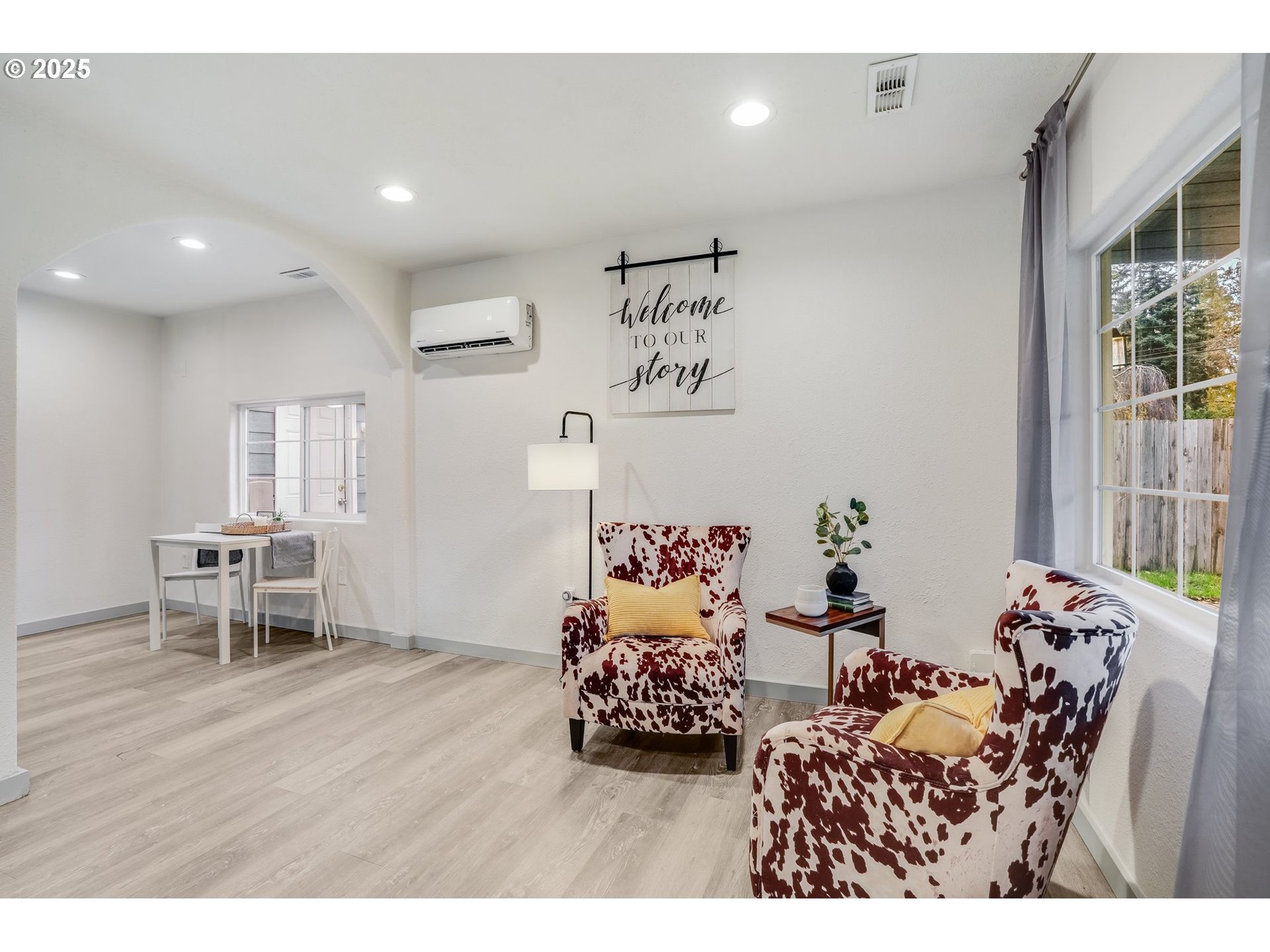 Charming 1910 cottage moments from downtown Silverton with a spacious fenced backyard and attached garage. This 3bed/1bath home features laminate flooring, carpeted primary, tile bath, and a ductless mini-split for efficient comfort. Stainless appliances, painted cabinets, and Formica counters add practical updates. Convenient to shops, dining, parks, and local amenities. Set on a corner lot, this home offers a comfortable layout that makes excellent use of its 788 sq ft. The living area connects smoothly to the kitchen, providing functional flow for daily living. The tile-floored bathroom brings a clean, classic touch, while the primary bedroom’s carpeting adds comfort underfoot. Laminate flooring throughout the main areas supports easy care and a cohesive look. The large fenced backyard provides room for outdoor enjoyment, gardening, pets, or play space. The left-side fence includes a wide vehicle-size gate that offers additional parking potential, ideal for a trailer, small RV, or equipment storage. The attached garage adds sheltered parking, extra storage, or workspace flexibility. Silverton Hospital, local schools, services, and daily conveniences along with quick access to downtown shopping and dining, neighborhood parks, and community amenities. With practical updates and charming 1910 character, this home offers an inviting blend of historic appeal and modern function.