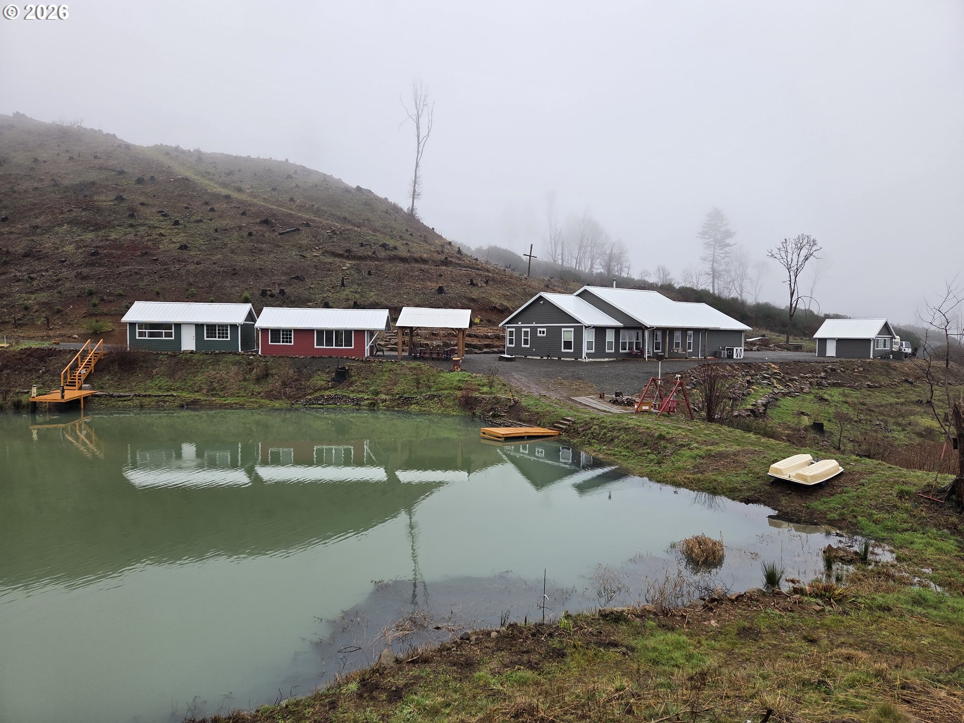 (503) 893-8874A once in a lifetime opportunity! 19.28 acres mountain paradise w/1 acre stocked pond, Shooting Range, attached 3 car garage, separate 20’x20’ shop w/garage door and 2 detached 376 sqft office/muli purpose buildings both w/2 rooms and Kitchenettes and full baths, 3 large wood storage sheds, all structures w/metal roofs and custom built since 2020. Home features 9’ Ceiling heights, 8’ interior doors, ceiling crown molding, quarts CT, all kitchen appliances, emergency backup generator, wood stove all included. 2 RV Hookup stations with one having sewage clean-out. Property has spectacular views, many walking/ATV trails to enjoy, raised garden beds,40 fruit trees, fiber internet, custom log covered pavilion made from logs on the property. Additional property details are in Documents. Please do not wait, this one will go fast!