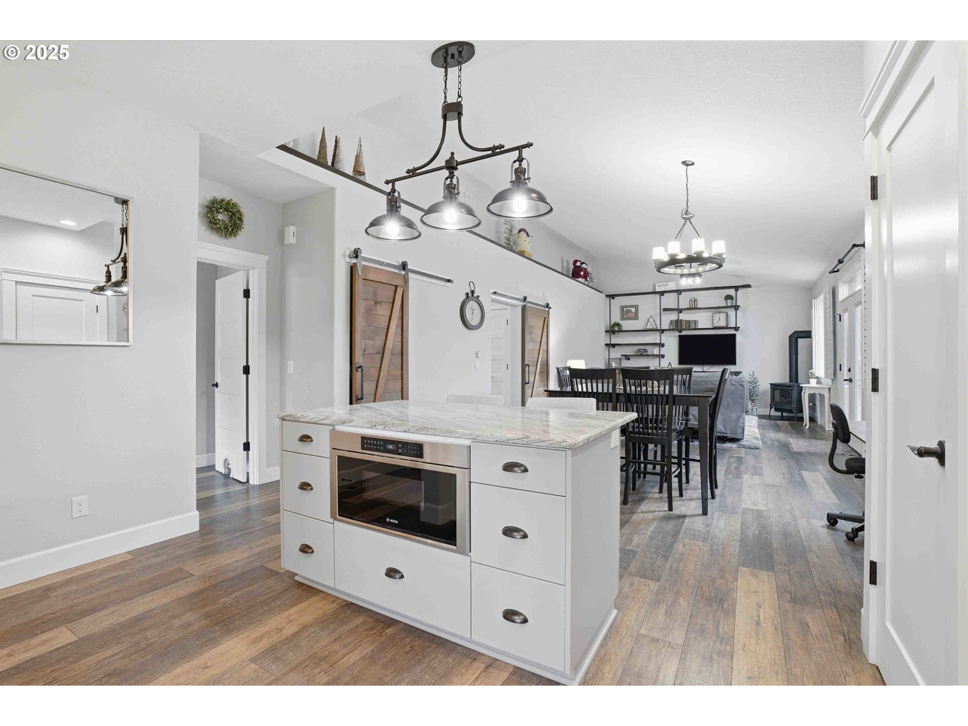(503) 893-8874Fabulous features & upgrades in this beautiful one-level like new home with oversized 2 car garage & RV parking on corner lot in desirable South Salem location!Not your average cookie cutter, complete with high end, luxury appliances and finishes and an open floorplan. From the spacious covered front porch you enter through a beautiful solid wood door into entry with LVP flooring. Opening to a gorgeous kitchen with Wolfe gas cooktop, pot-filler, Bosch DW, double convection ovens w/side swing doors, micro drawer, beautiful granite, eating bar and pantry. Kitchen/Dining opens to vaulted Great room with custom wood slab shelving a unique, one of a kind feature! The primary suite has slab granite counter with dual sinks, walk in tile shower with rain head, pebble floor & walk in closet. Beautiful barn doors separate the other bedroom wing and laundry. Bathrooms have granite slabs, undermount sink. Large Laundry with sink, slab counters and large linen/storage closet. Off the dining room, through french doors to side deck, minimal yard area, easy care!Oversized 835 sq ft garage (21/11 x 28/0) has 8' high doors plus work area, room to park boat or trailer! Extra garage space with large stainless steel sink and counter area, perfect for canning, cleaning and crafting! The built in workbench gives you plenty of work and storage space. Corner lot with plenty of parking on dead end side street and extra gravel area for your RV and guests.Great South Salem location off Liberty, easy I-5 access on Kuebler!