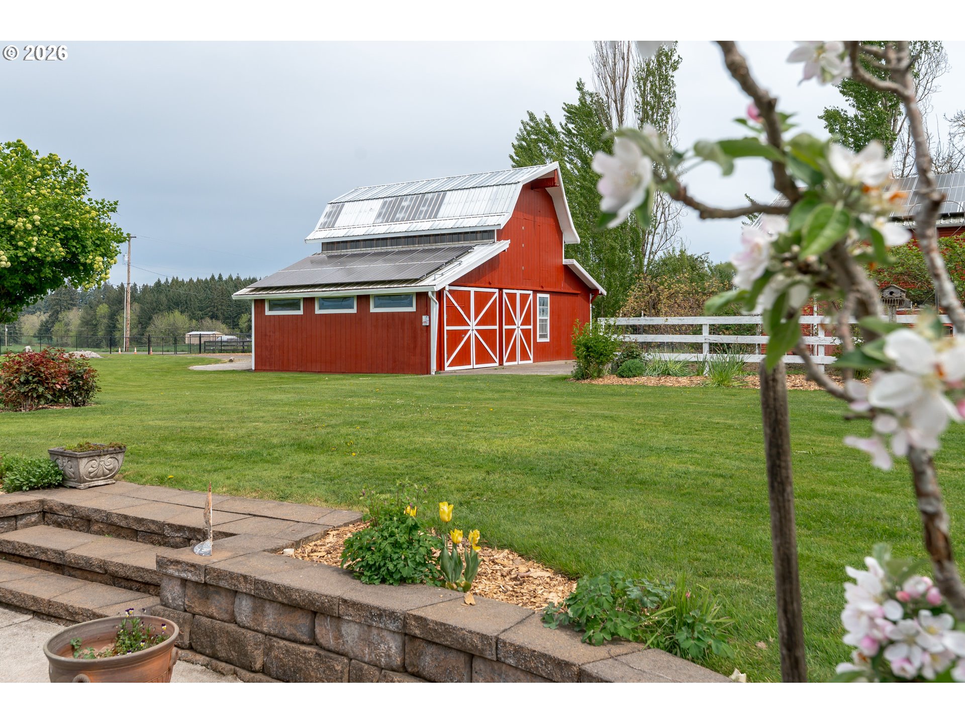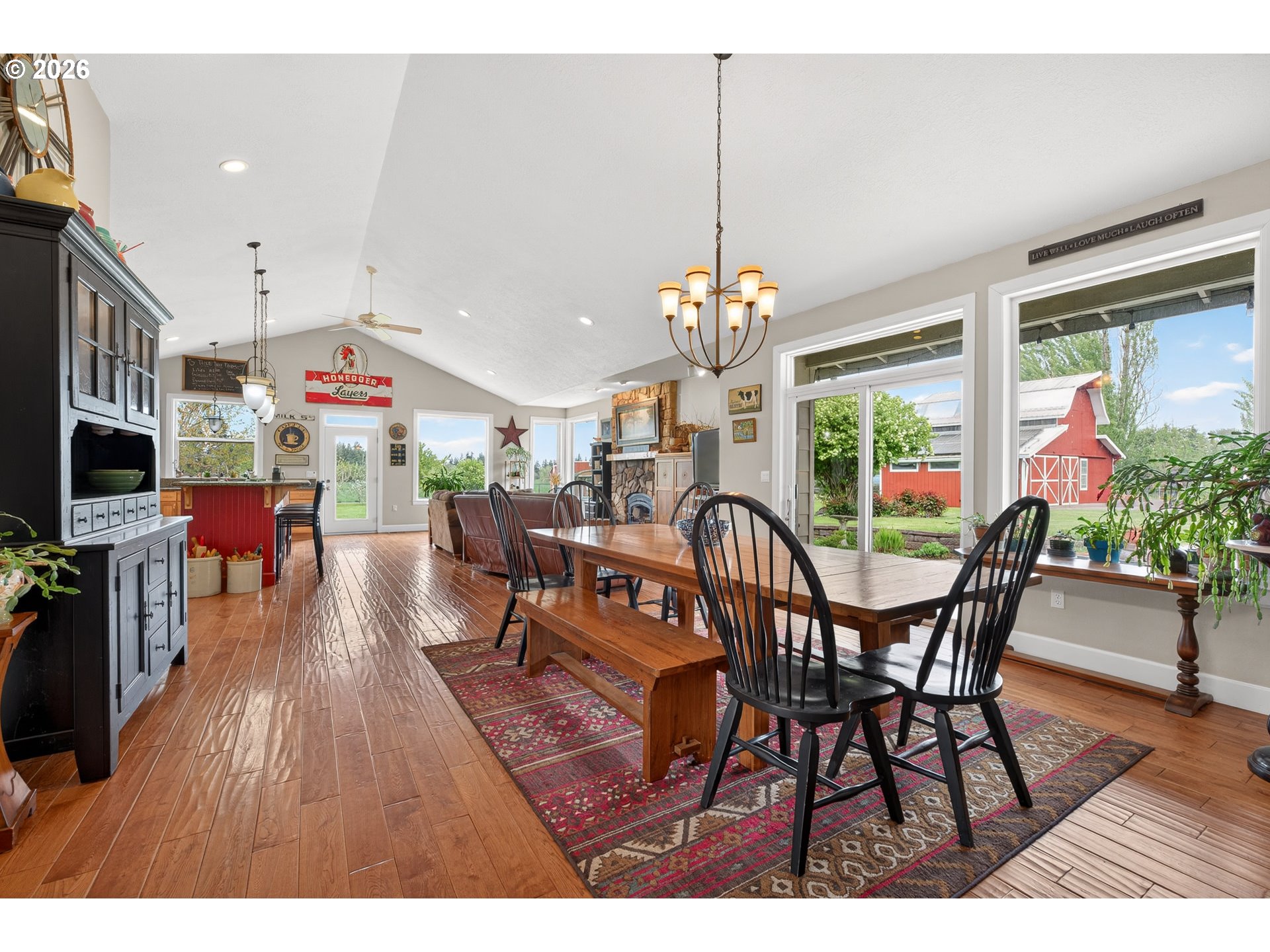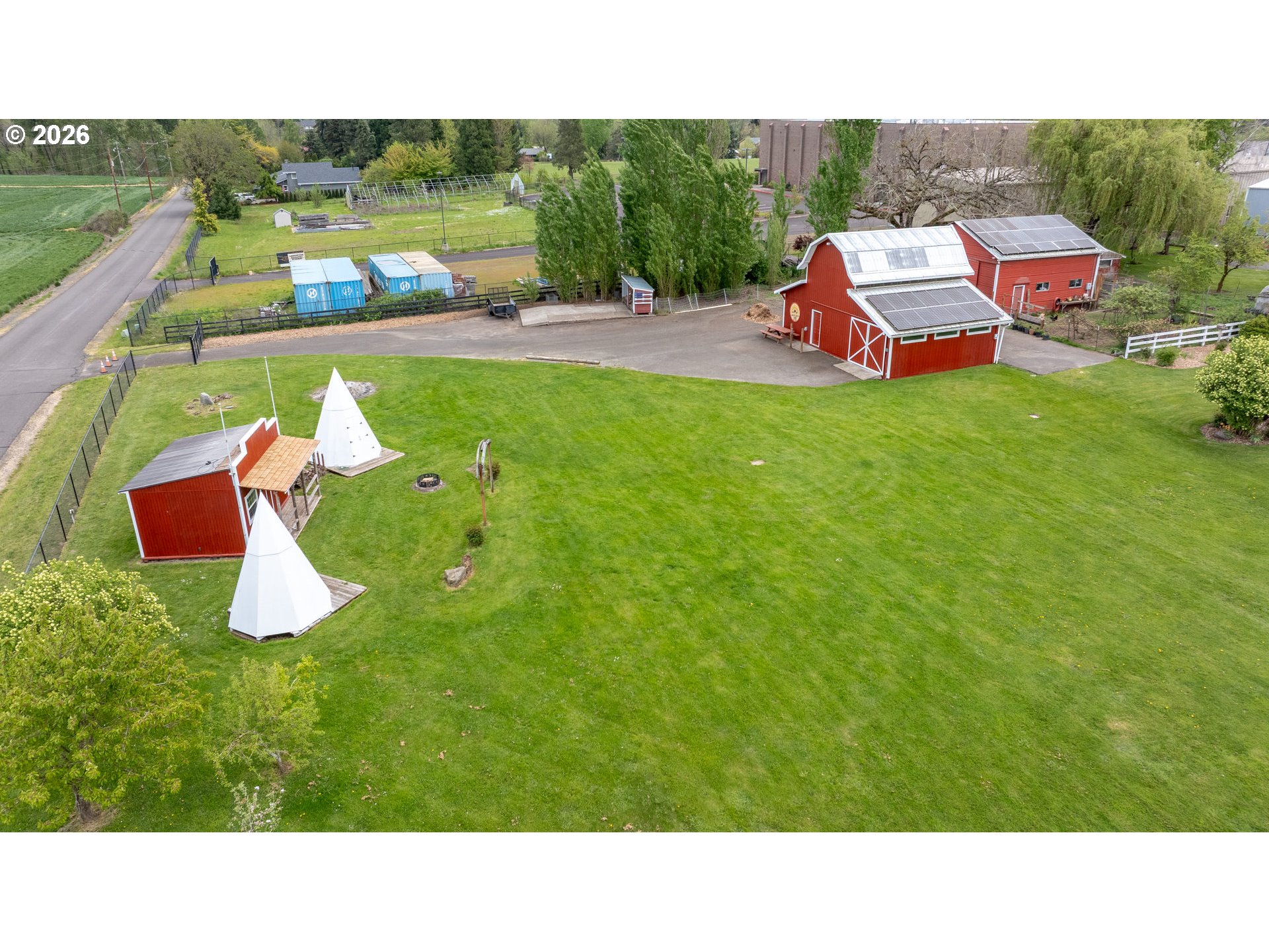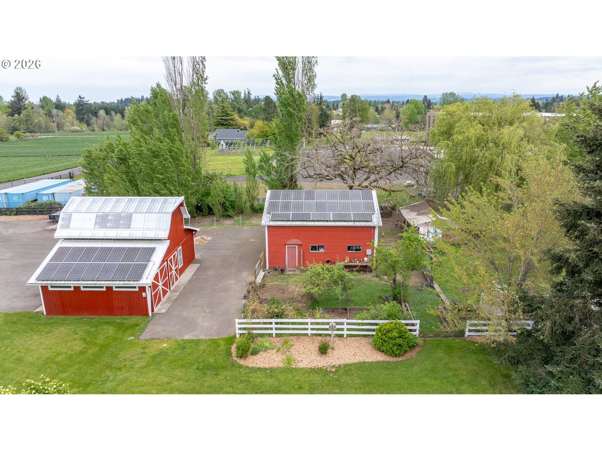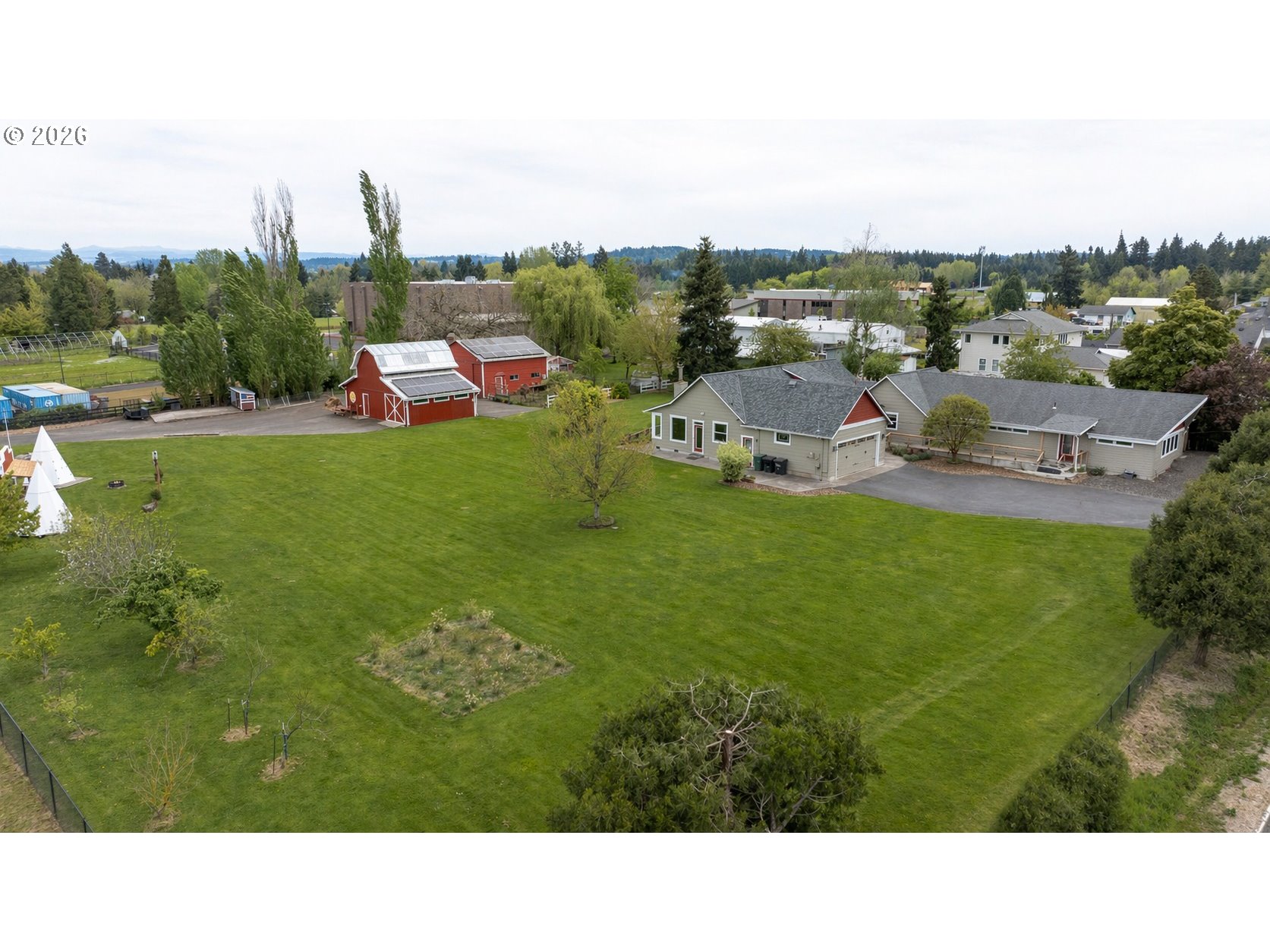 Welcome to this stunning 3,720 sq ft property offering 6 bedrooms, 4.5 bathrooms, and 2 private guest suites ideal for multi-generational living, extended stays, or potential mid-term rental income all set on 1.74 fully fenced acres. A ramp entry enhances accessibility, while beautiful hardwood floors, granite countertops, and a spacious kitchen with abundant storage and a center island create a home that is both functional and inviting. Thoughtfully designed, the two suites offer a true retreat! Each featuring vaulted ceilings, private decks, and spa-like bathrooms with heated floors and roll-in showers, all built with accessibility and comfort in mind. Outside, the property transforms into an entertainer’s and hobbyist’s dream. A barn with hay loft and RV hookups, a large shop (formerly an auto body space), and an attached caretaker’s cottage with its own electrical meter provide endless flexibility. Additional features include a garden shed/pump house, RV/camper pad with wood shed, and a charming playhouse with electricity. The grounds are equally impressive, with two lighted teepees surrounding a fire pit, mature fruit trees, a blueberry patch, a variety of grapes, a large garden area, and a chicken coop. A sprinkler system services most of the acreage, and secondary gated access adds convenience and ease. This is a rare opportunity to own a property that offers space, versatility, and lifestyle, all in one. Must give 24 hours notice to view suite with tenant. The 2nd guest suite is unavailable for showings. Both guest suites are identical. Both tenant leases are ending at the end of June.
