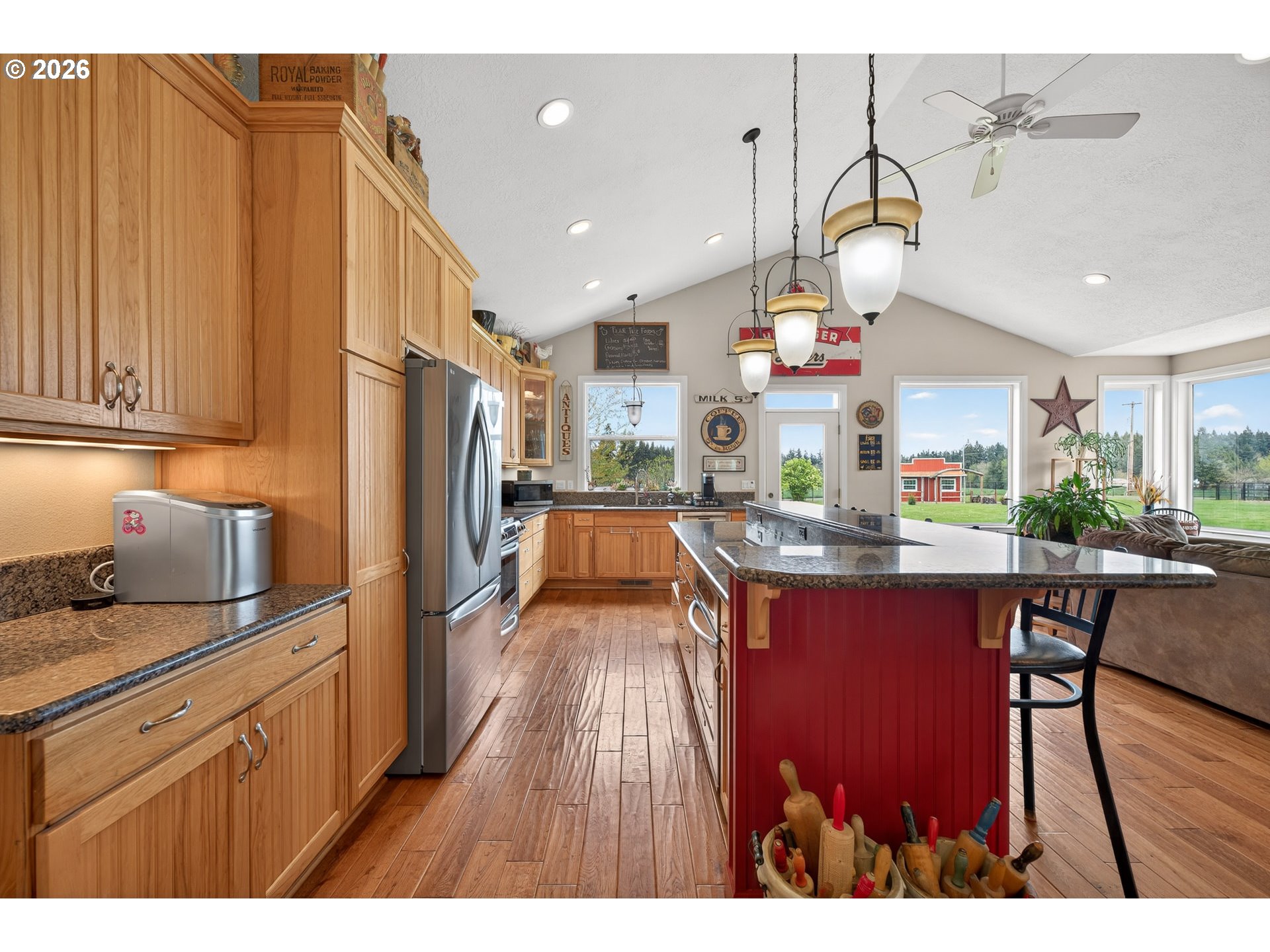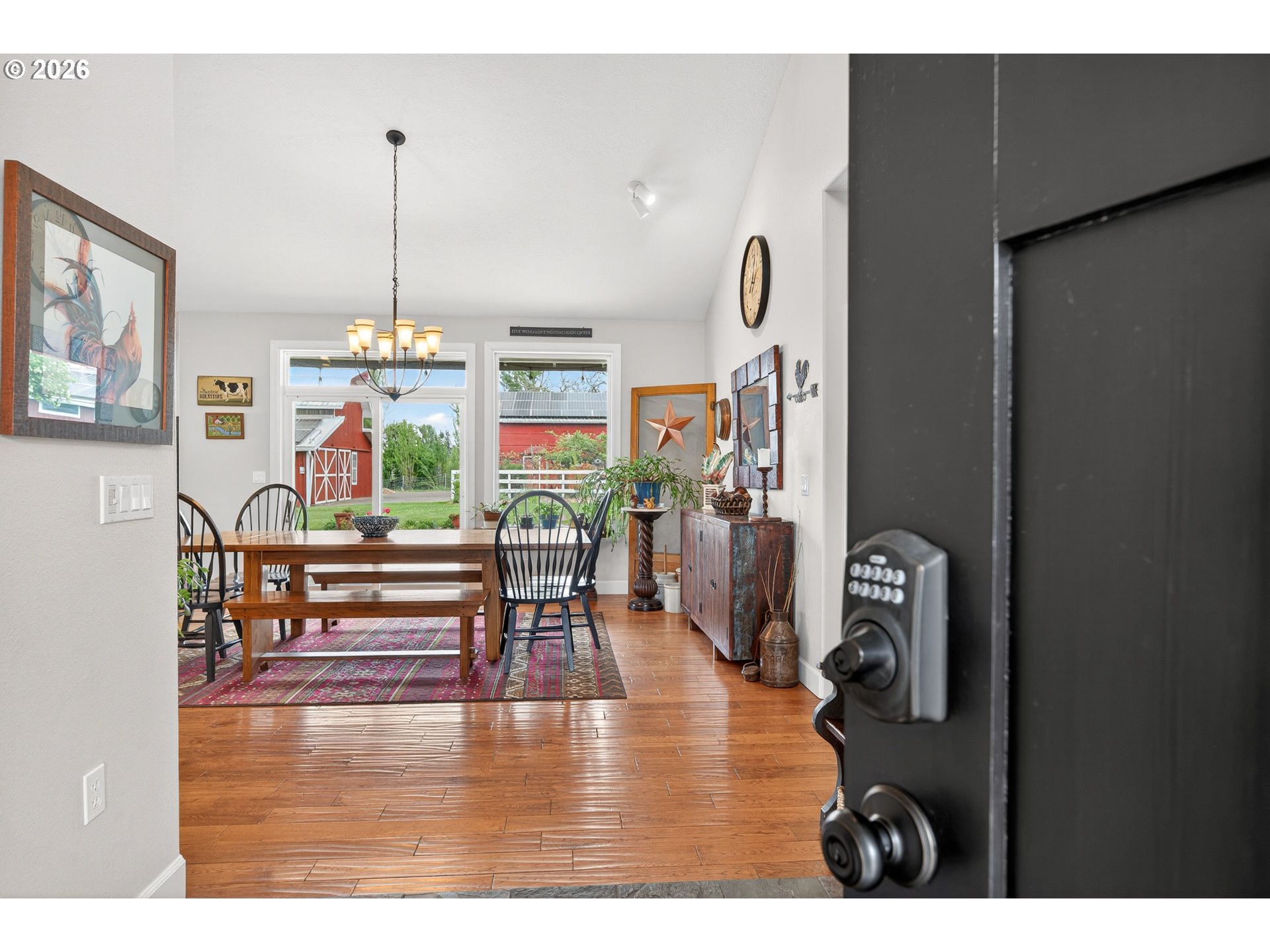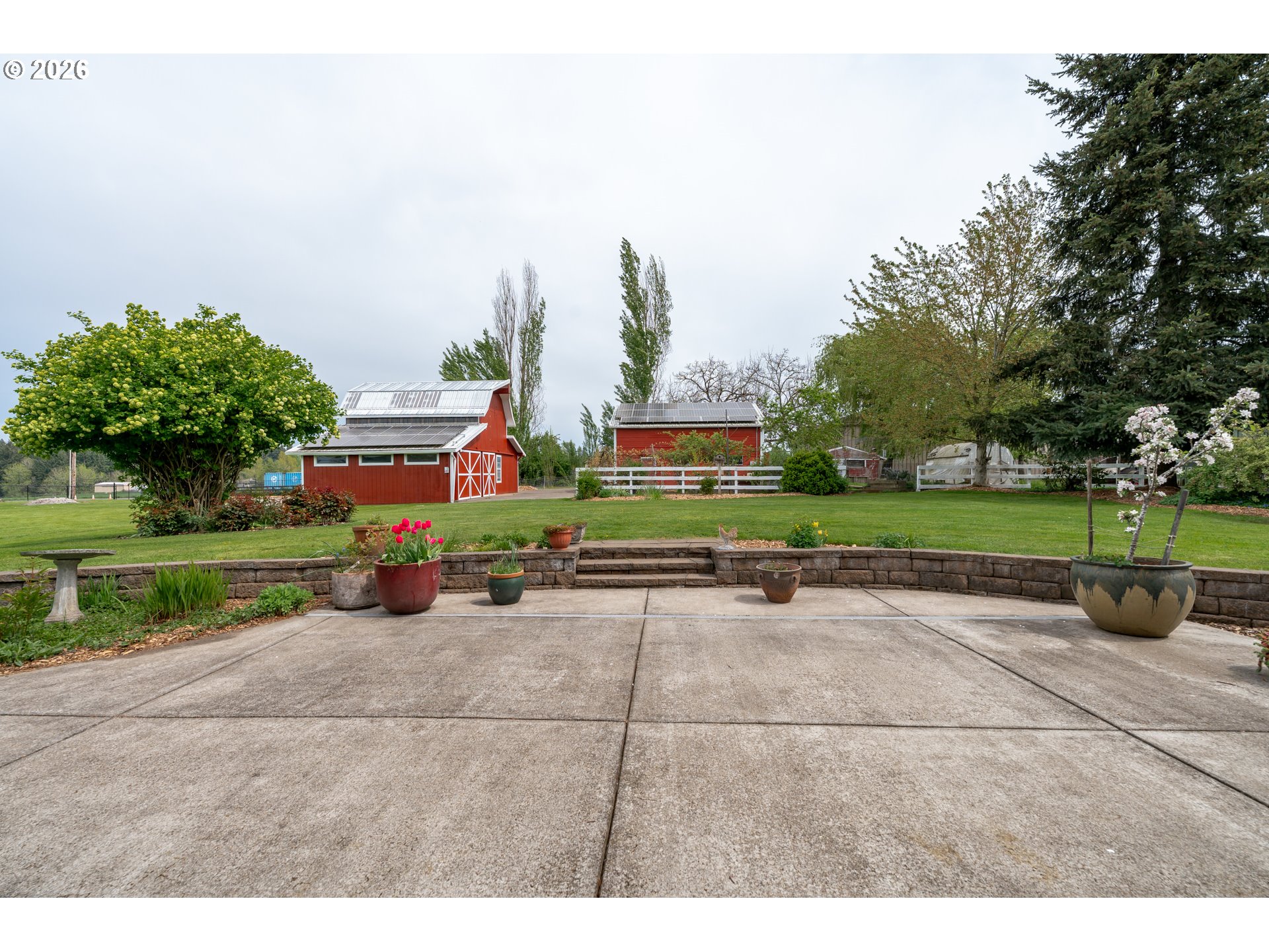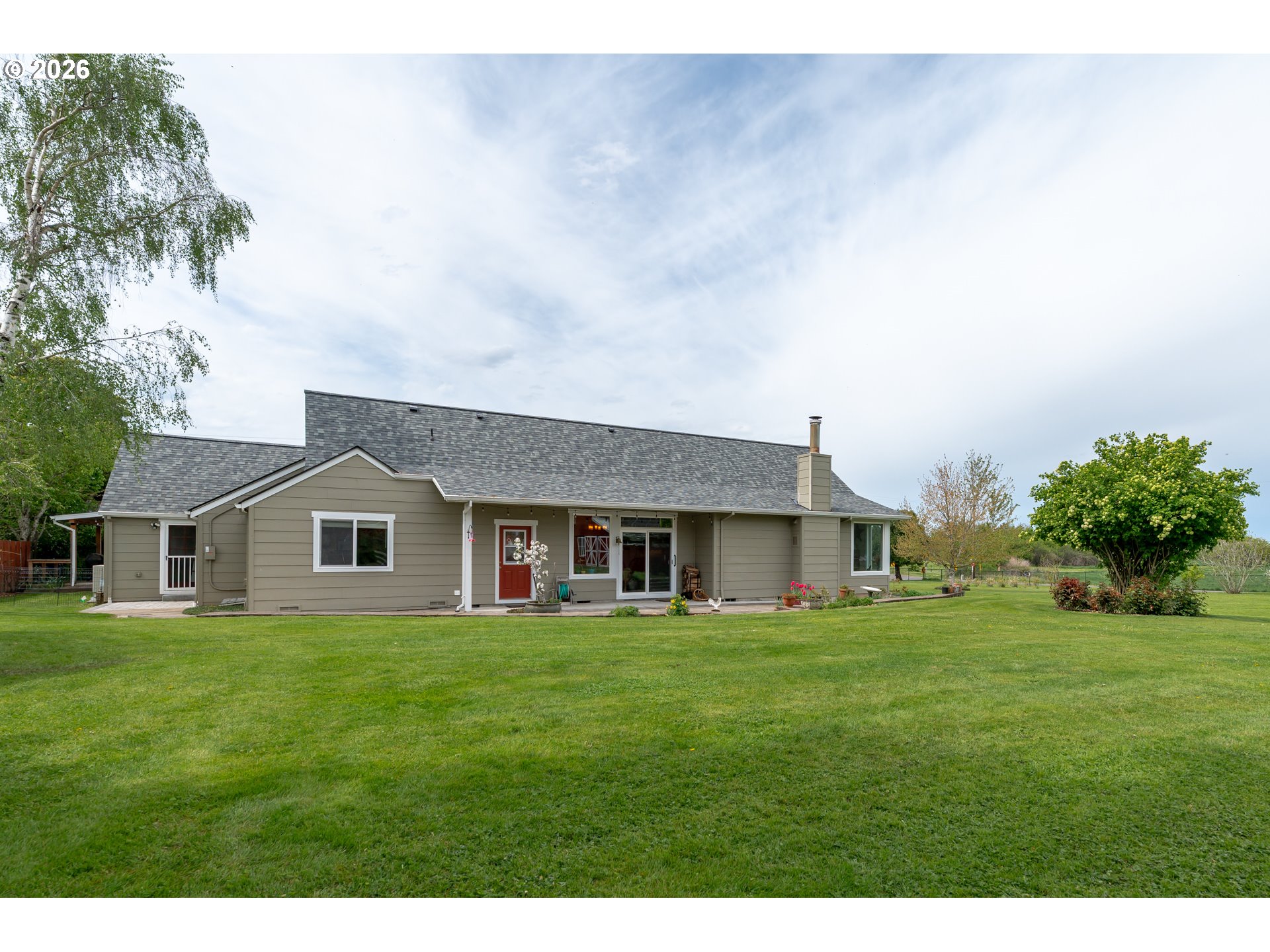 Welcome to this stunning 3,720 sq ft property offering 6 bedrooms, 4.5 bathrooms, and 2 private guest suites ideal for multi-generational living, extended stays, or potential mid-term rental income all set on 1.74 fully fenced acres. A ramp entry enhances accessibility, while beautiful hardwood floors, granite countertops, and a spacious kitchen with abundant storage and a center island create a home that is both functional and inviting. Thoughtfully designed, the two suites offer a true retreat! Each featuring vaulted ceilings, private decks, and spa-like bathrooms with heated floors and roll-in showers, all built with accessibility and comfort in mind. Outside, the property transforms into an entertainer’s and hobbyist’s dream. A barn with hay loft and RV hookups, a large shop (formerly an auto body space), and an attached caretaker’s cottage with its own electrical meter provide endless flexibility. Additional features include a garden shed/pump house, RV/camper pad with wood shed, and a charming playhouse with electricity. The grounds are equally impressive, with two lighted teepees surrounding a fire pit, mature fruit trees, a blueberry patch, a variety of grapes, a large garden area, and a chicken coop. A sprinkler system services most of the acreage, and secondary gated access adds convenience and ease. This is a rare opportunity to own a property that offers space, versatility, and lifestyle, all in one. Must give 24 hours notice to view suite with tenant. The 2nd guest suite is unavailable for showings. Both guest suites are identical. Both tenant leases are ending at the end of June.