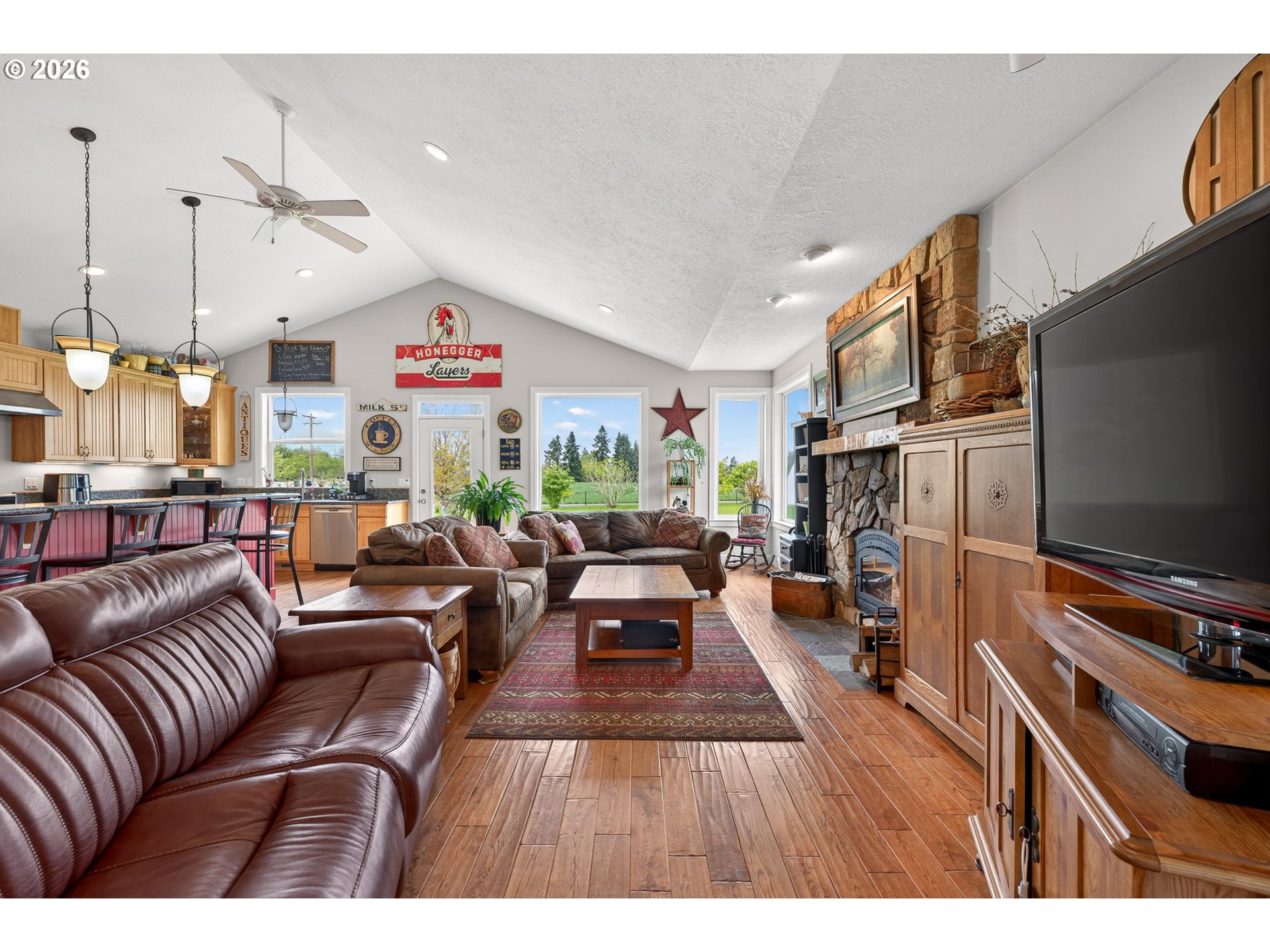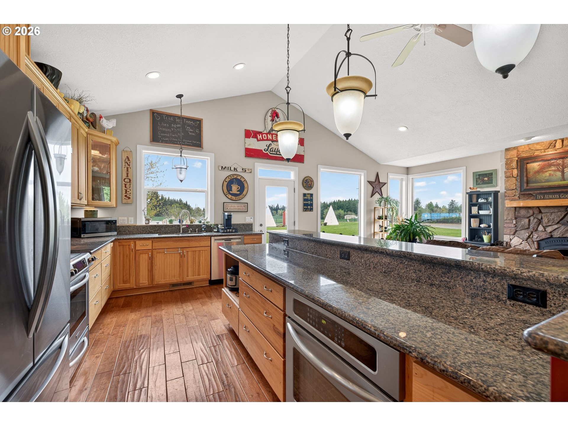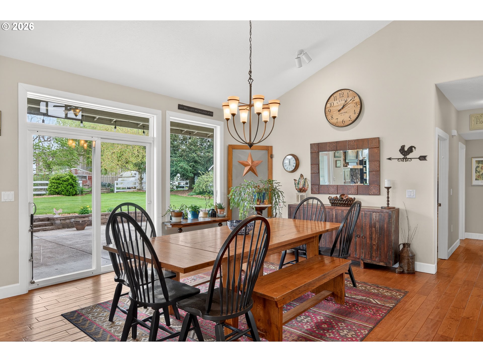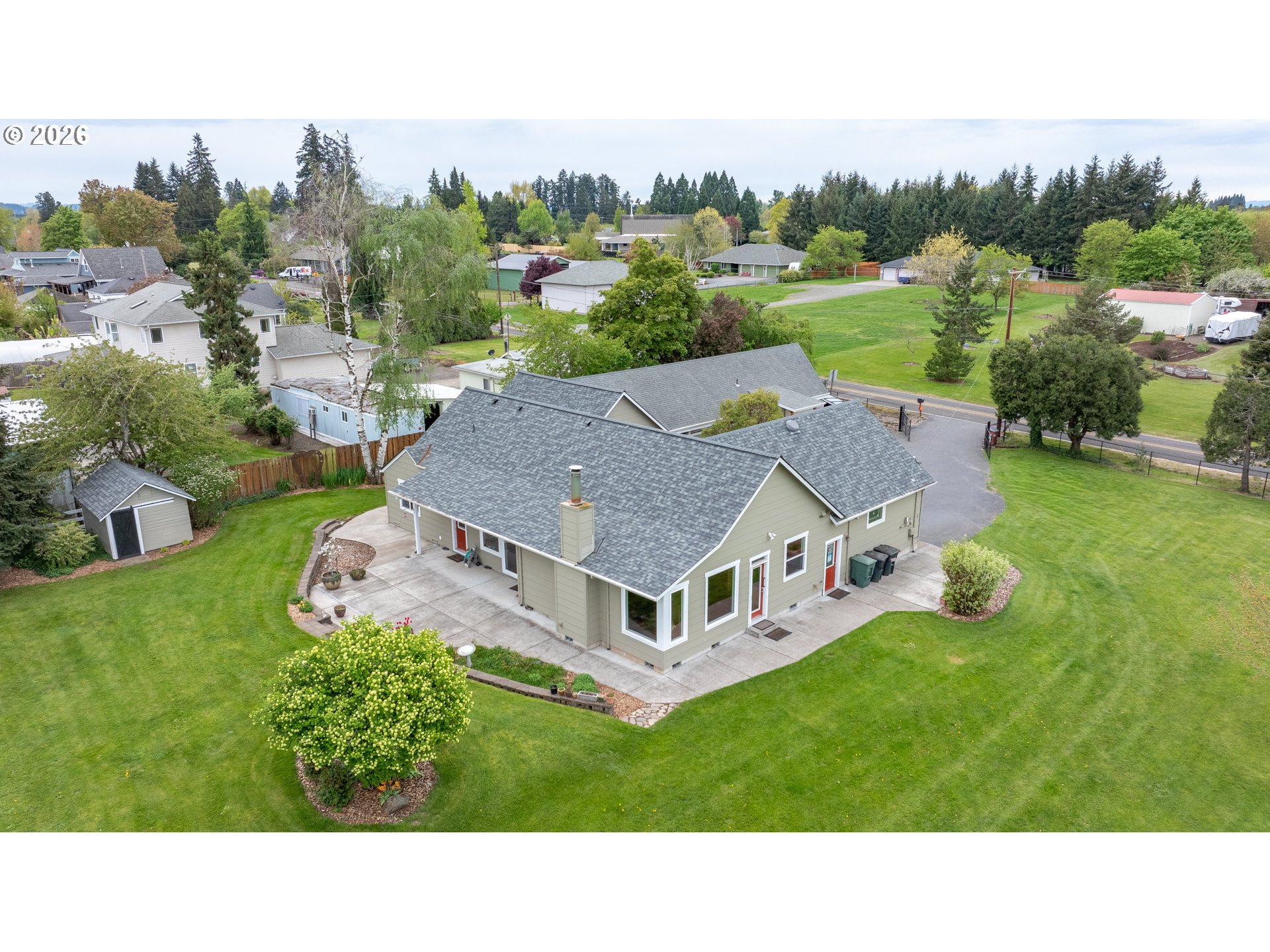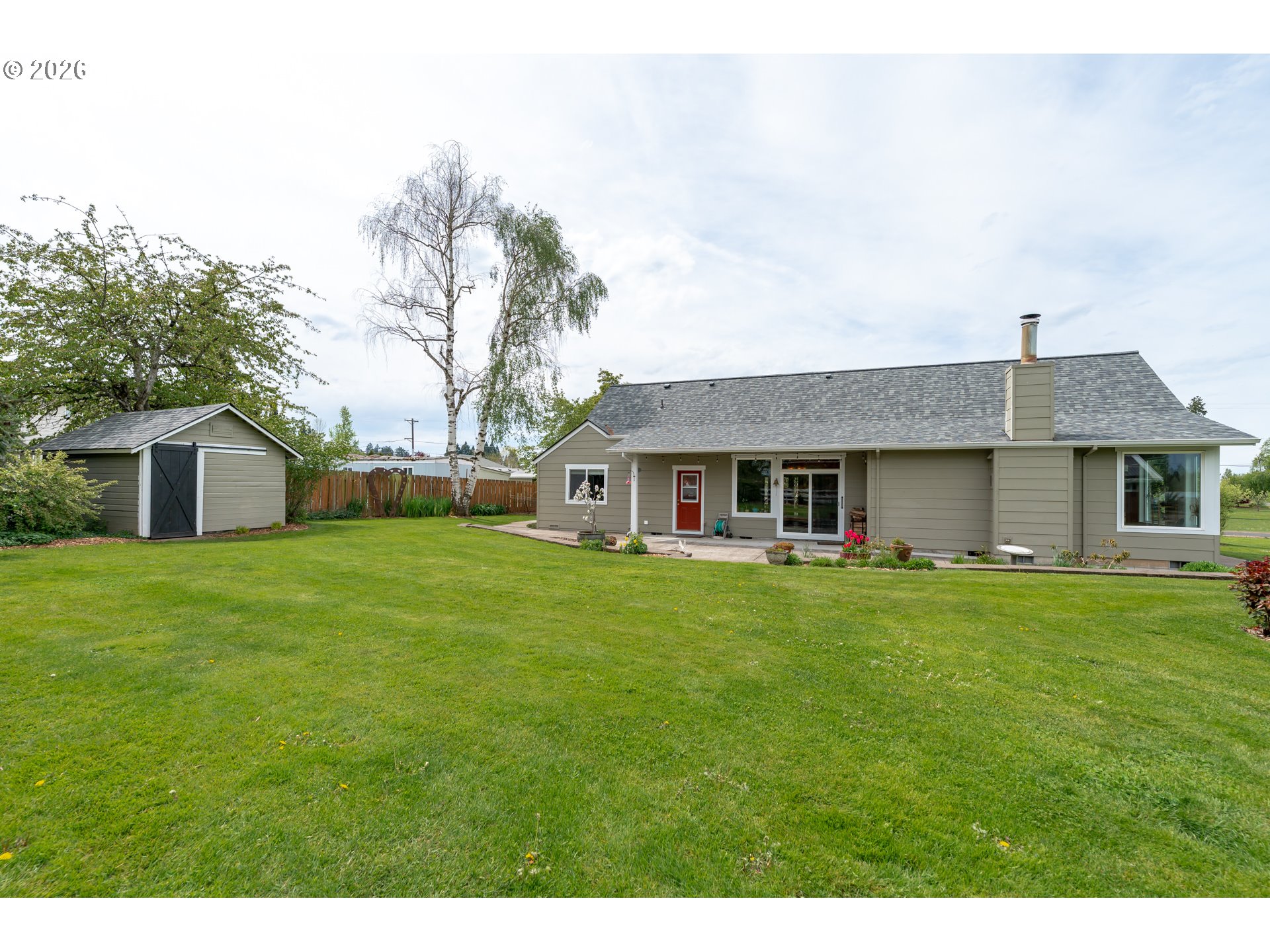 Welcome to this stunning 3,720 sq ft property offering 6 bedrooms, 4.5 bathrooms, and 2 private guest suites ideal for multi-generational living, extended stays, or potential mid-term rental income all set on 1.74 fully fenced acres. A ramp entry enhances accessibility, while beautiful hardwood floors, granite countertops, and a spacious kitchen with abundant storage and a center island create a home that is both functional and inviting. Thoughtfully designed, the two suites offer a true retreat! Each featuring vaulted ceilings, private decks, and spa-like bathrooms with heated floors and roll-in showers, all built with accessibility and comfort in mind. Outside, the property transforms into an entertainer’s and hobbyist’s dream. A barn with hay loft and RV hookups, a large shop (formerly an auto body space), and an attached caretaker’s cottage with its own electrical meter provide endless flexibility. Additional features include a garden shed/pump house, RV/camper pad with wood shed, and a charming playhouse with electricity. The grounds are equally impressive, with two lighted teepees surrounding a fire pit, mature fruit trees, a blueberry patch, a variety of grapes, a large garden area, and a chicken coop. A sprinkler system services most of the acreage, and secondary gated access adds convenience and ease. This is a rare opportunity to own a property that offers space, versatility, and lifestyle, all in one. Must give 24 hours notice to view suite with tenant. The 2nd guest suite is unavailable for showings. Both guest suites are identical. Both tenant leases are ending at the end of June.