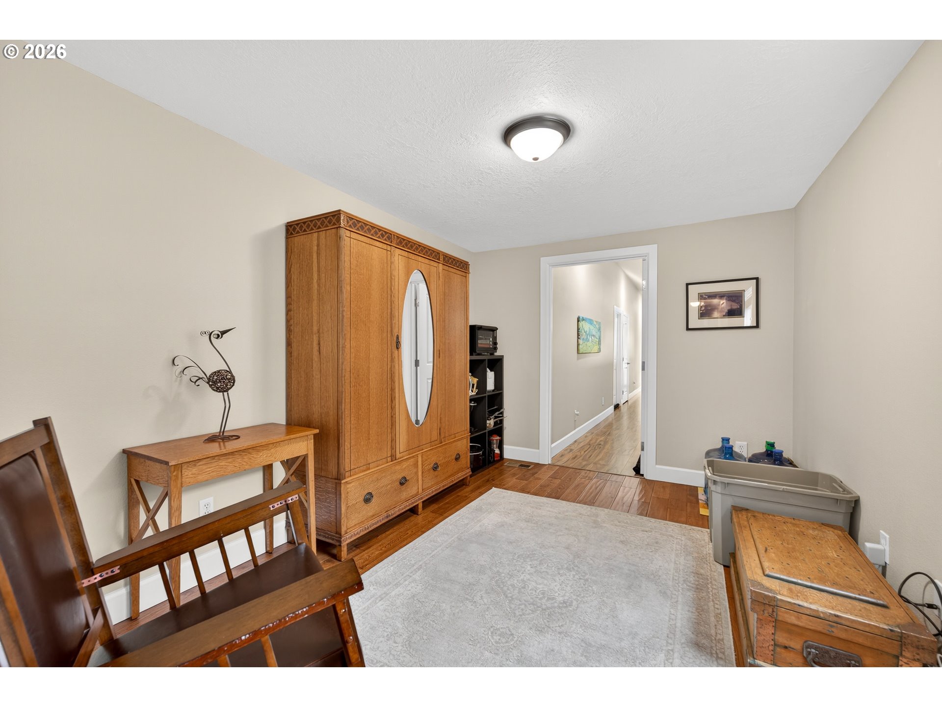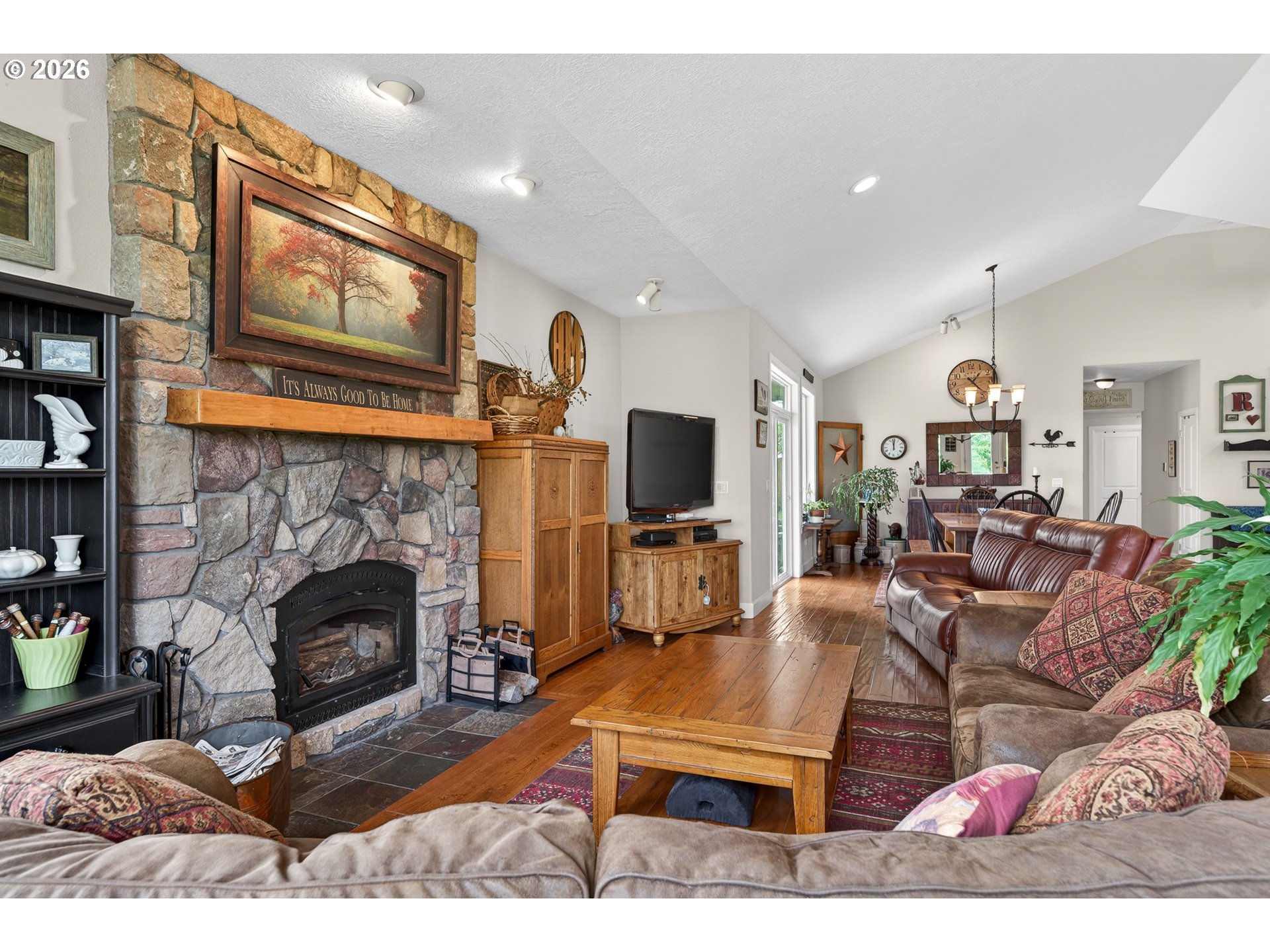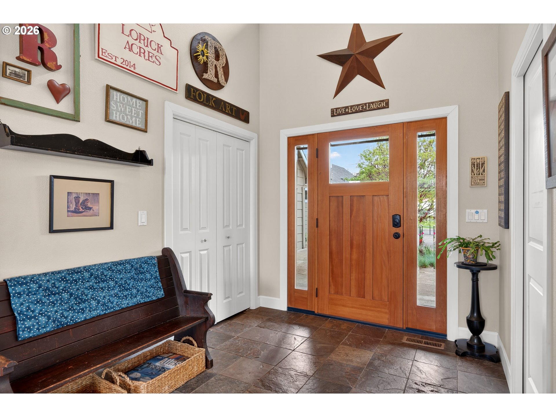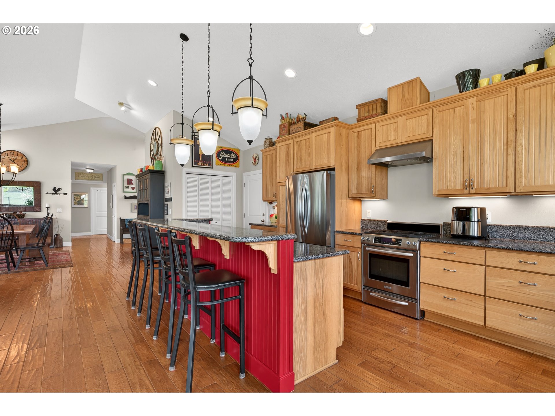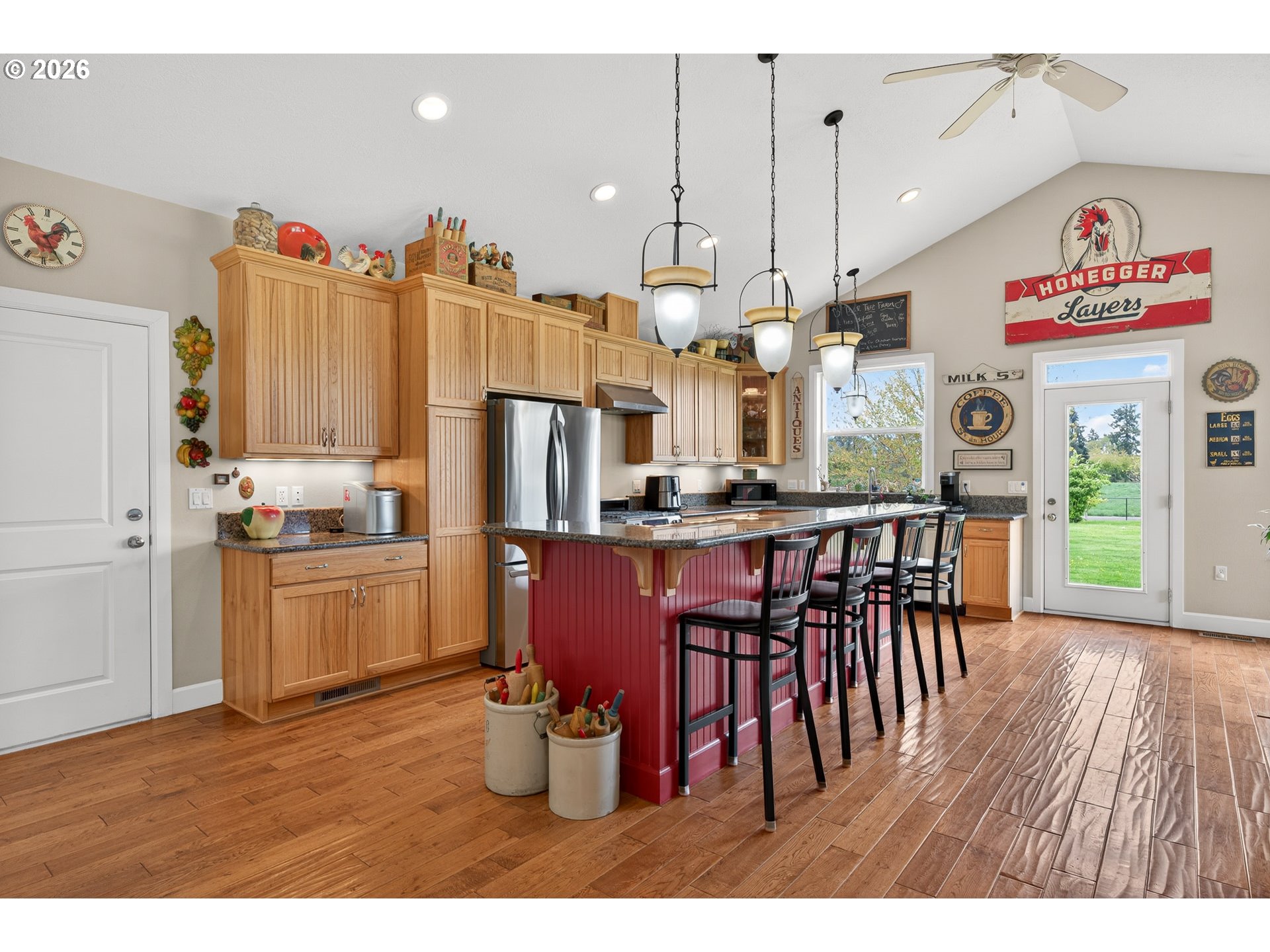 Welcome to this stunning 3,720 sq ft property offering 6 bedrooms, 4.5 bathrooms, and 2 private guest suites ideal for multi-generational living, extended stays, or potential mid-term rental income all set on 1.74 fully fenced acres. A ramp entry enhances accessibility, while beautiful hardwood floors, granite countertops, and a spacious kitchen with abundant storage and a center island create a home that is both functional and inviting. Thoughtfully designed, the two suites offer a true retreat! Each featuring vaulted ceilings, private decks, and spa-like bathrooms with heated floors and roll-in showers, all built with accessibility and comfort in mind. Outside, the property transforms into an entertainer’s and hobbyist’s dream. A barn with hay loft and RV hookups, a large shop (formerly an auto body space), and an attached caretaker’s cottage with its own electrical meter provide endless flexibility. Additional features include a garden shed/pump house, RV/camper pad with wood shed, and a charming playhouse with electricity. The grounds are equally impressive, with two lighted teepees surrounding a fire pit, mature fruit trees, a blueberry patch, a variety of grapes, a large garden area, and a chicken coop. A sprinkler system services most of the acreage, and secondary gated access adds convenience and ease. This is a rare opportunity to own a property that offers space, versatility, and lifestyle, all in one. Must give 24 hours notice to view suite with tenant. The 2nd guest suite is unavailable for showings. Both guest suites are identical. Both tenant leases are ending at the end of June.