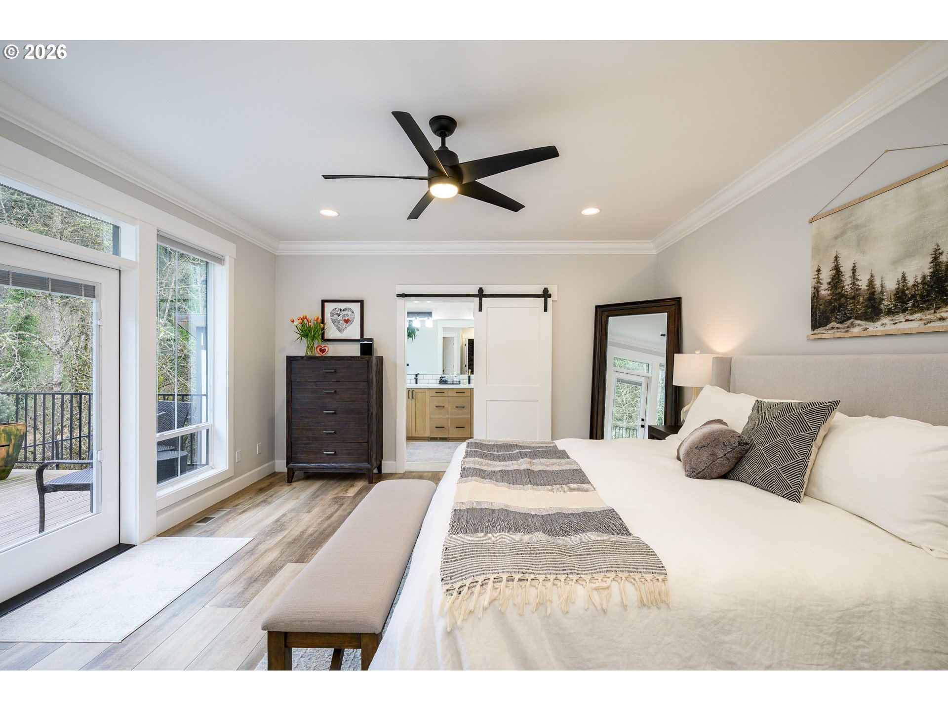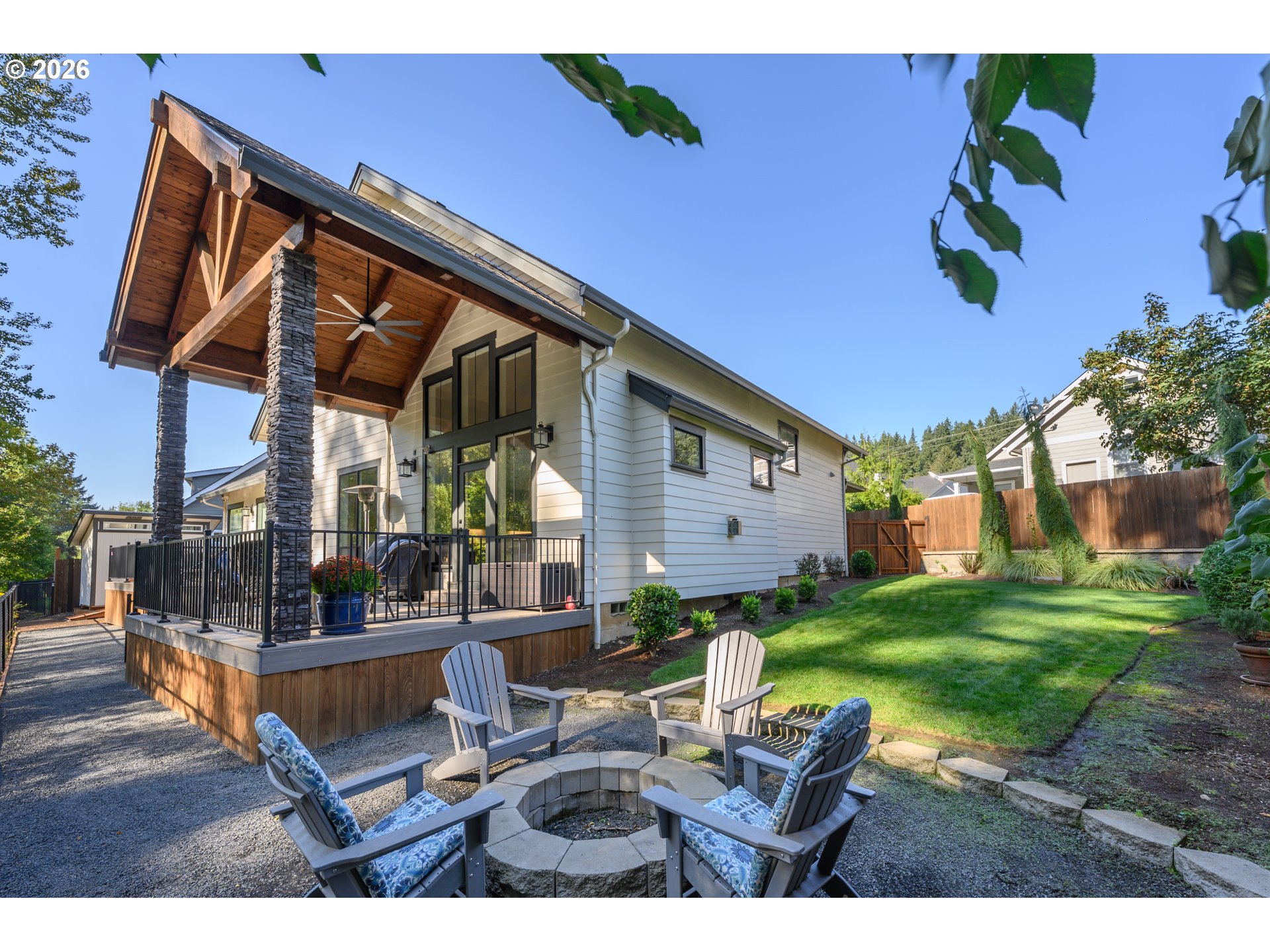 Exceptional 2021 Silverton riverfront home offers direct stairway access to Silver Creek for floating, swimming, and enjoying the water. Located outside the flood zone, no flood insurance is required. Inside, the kitchen features a large centerpiece island with bar seating, warm oak cabinetry, quartz countertops, GE Café Smart appliances, and undercabinet lighting. The living room showcases two-story vaulted ceilings, a striking stone fireplace, custom built-ins, and floor-to-ceiling windows framing serene river views. The main-level primary suite includes dual closets, private deck access, and a spa-like bath with soaking tub and tile shower, plus office and laundry on the main floor. Upstairs offers two bedrooms, 1.5 baths, a bonus room with wet bar, and the most glorious closets you can find! Enjoy year-round outdoor living on the covered deck while listening to the peaceful sounds of Silver Creek. Silverton is known for its charming downtown, arts community, and proximity to Silver Falls State Park, just about 20 minutes from Salem.
