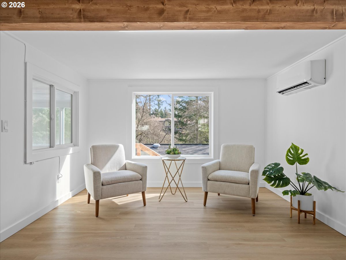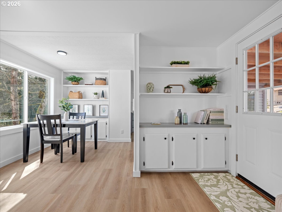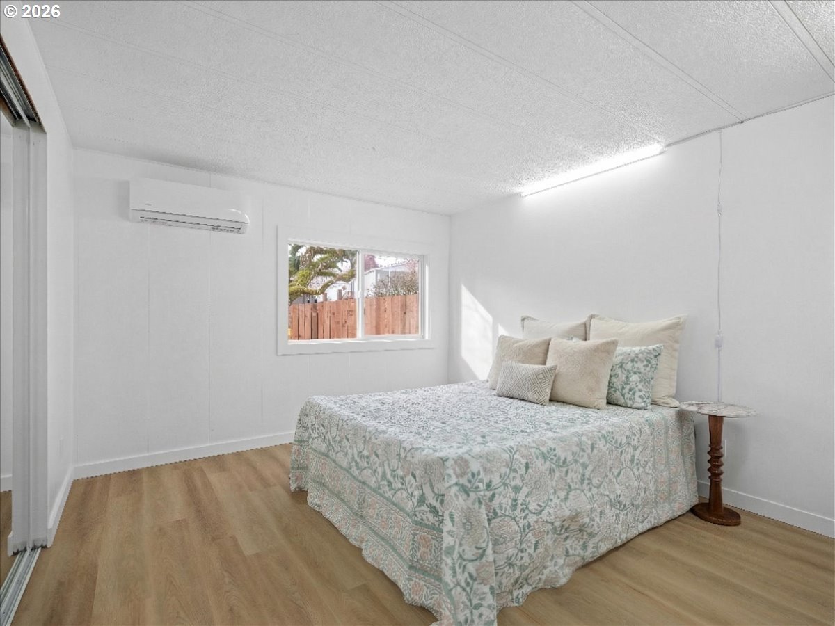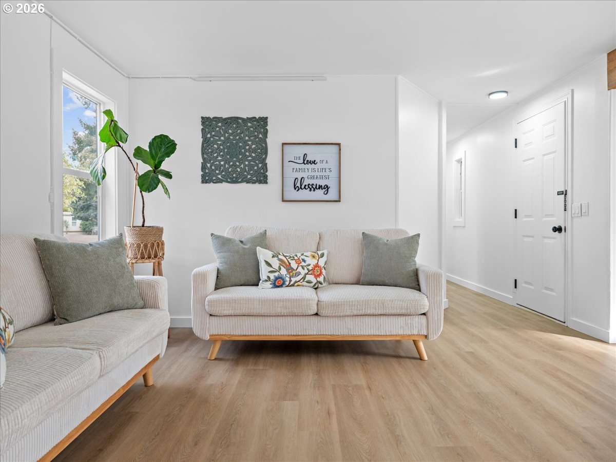 Great opportunity to own a manufactured home on its own land-no space rent. Fully renovated and move-in ready, ideally positioned overlooking trees for a peaceful, private feel. This 1,241 sq ft home offers 3 bed, 2 bath plus a spacious 11x20 family room for added living space. An additional 11x15 enclosed sunroom (not included in square footage) with walls of windows brings in natural light and captures the quiet setting with sounds of nature. Finished in a clean, modern-organic style with abundant natural light. The kitchen features quartz counters, pantry storage, and included appliances. Spacious primary suite is complete with ensuite and a gorgeous walk-in shower. Covered parking, ample storage, pet-friendly hard-surface flooring throughout, efficient air conditioning, and a new roof make this a true hassle-free home. Extremely low cost of living - under ~$2,500/year total for property taxes, HOA, water, and sewer COMBINED. Conveniently located with easy access to both Portland and Salem.