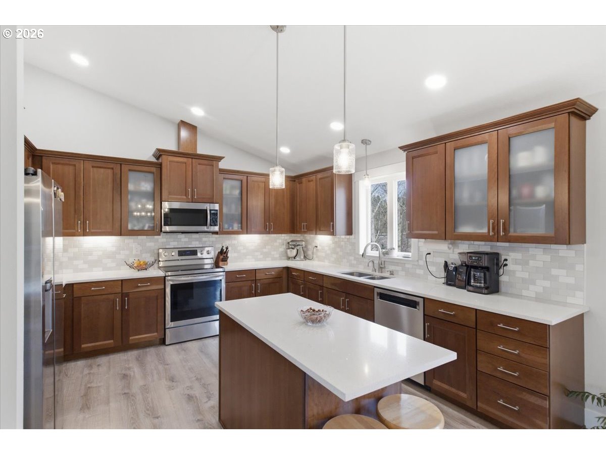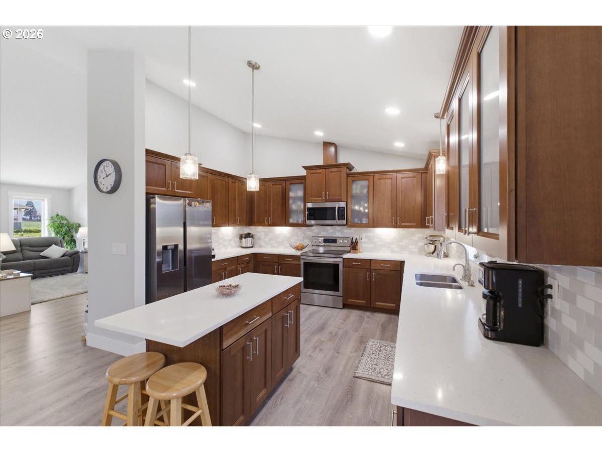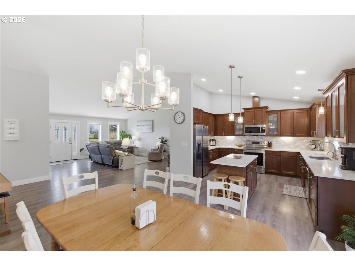 (503) 893-8874Stunning like new single-level home on acreage! This 4 bed,3 bath + office & bonus rm offers Light-filled great room with vaulted ceilings that flows into a open kitchen with island, quartz counters and custom cabinetry.All bedrooms feature walk-in closets, including a private primary suite with deck access & dual vanities. Large laundry room & excellent storage throughout.Elevated deck looks over custom stamped patio & pool perfect for entertaining.16x30 shop with power & concrete floors + workshop under home.