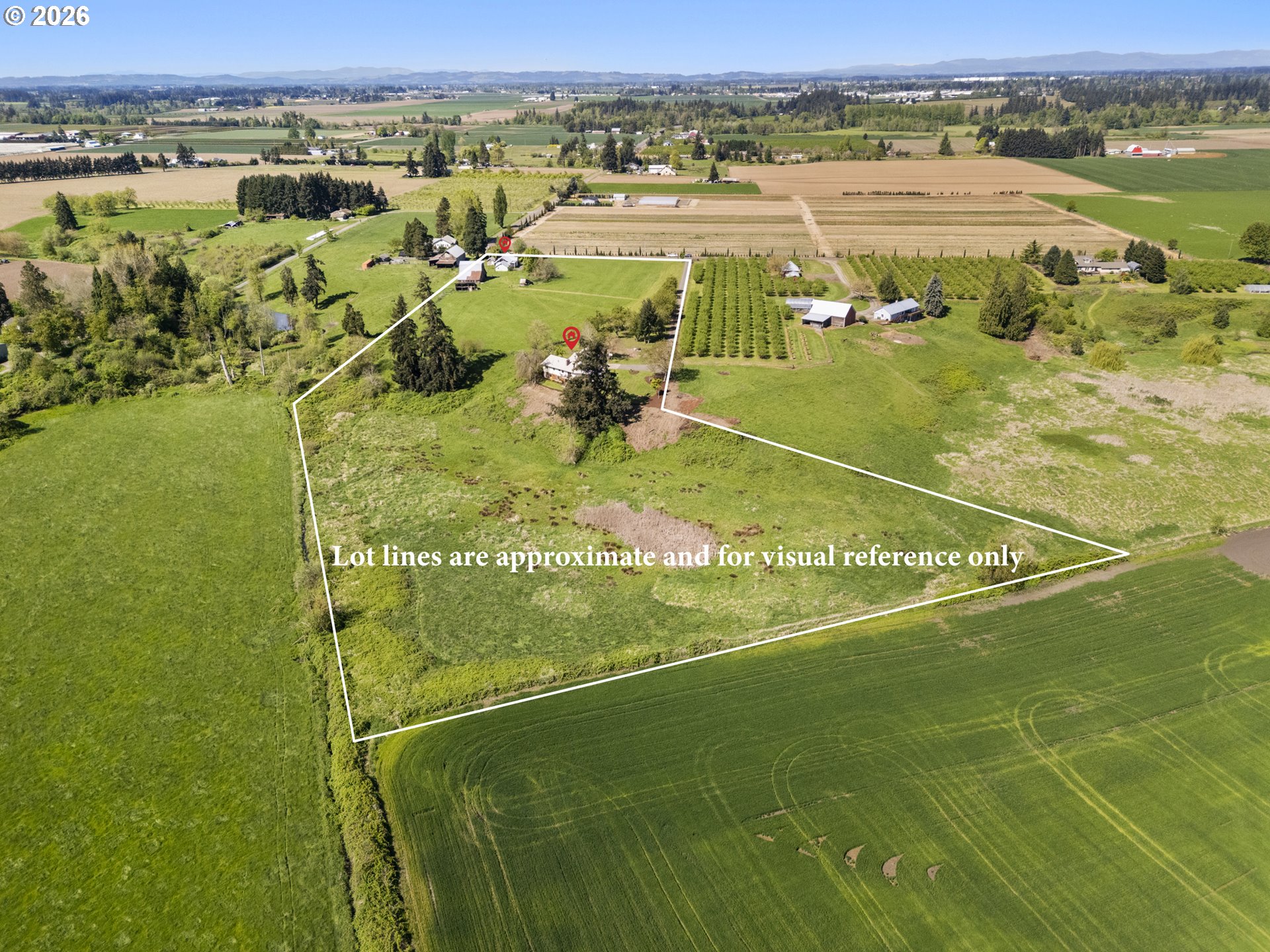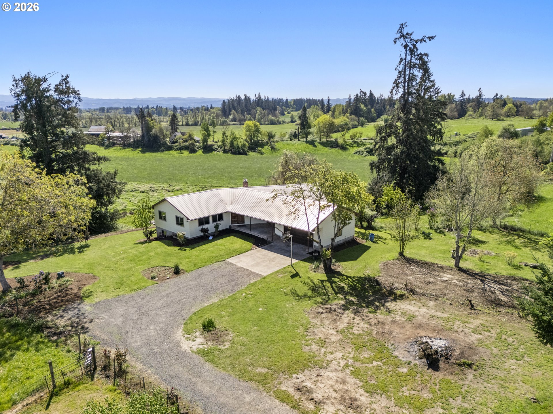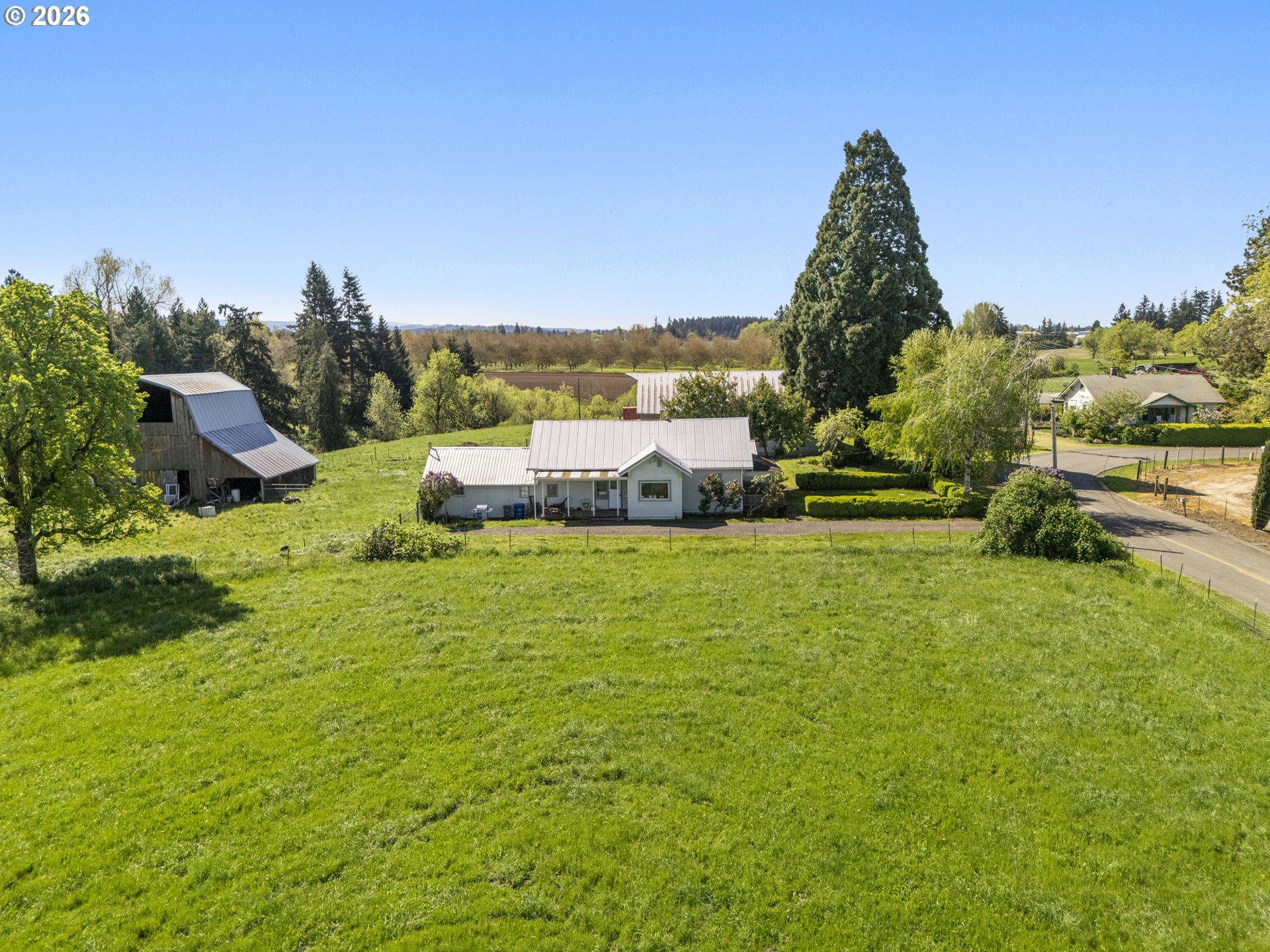 (503) 893-8874Unique 10-acre EFU-zoned property offering a rare opportunity for equestrian, cattle, or hobby farm use with two approved dwellings on one tax lot. The original 1906 farmhouse features 2 bedrooms, 1 bath, and 1,040 sq ft, while the second home, built in 1974, offers 2,148 sq ft with a full unfinished daylight basement and separate exterior entrance, ideal for multi-generational living or added space with some sweat equity. The land is thoughtfully laid out with level ground suitable for farming and lower pasture well-suited for horses or livestock. Established fruit trees, berries, and ample garden space enhance the rural lifestyle. Enjoy year-round views of the Willamette Valley from the large covered front deck. A 1,768 sq ft livestock barn with loft, full fencing and cross-fencing, and security gates make this a functional and versatile property. Income-producing potential adds even more value to this unique offering.