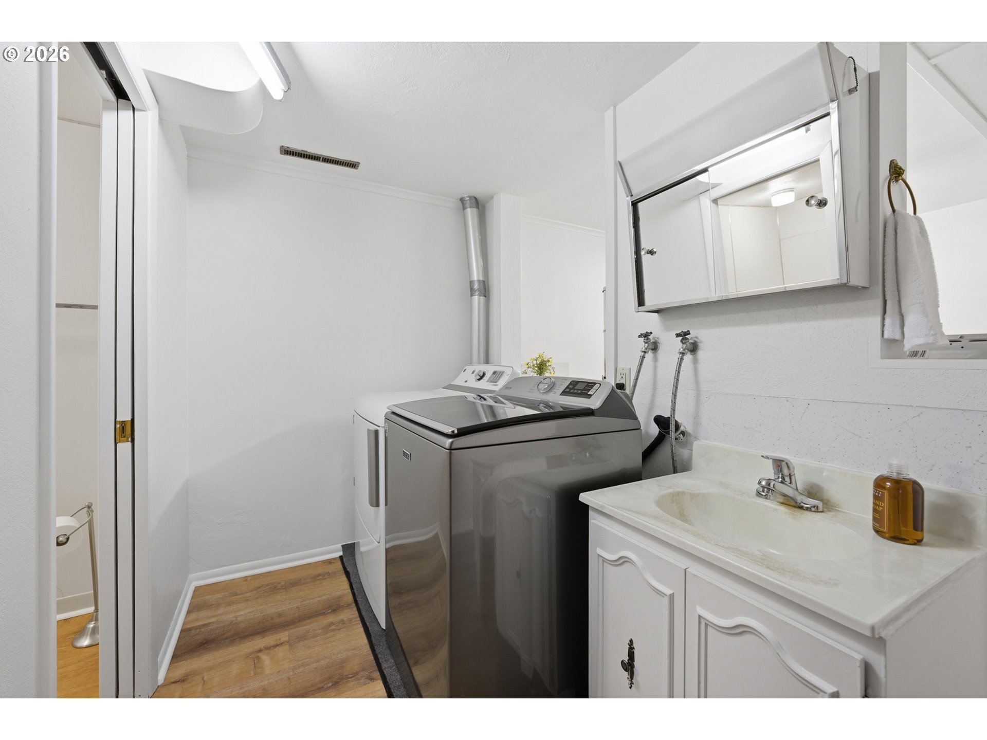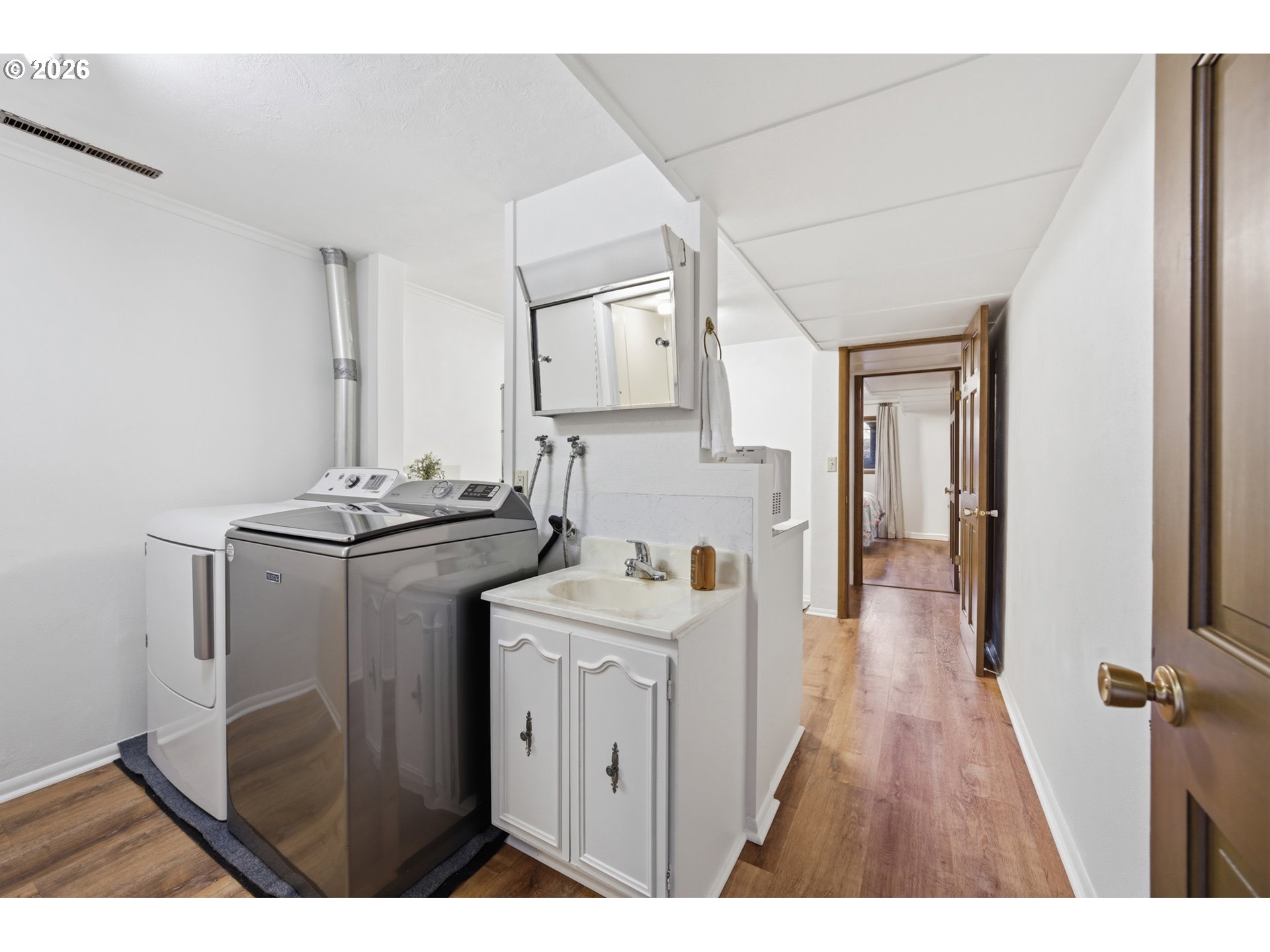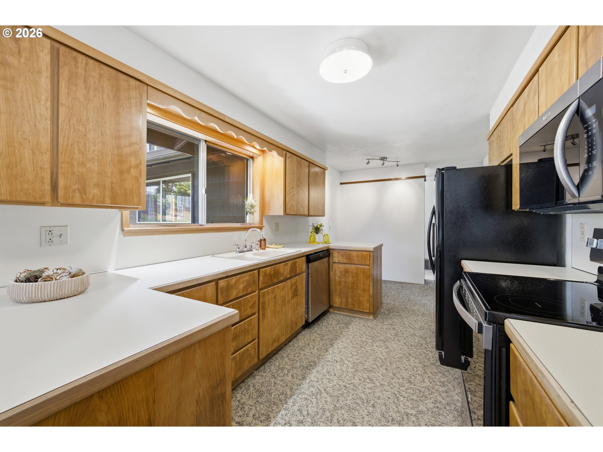 Nestled in one of Stayton’s most desirable neighborhoods, this beautifully maintained 5-bedroom, 3-bath home sits on a spacious 1/3-acre lot surrounded by fruit and pine trees, offering both comfort and versatility. The main level features a welcoming kitchen, cozy breakfast nook, an adjoining dining area, and a bright living room with scenic views and a wood-burning brick fireplace. A large family room with exposed wood beam ceilings and expansive windows brings in abundant natural light. The primary suite provides a private retreat with a sunken en-suite, separate tub and shower, and an additional closet, while two additional bedrooms and a full bath complete the level. The lower level offers excellent potential for dual living or extended stays. Featuring new luxury vinyl plank flooring, two updated bedrooms, a full bath, and an oversized freshly painted laundry room with room to create a second kitchen. A second family room with its own fireplace adds even more living space, along with access to the two-car garage with built-in workspace and storage. A new water heater adds extra peace of mind. Outdoor living shines with a large, recently stained deck with built-in seating, overlooking a fully fenced backyard complete with terraced garden beds, multiple fruit trees, and a private apple orchard—ideal for harvesting, gardening, or simply enjoying the peaceful surroundings. A perfect blend of space, function, and Northwest charm.