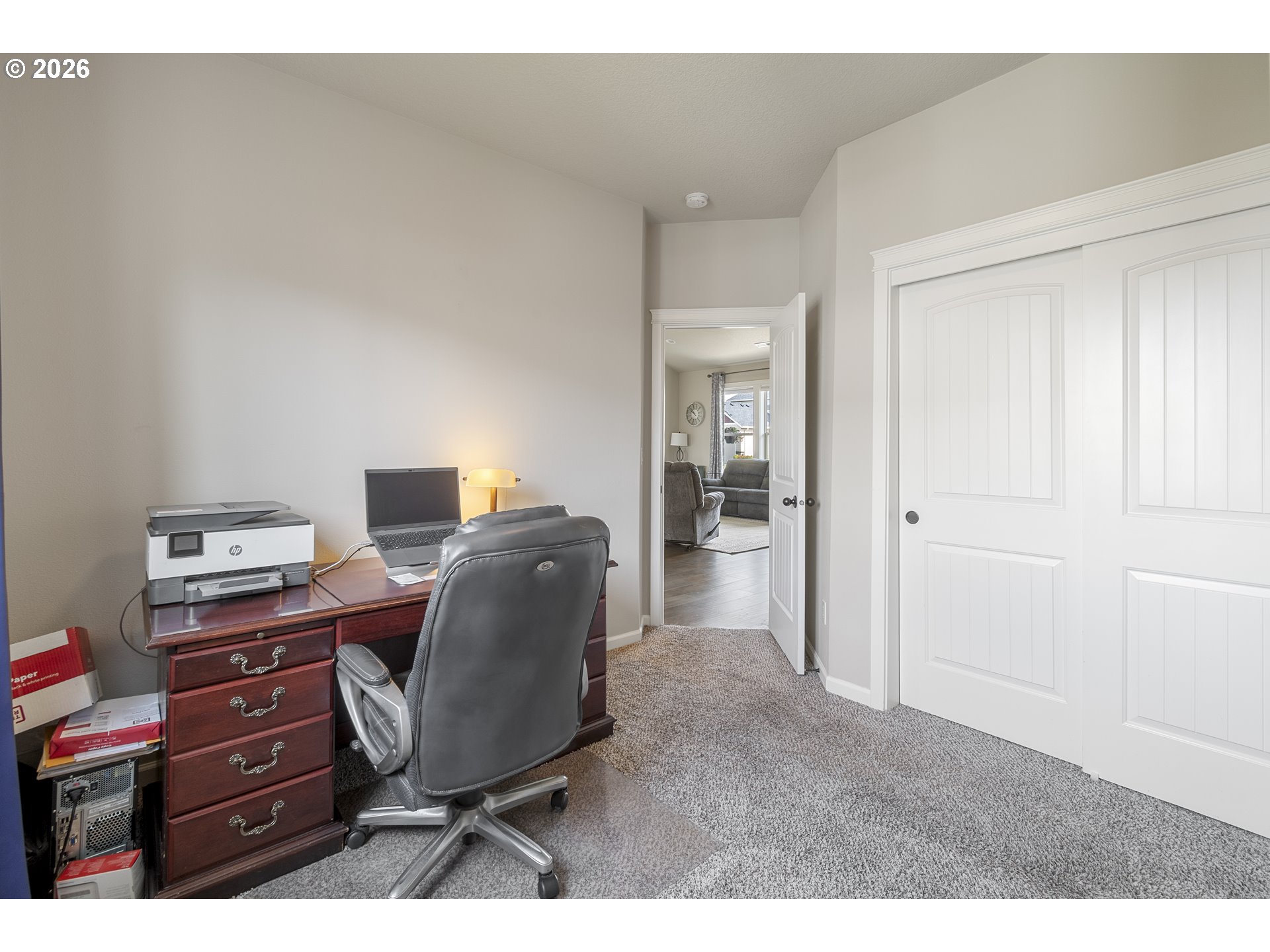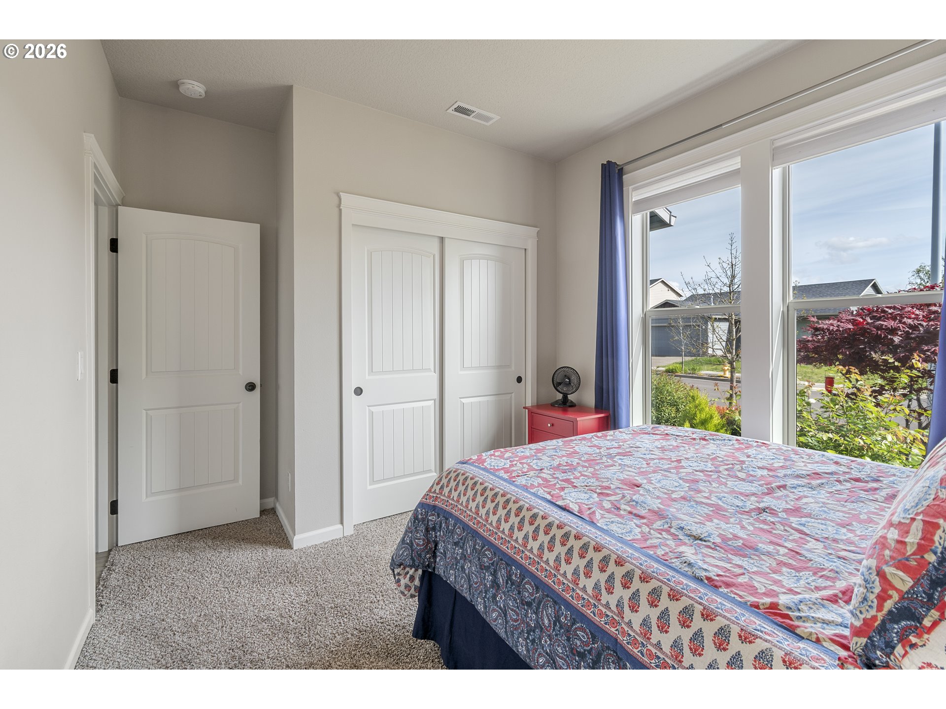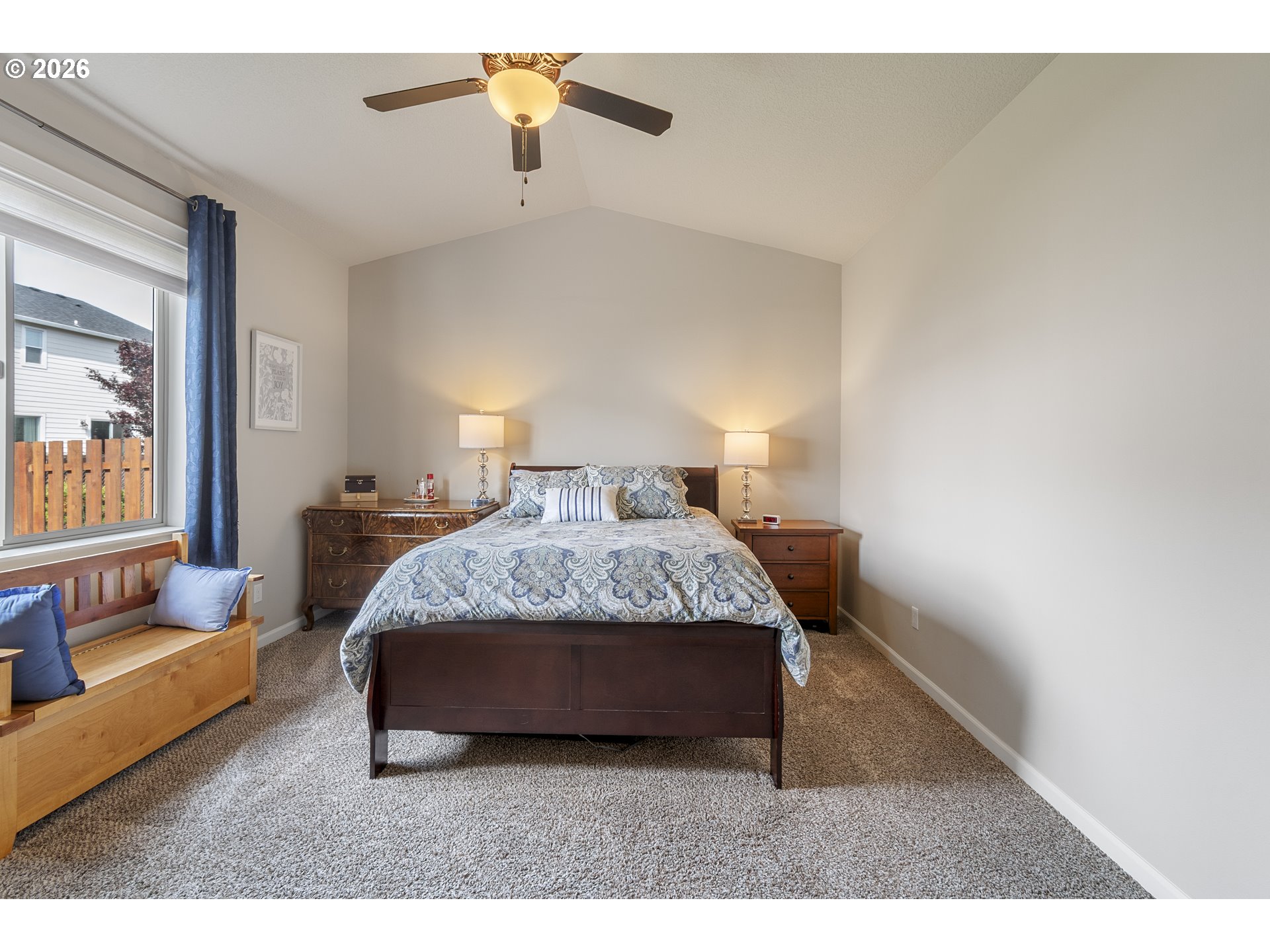This well-maintained 3-bedroom home was built in 2019 and offers 1,365 sq ft with a functional open-concept layout. The main living area includes vaulted ceilings and gas fireplace which flows into the dining space and kitchen, creating a connected setup for everyday living. The kitchen features beautiful cabinetry, and generous countertop space, along with matching stainless steel appliances. The primary suite includes an attached bathroom, and the additional bedrooms provide flexible space for guests, office use, or hobbies. The home also includes an attached 2-car garage and a fully fenced backyard perfect for entertaining with covered and screened patio, hot-tub, play space, and gardening. Convenient Woodburn location close to shopping, dining, parks, schools, and easy access to I-5 for commuting north toward Wilsonville/Portland or south toward Salem.