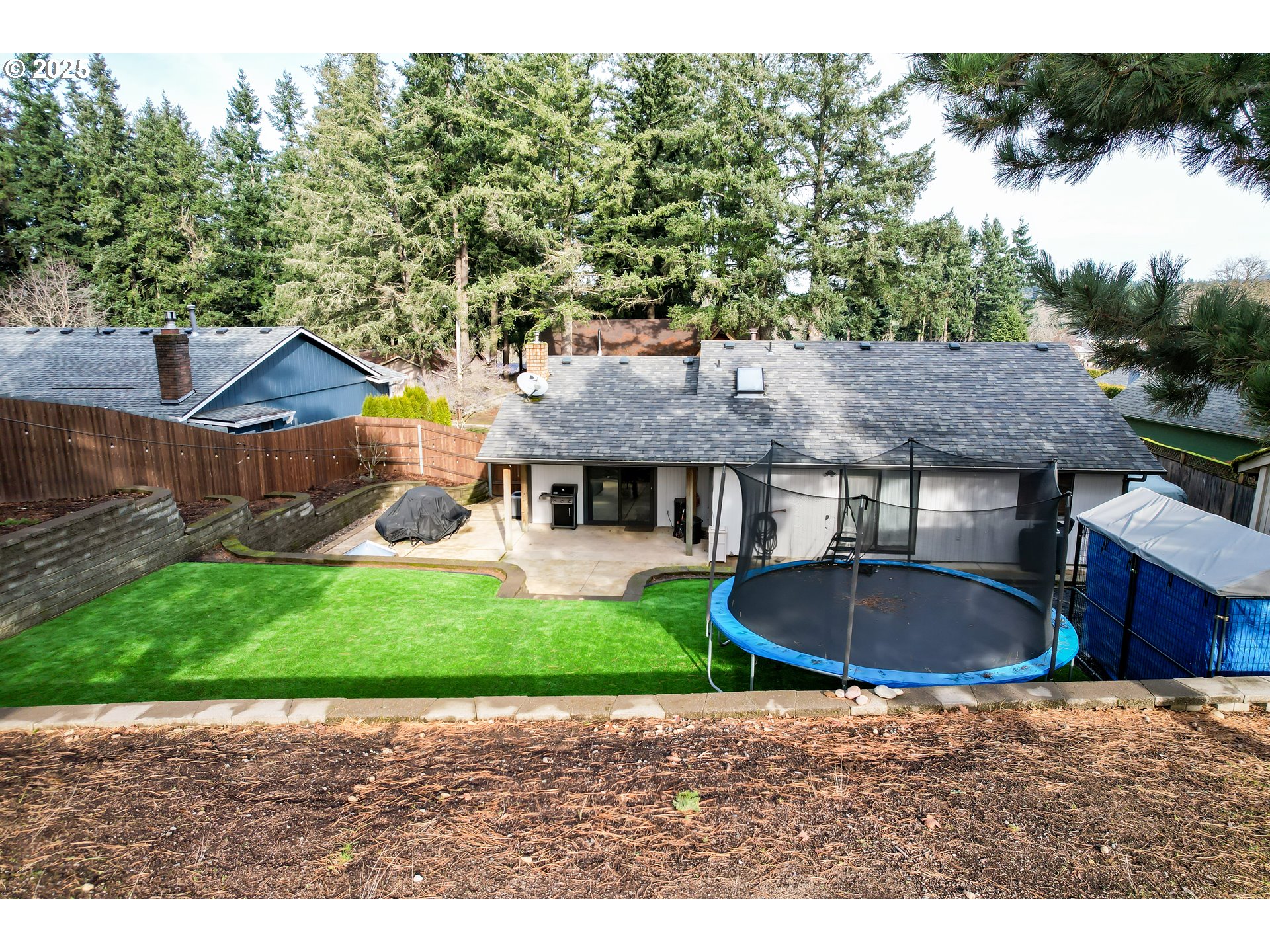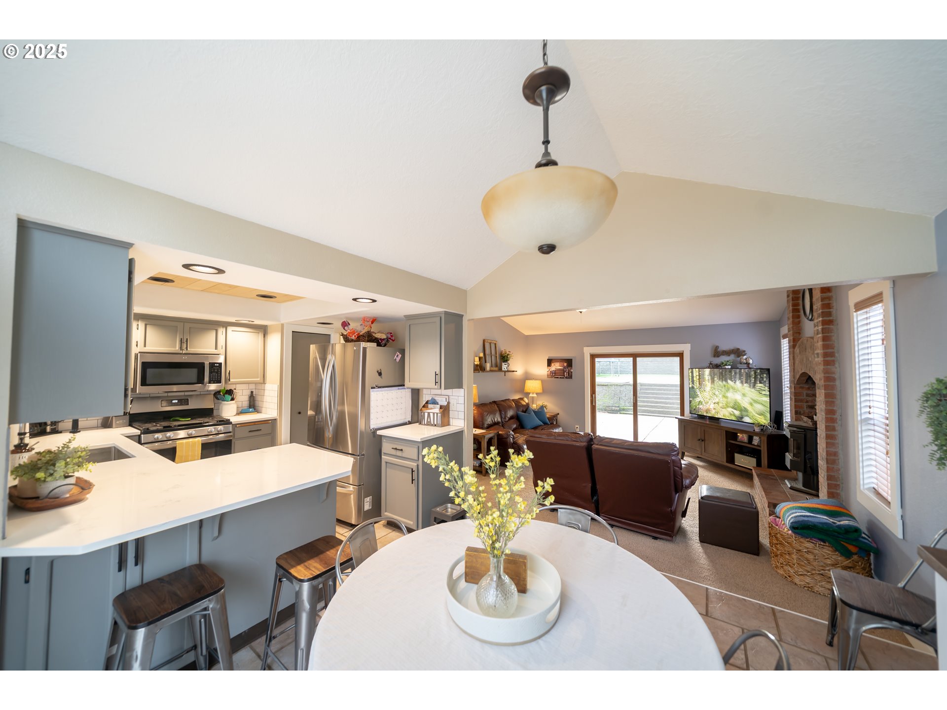 Beautiful 3 BD, 2 BA home with 1,369 sq ft & an entertainer’s dream backyard! Feats include an updated kitchen w/gas range, vaulted ceilings, cozy pellet stove, & A/C. The outdoor living space truly shines with a covered patio, built-in gas firepit, expansive concrete entertaining area, and fully terraced yard with low-maintenance artificial grass. The property backs up to Christmas tree farmland, offering privacy and amazing views. A perfect blend of comfort, style, and lifestyle — this home is a must-see!