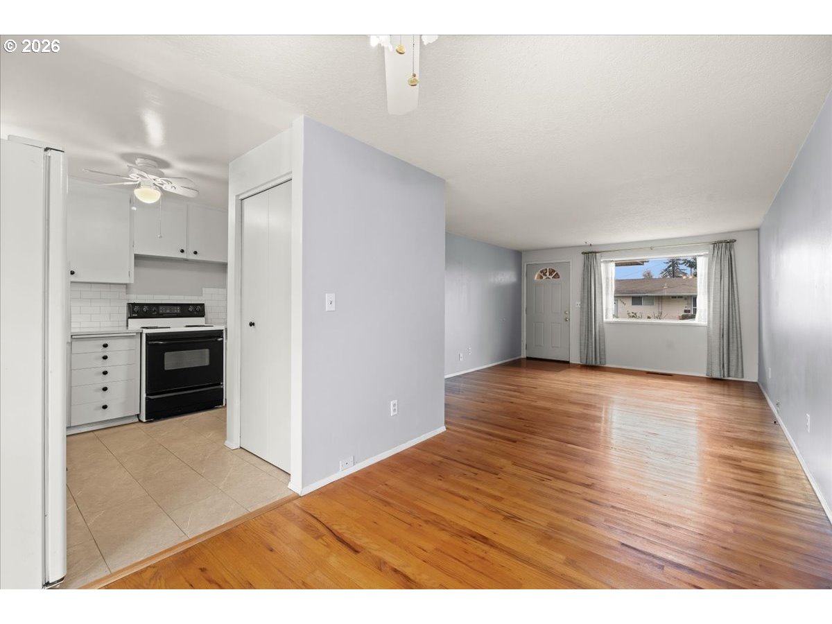 Open House Saturday 1:00-3:00pm! Desirable single-level home in a vibrant 55+ golf course community. A charming, easy-care front yard with colorful blooms and a sweet covered porch creates a warm first impression. Inside, the bright living room shines with gleaming hardwood floors and a large picture window that fills the space with natural light. The cheerful dining room features a nice ceiling fan and a sliding glass door that opens to a spacious covered patio—an ideal spot for hosting gatherings with loved ones. The tastefully updated kitchen offers white cabinetry, a pantry, newer quartz countertops, a tile backsplash, a new sink, and luxury vinyl flooring. Both bedrooms are generously sized with hardwood floors and ample closet space, complemented by a convenient hallway linen closet. The full bath includes new flooring, a deep tub/shower combo with handheld sprayer, and a well-appointed vanity with a mirrored medicine cabinet for extra storage. The one-car garage is a standout with built-in storage cabinets, and the washer, dryer, and refrigerator all stay. The low-maintenance backyard includes a tool shed, newer fencing, and an impressive collection of blueberry and raspberry bushes, strawberries, and Asian pear trees. The low $93/month HOA provides exceptional amenities including a golf course, pool and fitness center, onsite restaurant, clubs and activities, golf lounge and pro shop, and a fenced dog park.A wonderful home in a community that truly has it all. A must-see!