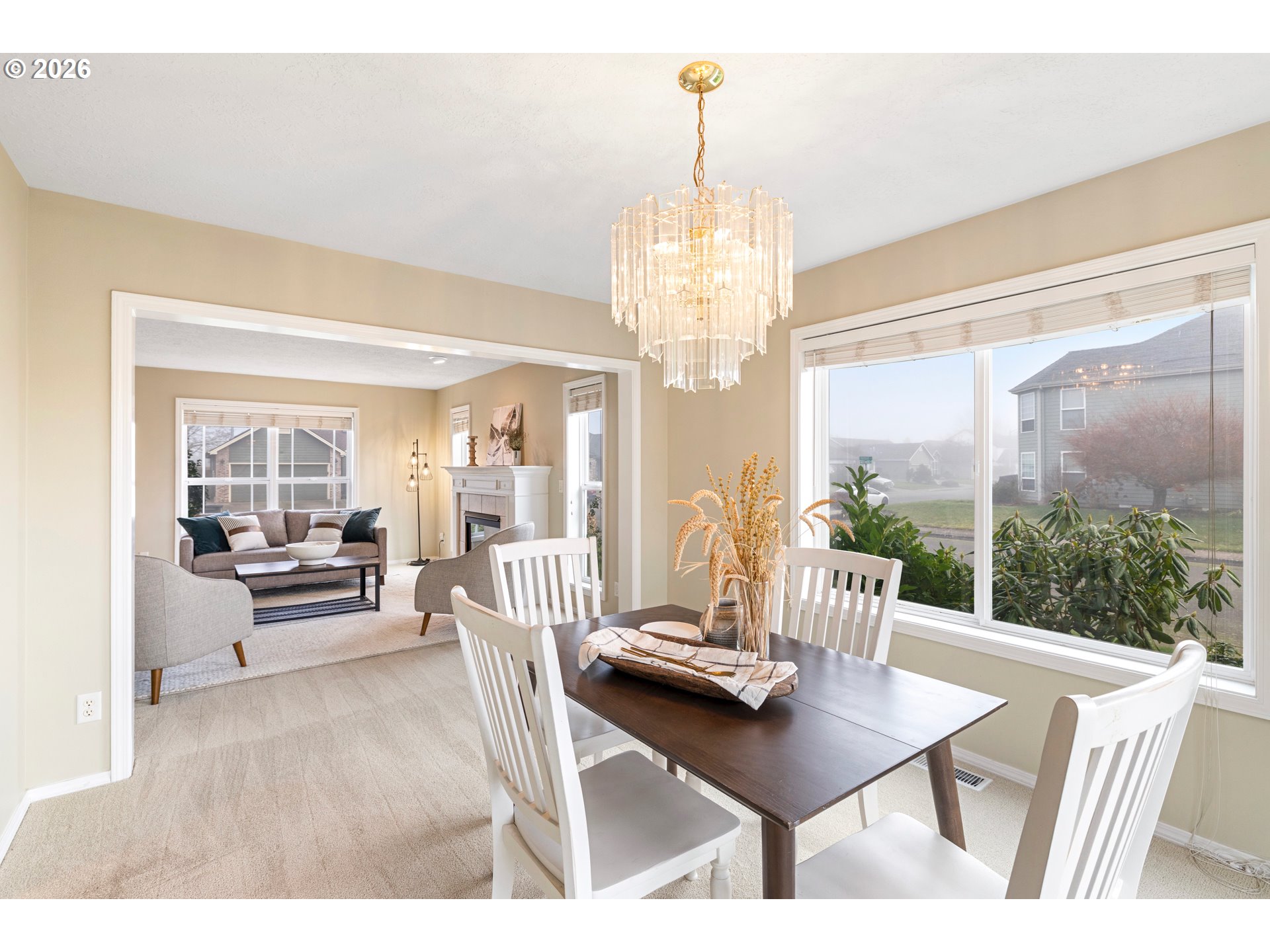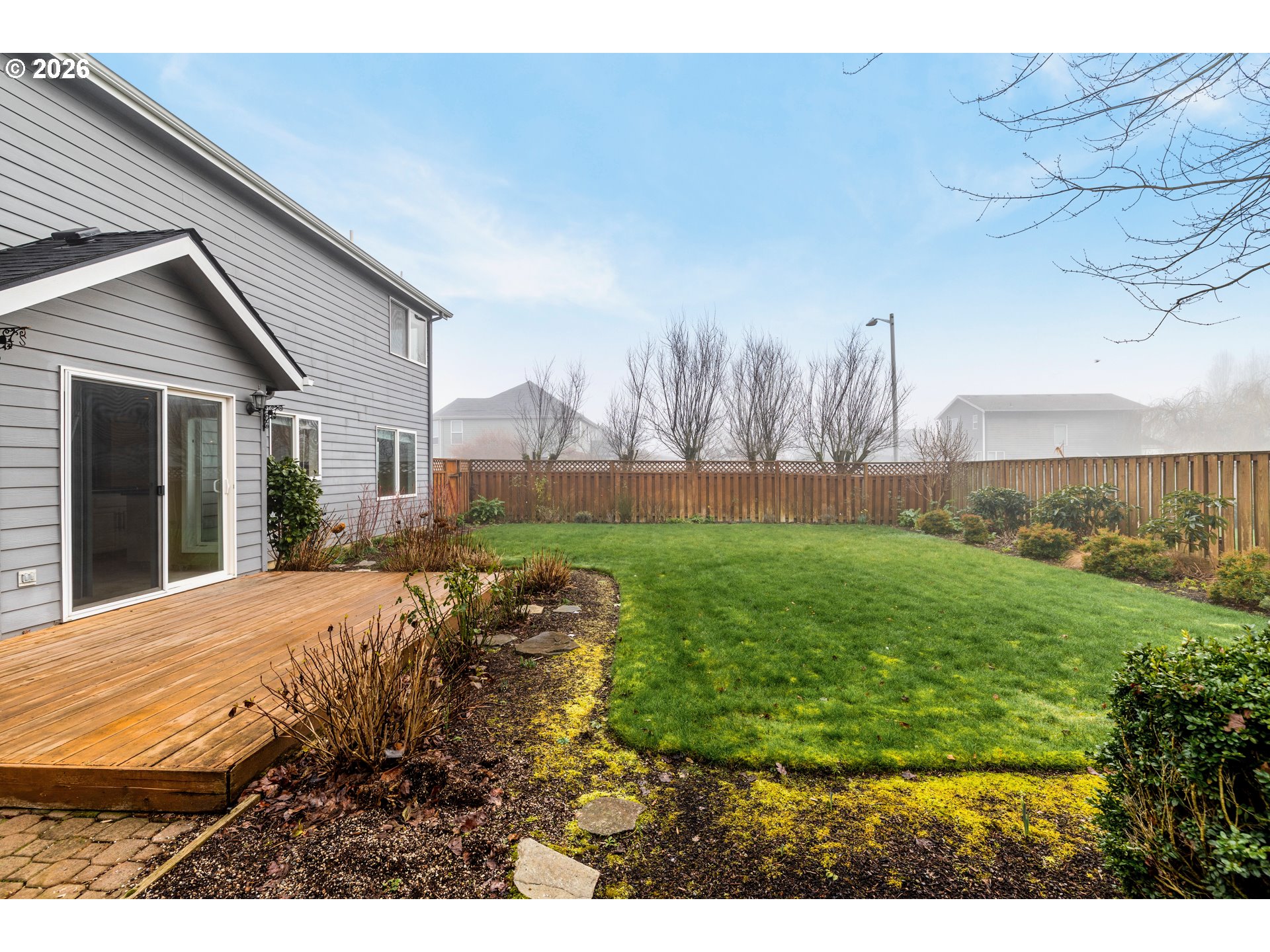 This beautiful Woodburn traditional enjoys a timeless design in a quiet neighborhood that sits on a hard to find large corner lot. Built in 2000, the home features 4 bedrooms, 2.5 bathrooms, and a functional layout ideal for both everyday living and entertaining. Rest easy with a newer composition roof, new cooktop and freshly painted interior. The high ceiling foyer leads into a spacious formal living and dining room. The kitchen offers granite countertops, custom cabinetry, a pantry, a spacious island and a cozy dining nook. The expansive family room enjoys walls of windows that allow for an abundance of natural light and views of the peaceful backyard. The main level also comes with a powder bathroom and laundry room. The upper level primary ensuite enjoys high ceilings, a large walk-in closet, and bathroom featuring a double sink vanity, custom walk-in shower, and relaxing soaking tub. Three additional spare bedrooms provide plenty of space for family, guests, a gym, or home office. The fully fenced backyard includes a fun play house, flat functional grass, privacy and a trailer or boat parking. Just minutes from community parks, Woodburn outlets, restaurants, golf and major highways. A wonderful blend of comfort, convenience, natural beauty and so much more!